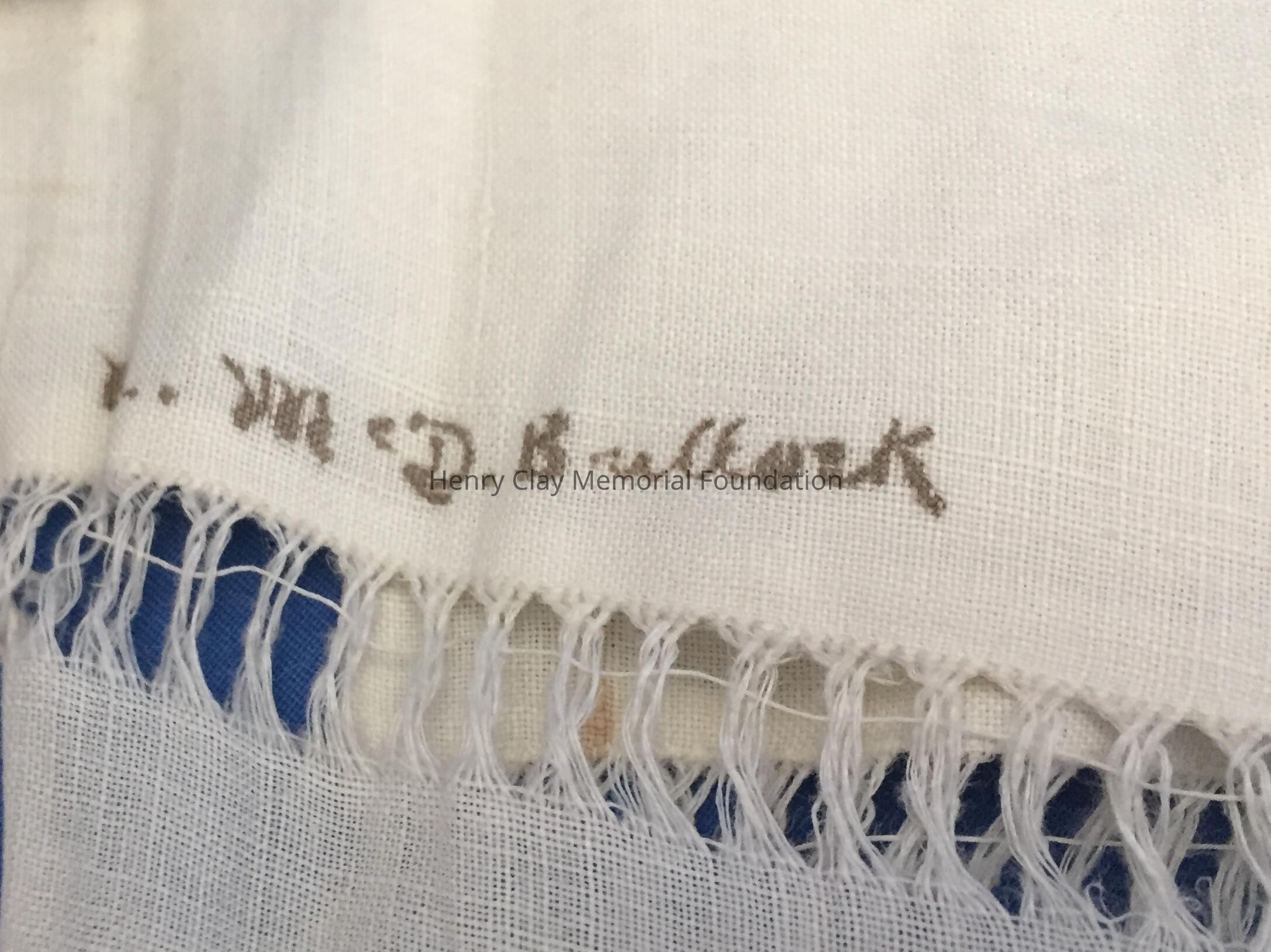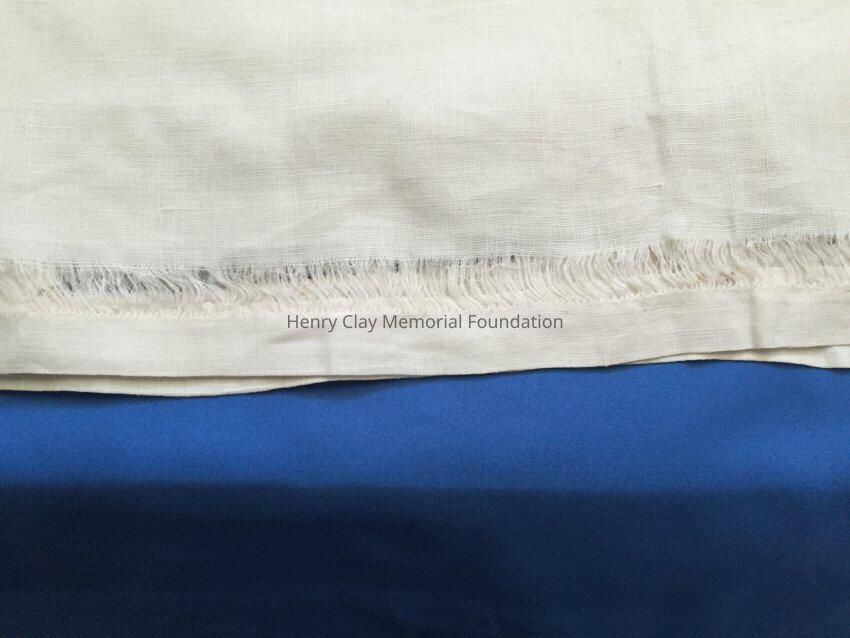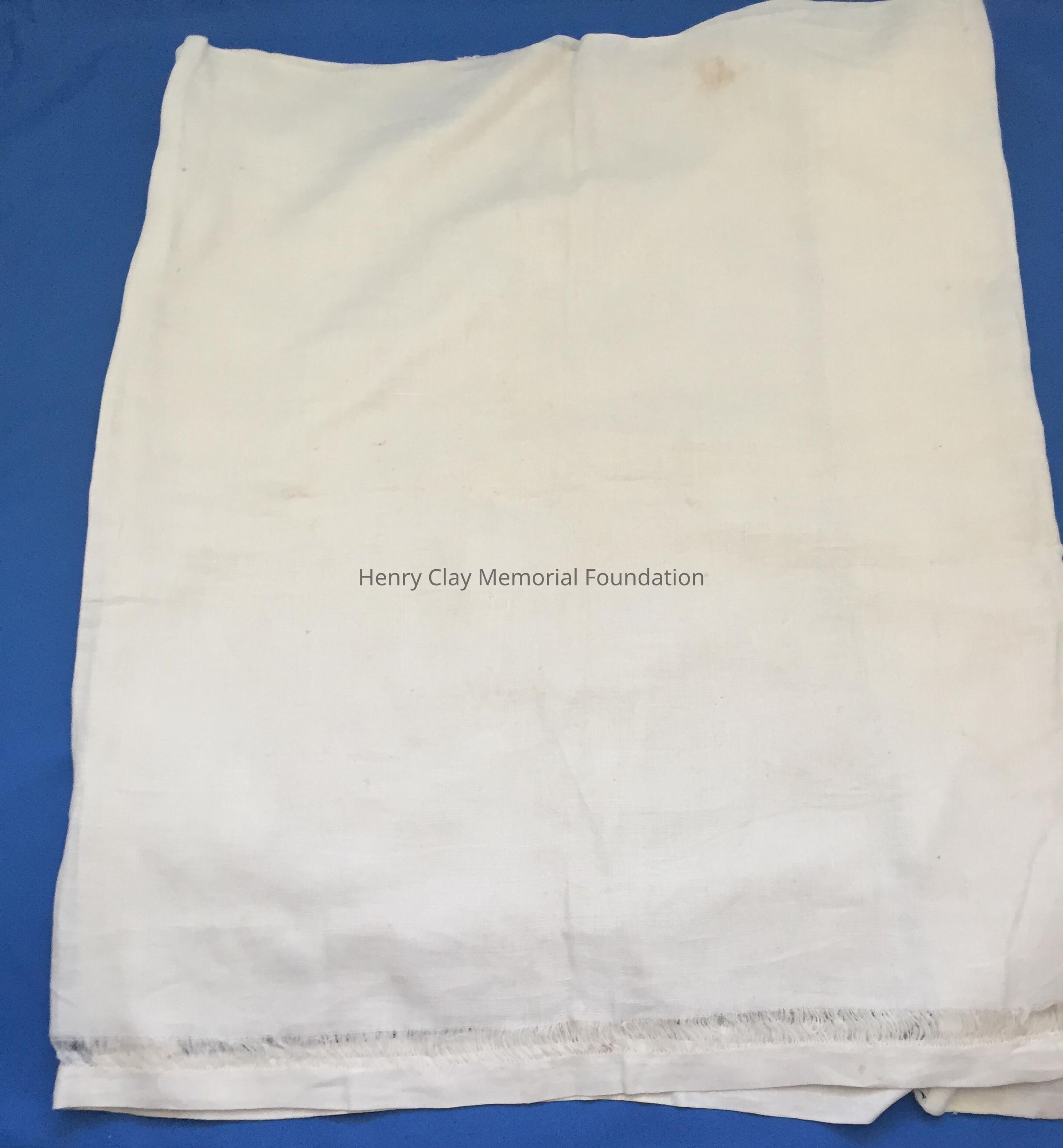 Off-white rectangular runner with large faggoting stitching around three sides. There is an unfinished band around the sides. This piece is signed in ink on one edge: "N. McD Bullock."Dimensions