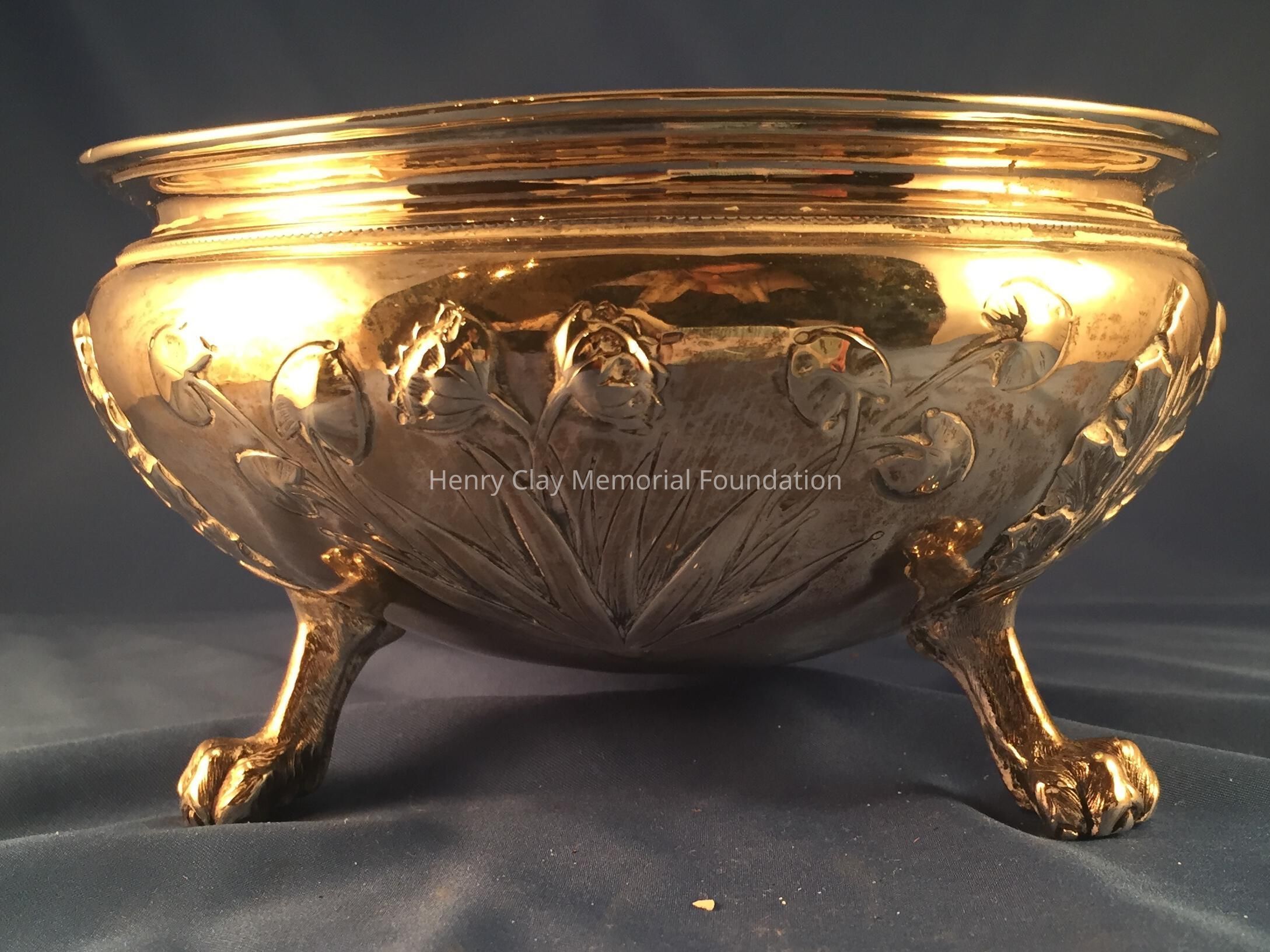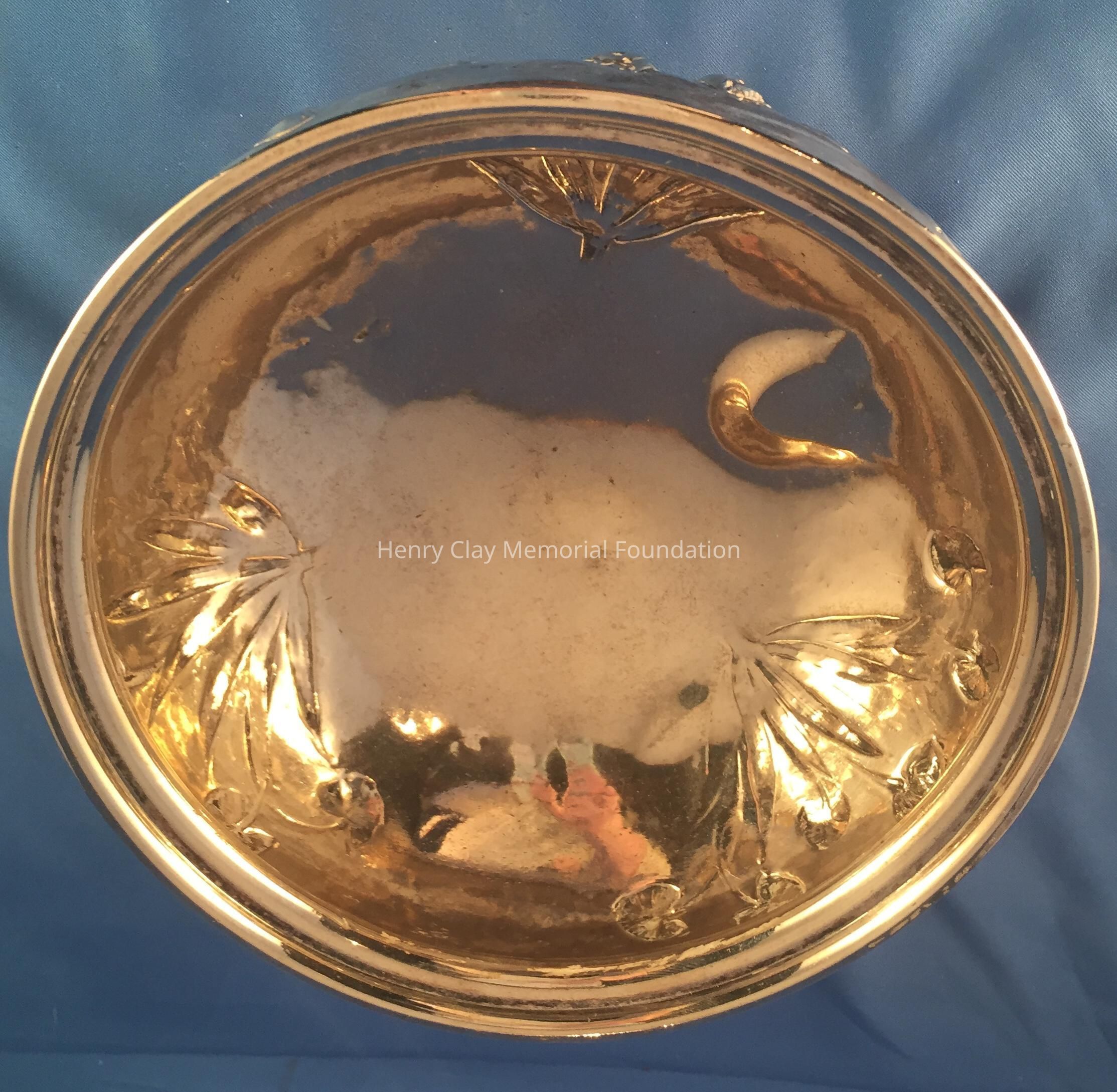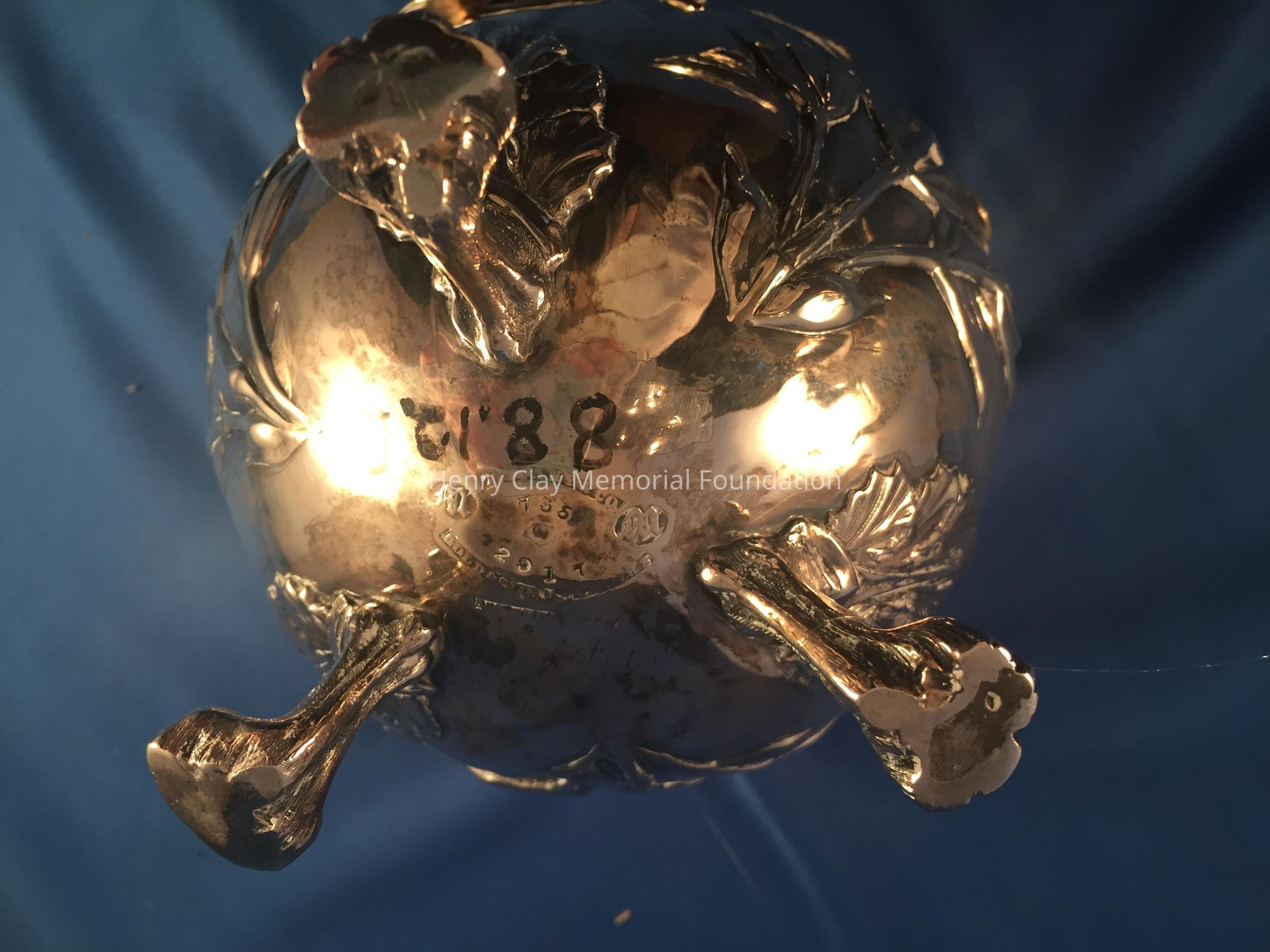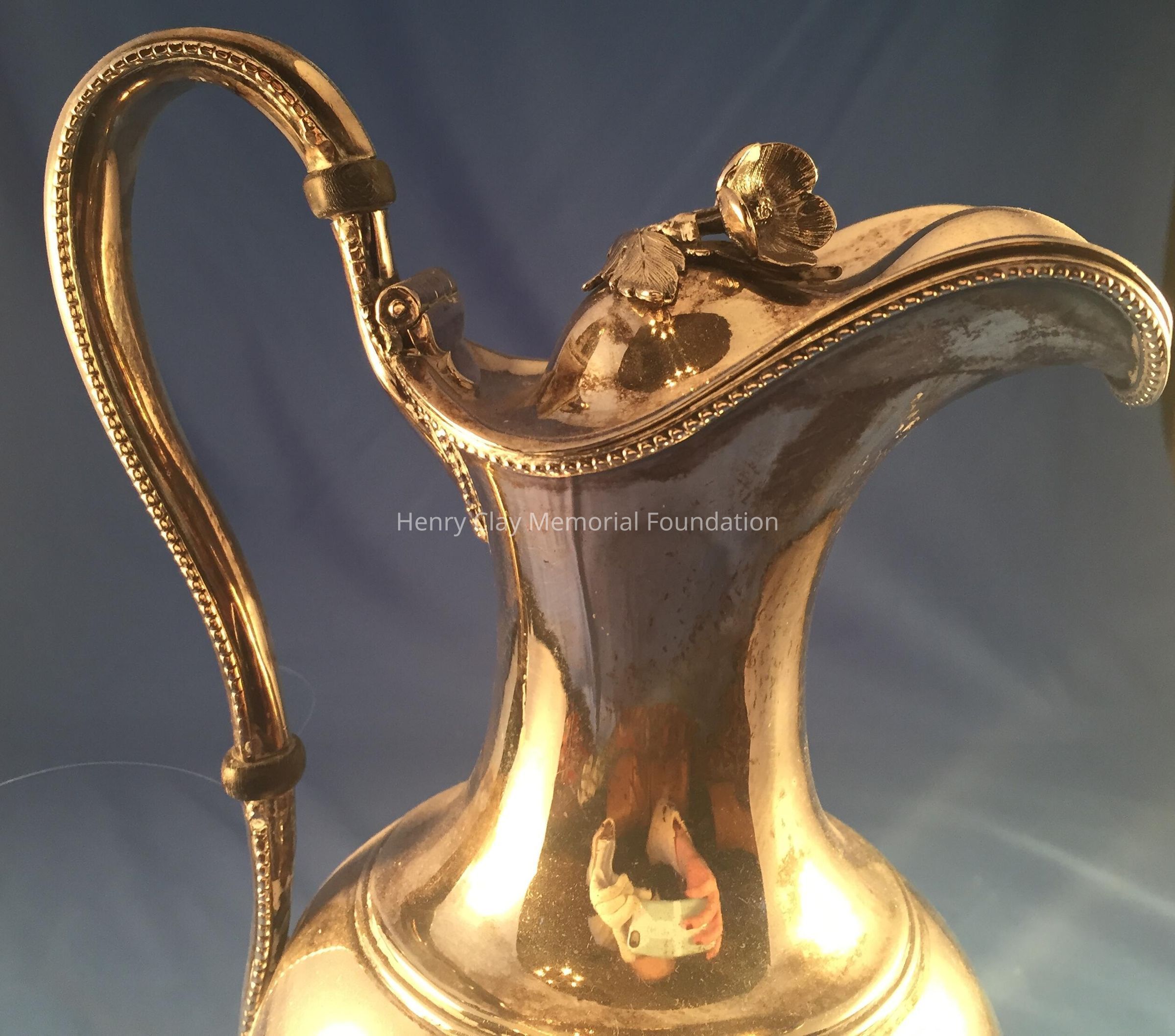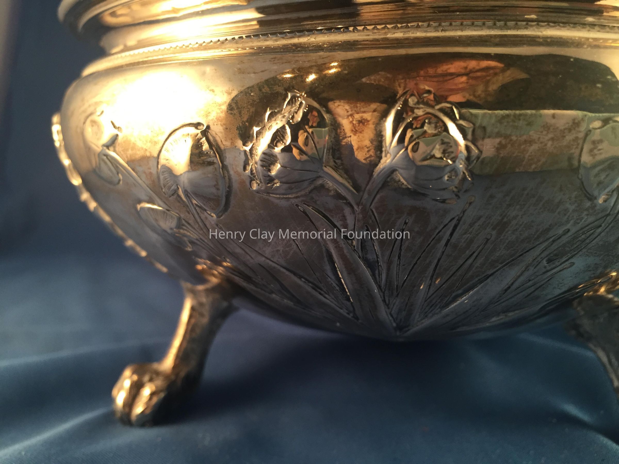 Silver tea service consists of a tray with an engraving of Henry Clay after Dodge's portrait and six matched pieces with applied decoration depicting sugar cane, coffee beans, and tea leaves. Includes a tray, teapot, hot water pot, coffee pot, sugar with lid, creamer, and a waste bowl.