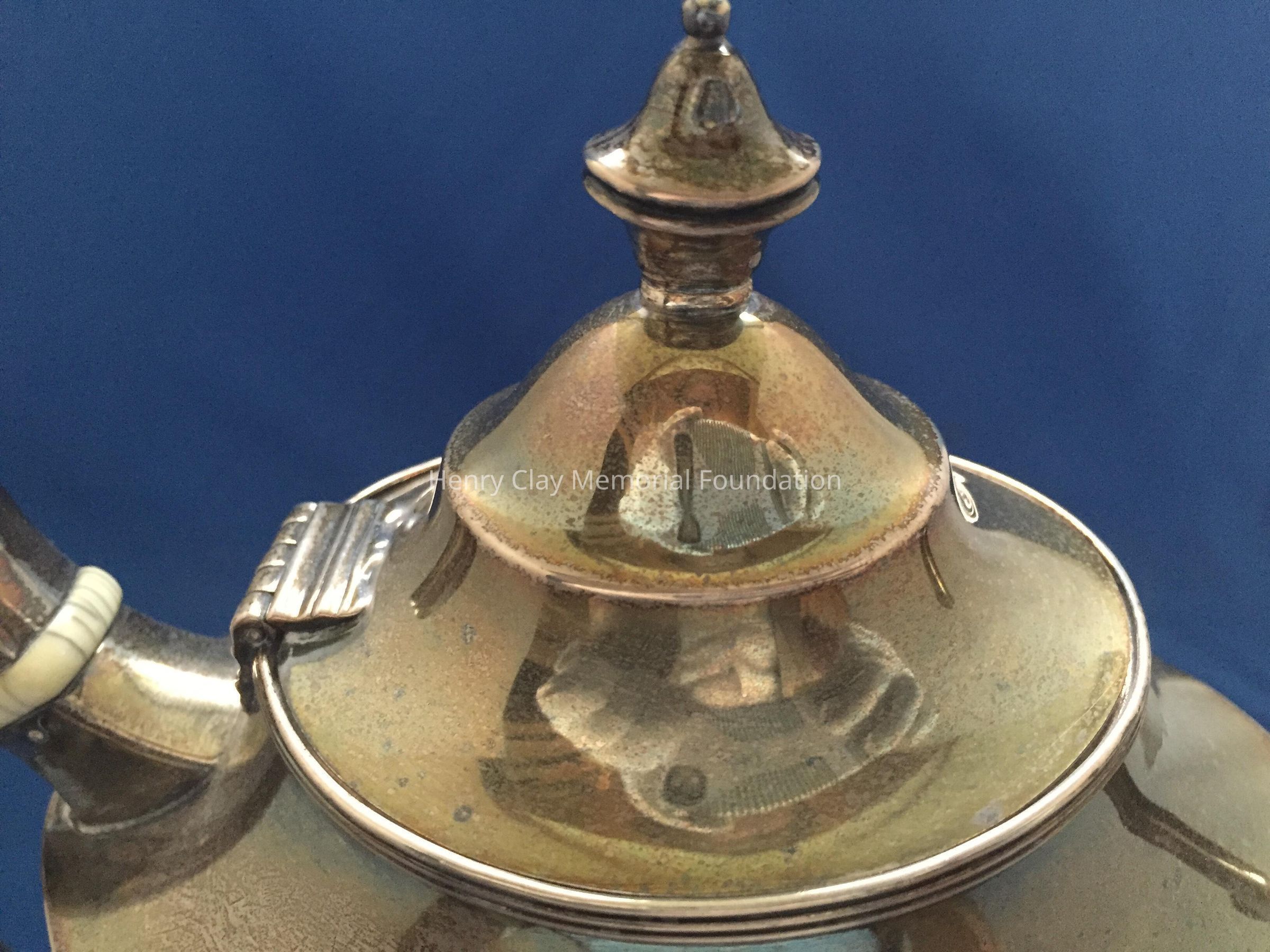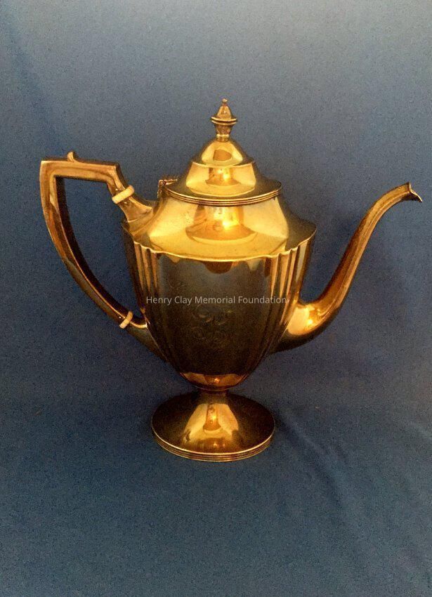 Sterling Silver coffee service; d-e engraved "B," marked Loring, Andrews, & Co. Tray engraved "To Major & Mrs. Robert S. Bullock from directors & clerks of Fayette National Bank, 1858 to July 15th, 1908."