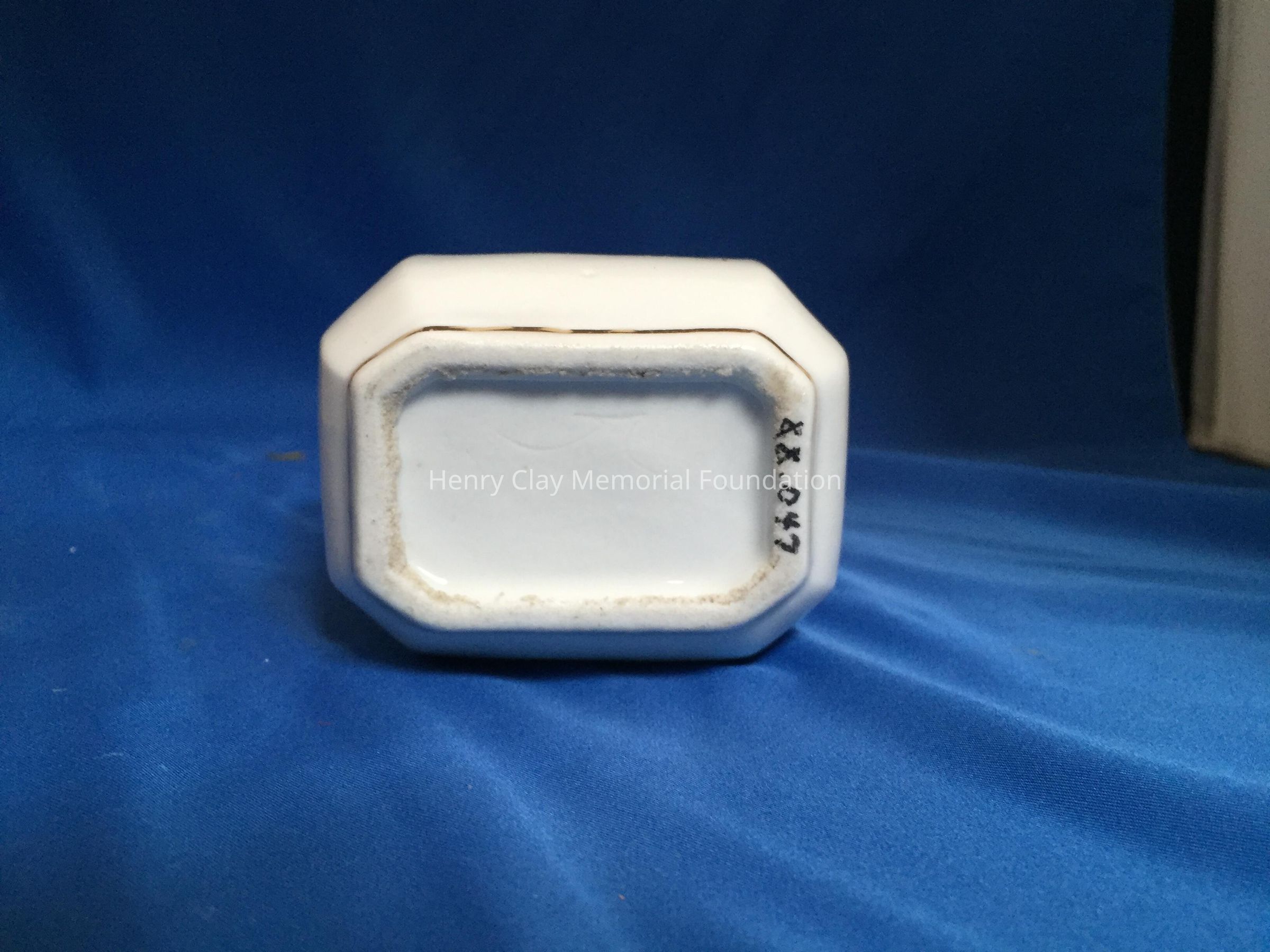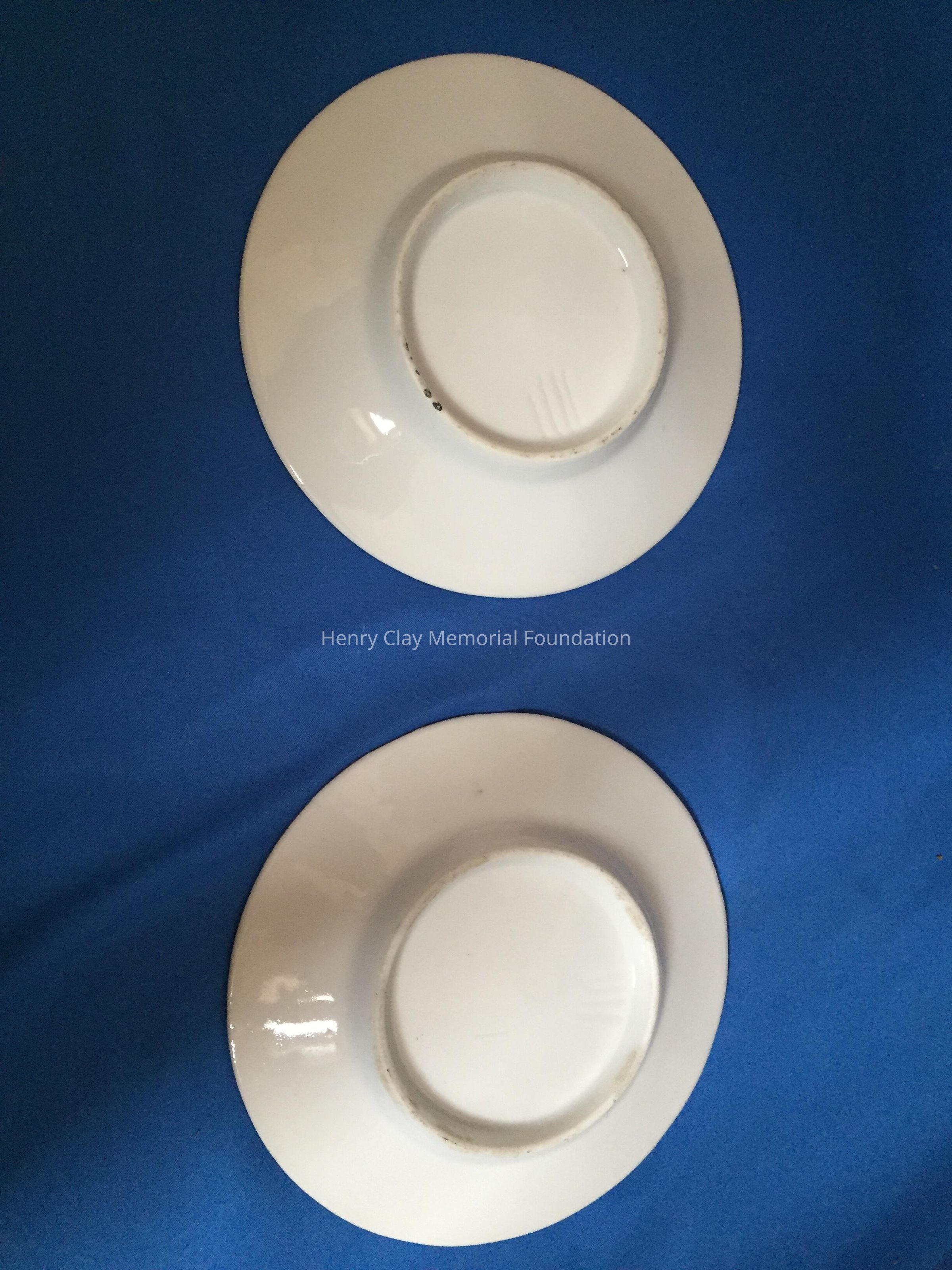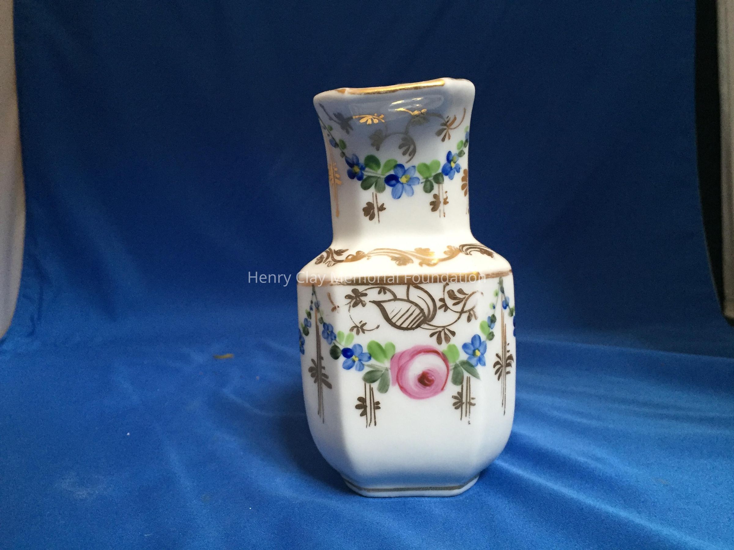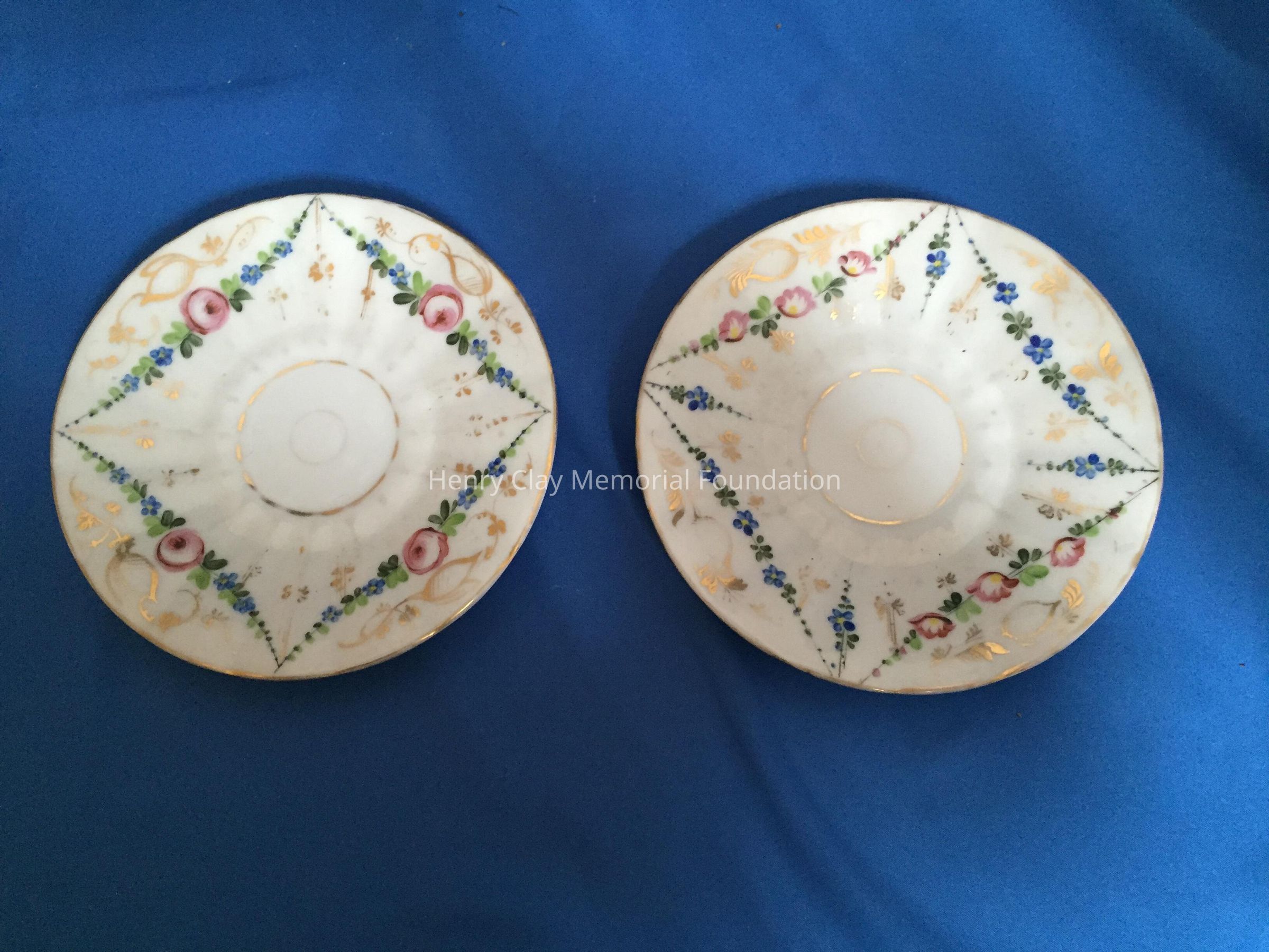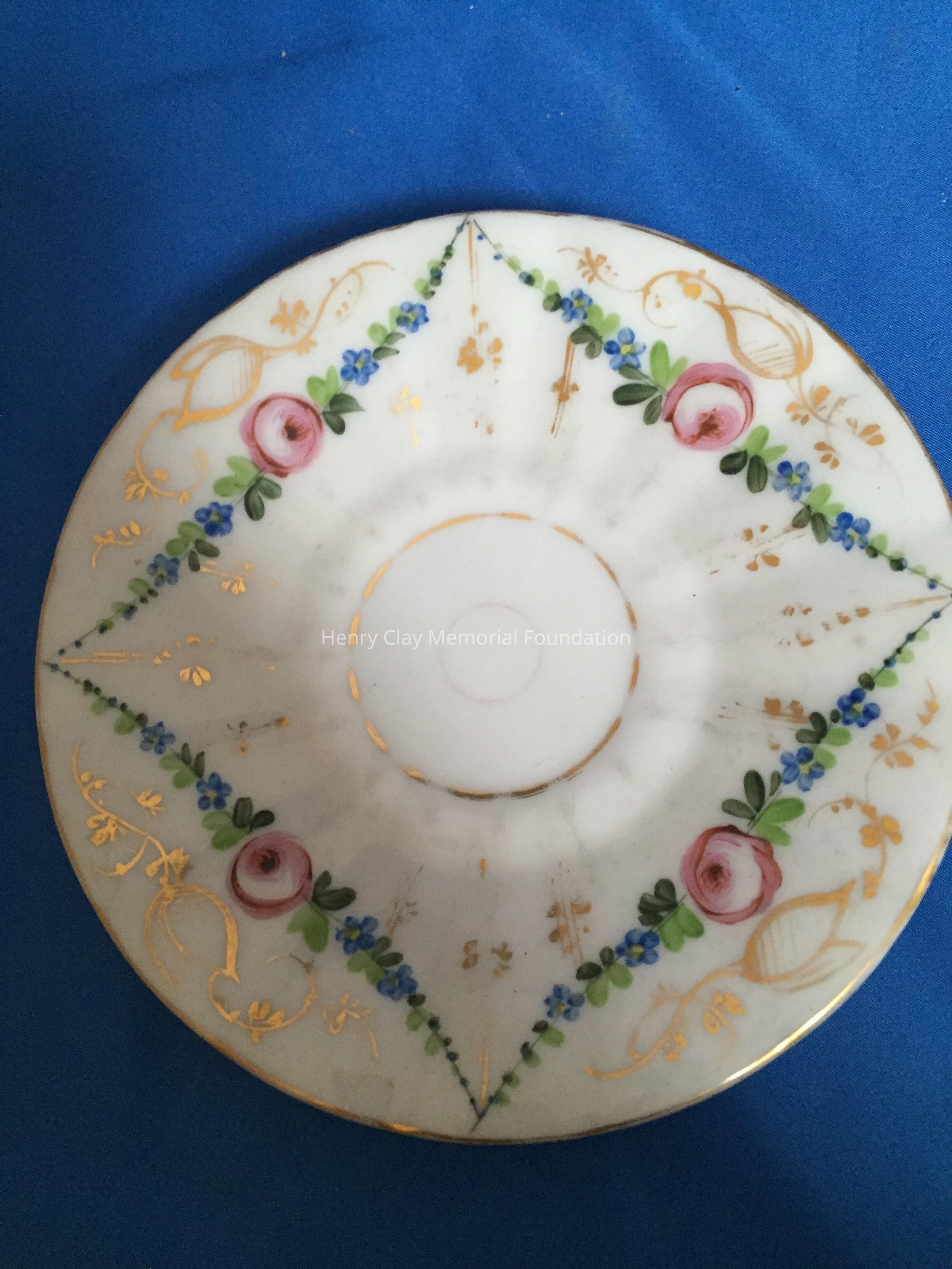 Bone china, handpainted, English (tray, teapot, creamer, sugar, 2 cups, 2 saucers) multi-colored with gold leaf. See back of catalog sheet for various china marks.