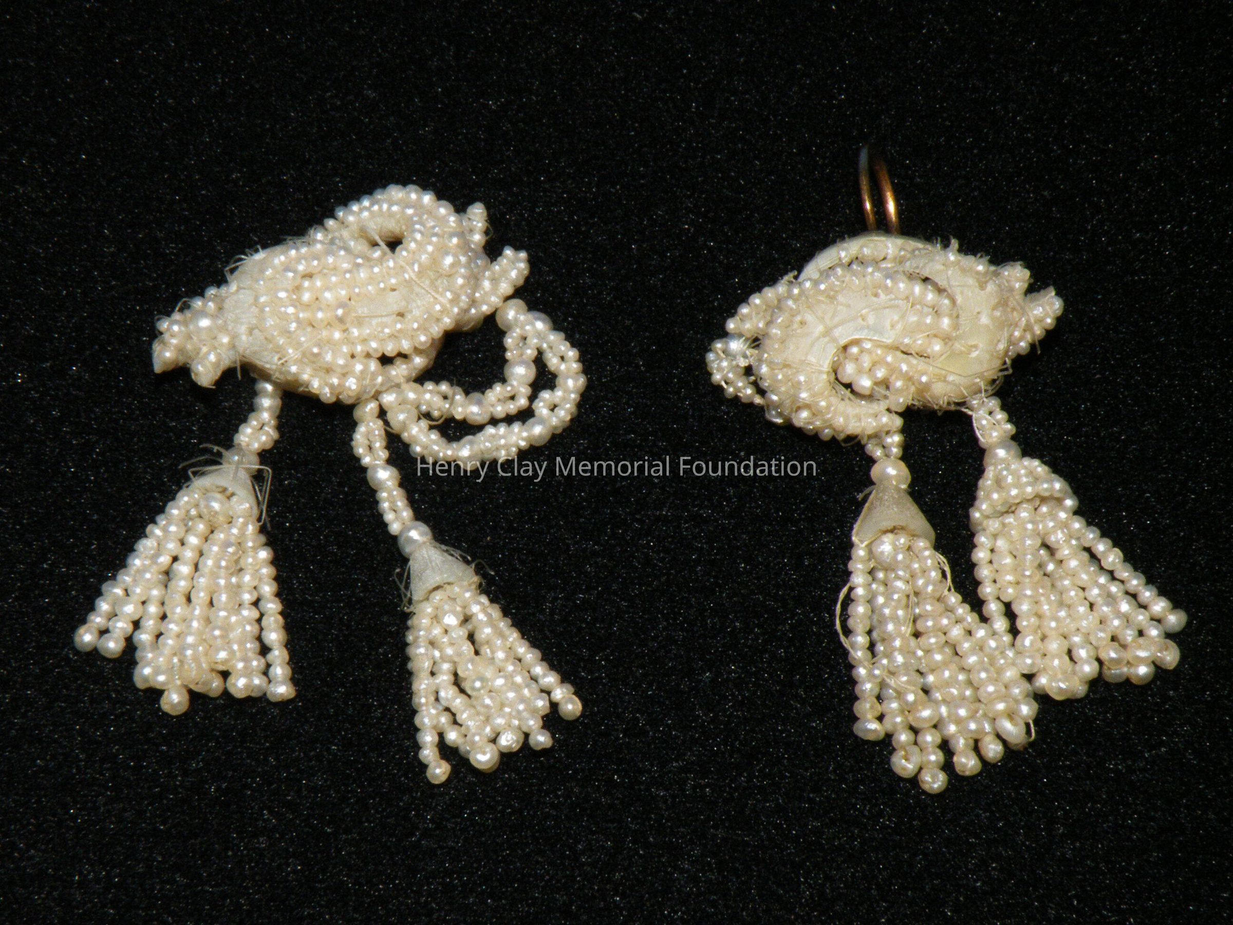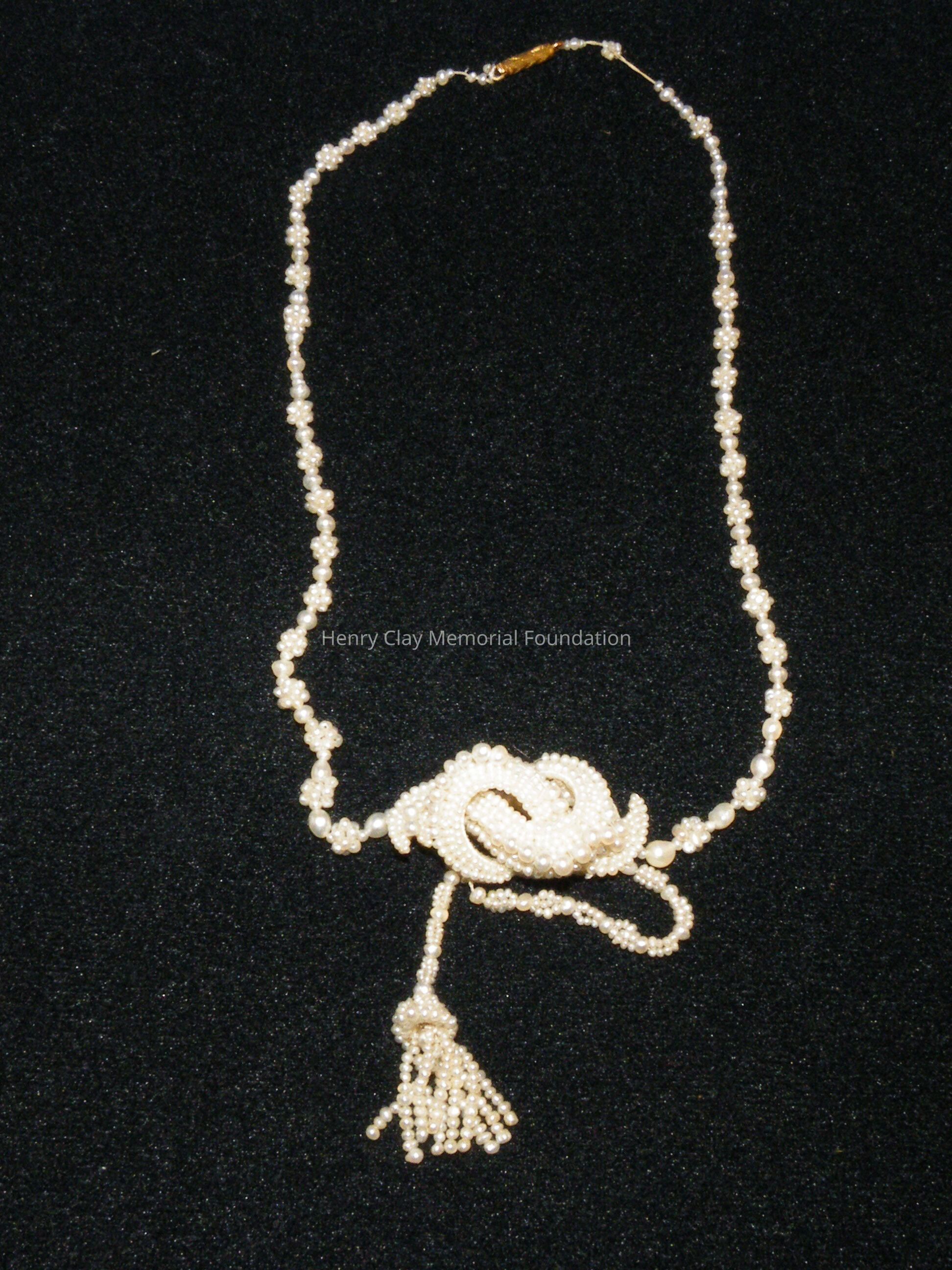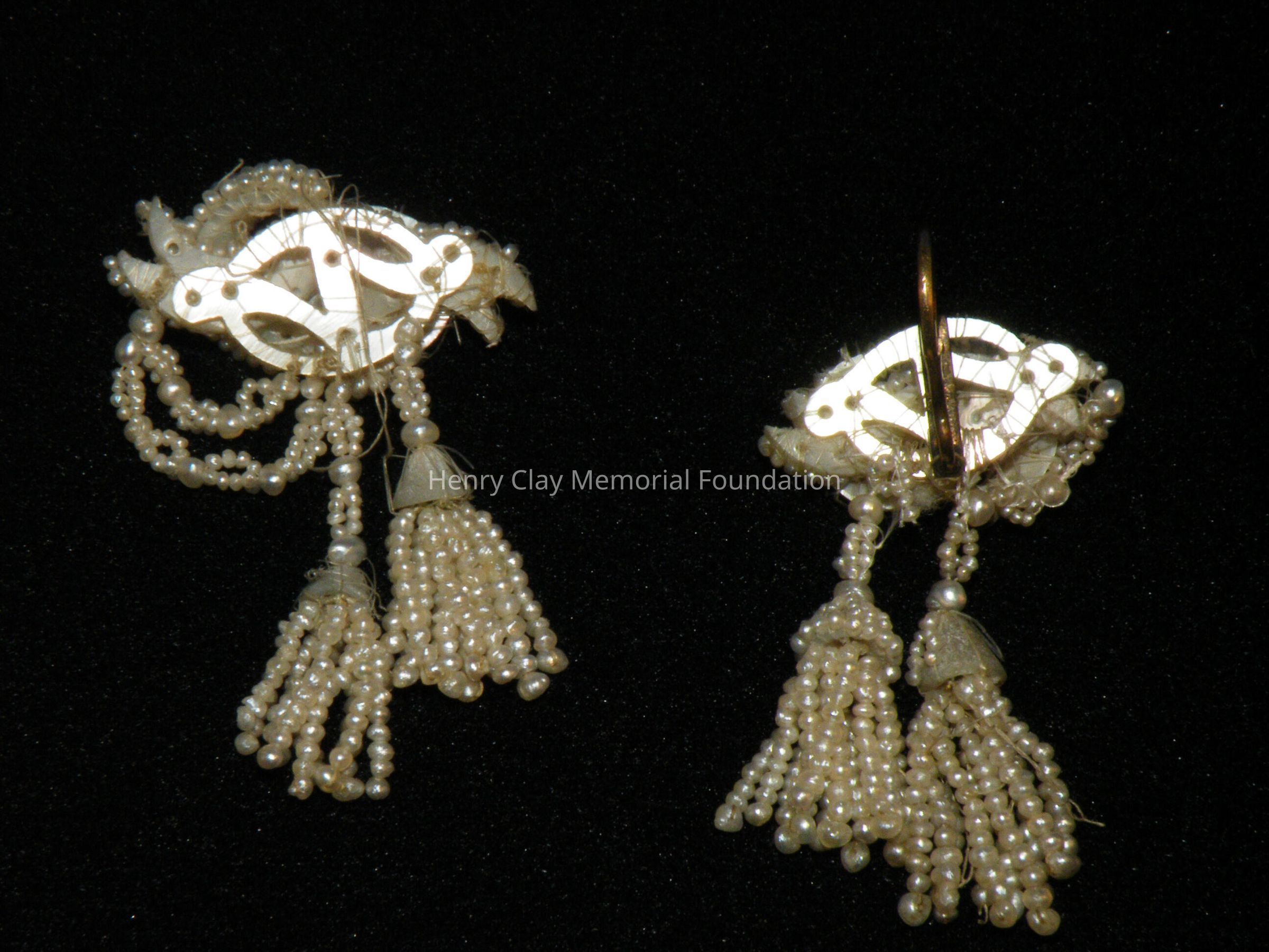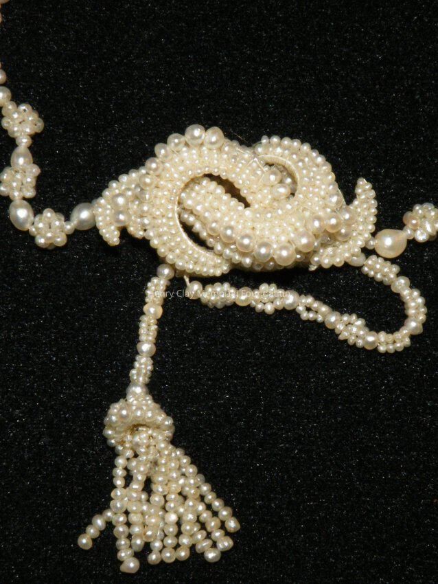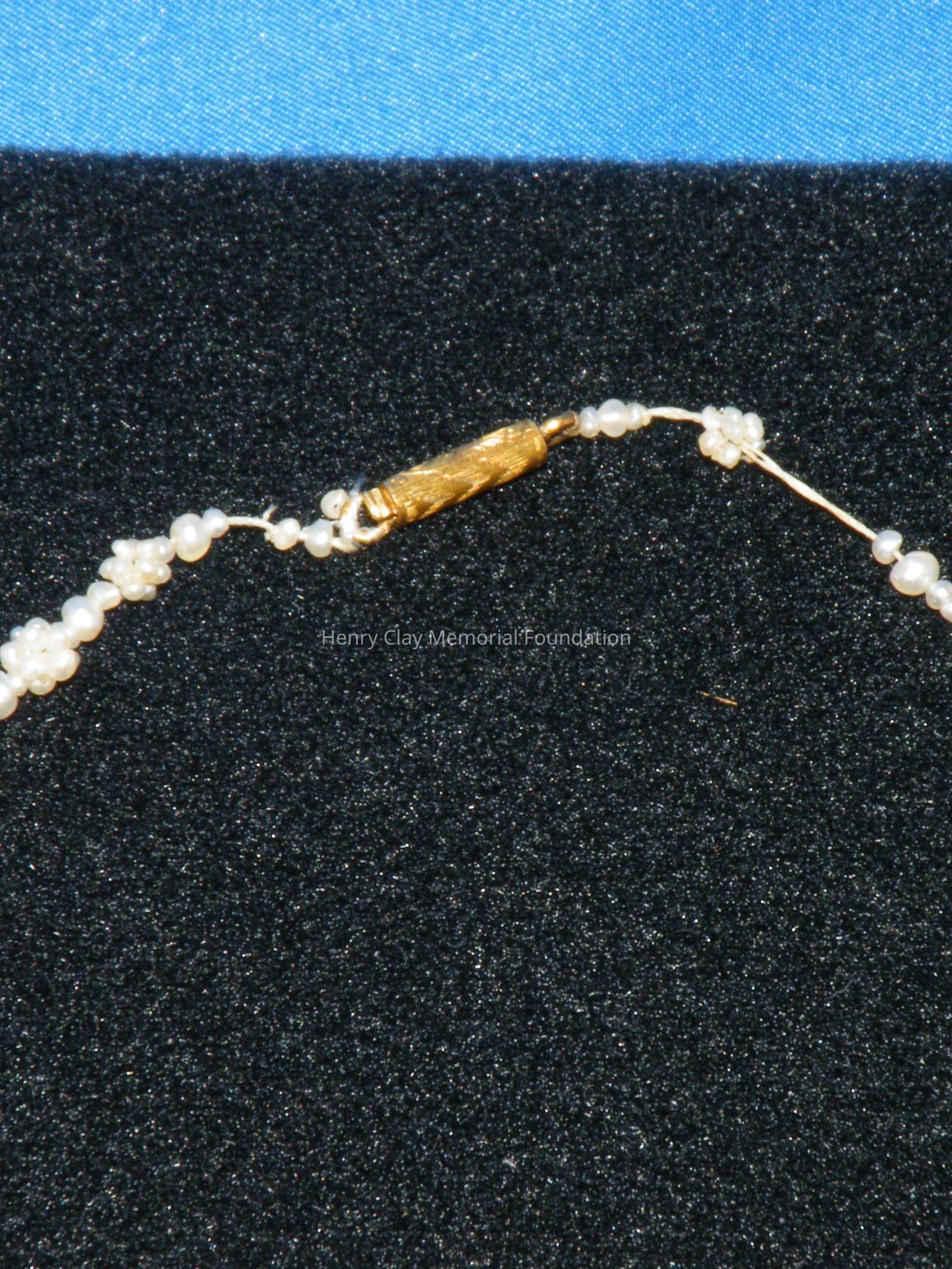 Persian seed pearl jewelry set including a large brooch, small pendant, 2 earrings (one clasp missing), a necklace, and a tiara. The tiara is fashioned with a 14k gold border on an 18k yellow gold background mounted on scalloped-edge sterling silver base. Other pieces are strings of pearls in clusters with tassels of pearls. Contained in Walnut glass case donated by Dr. ScrivnerDimensions