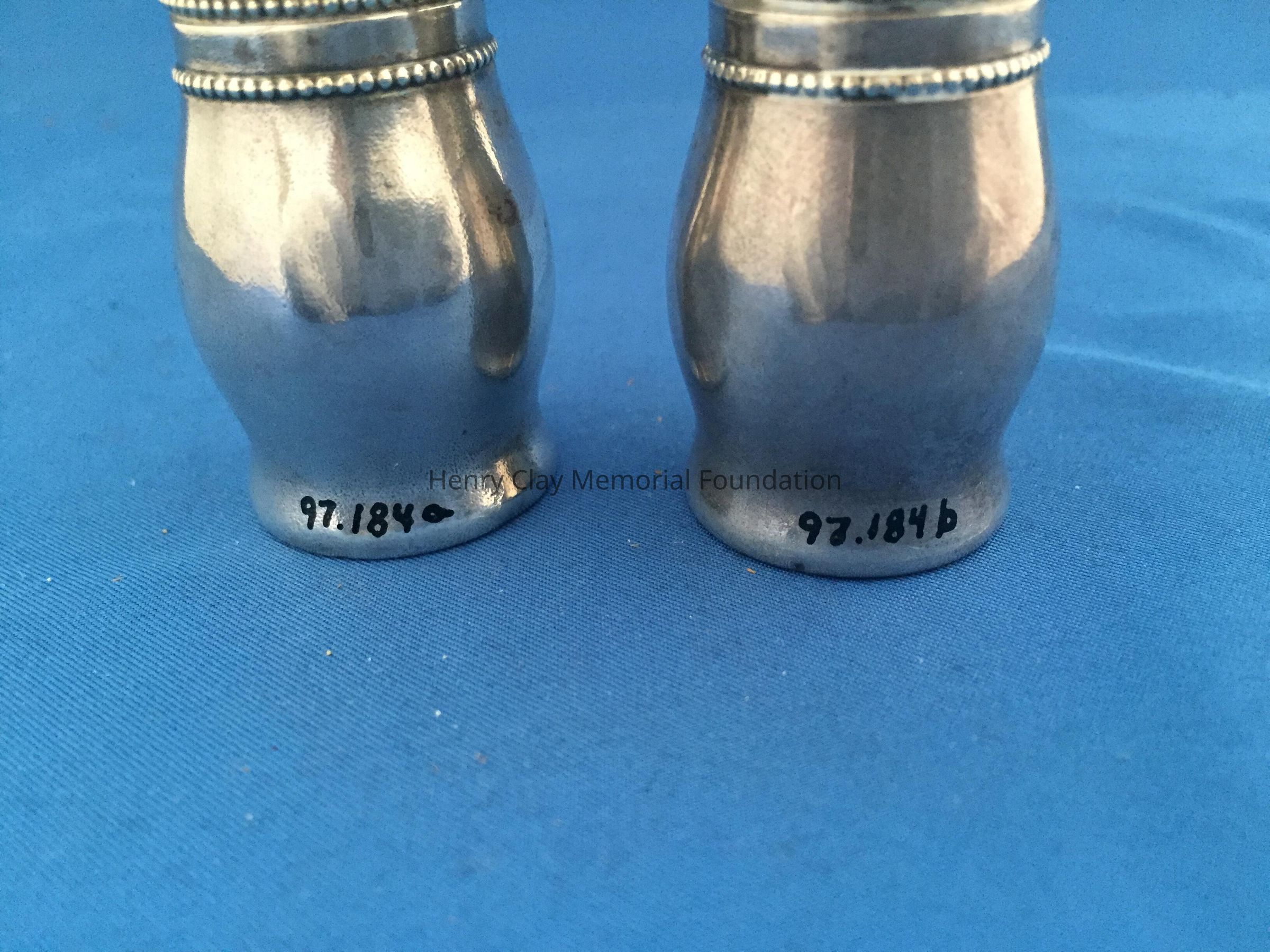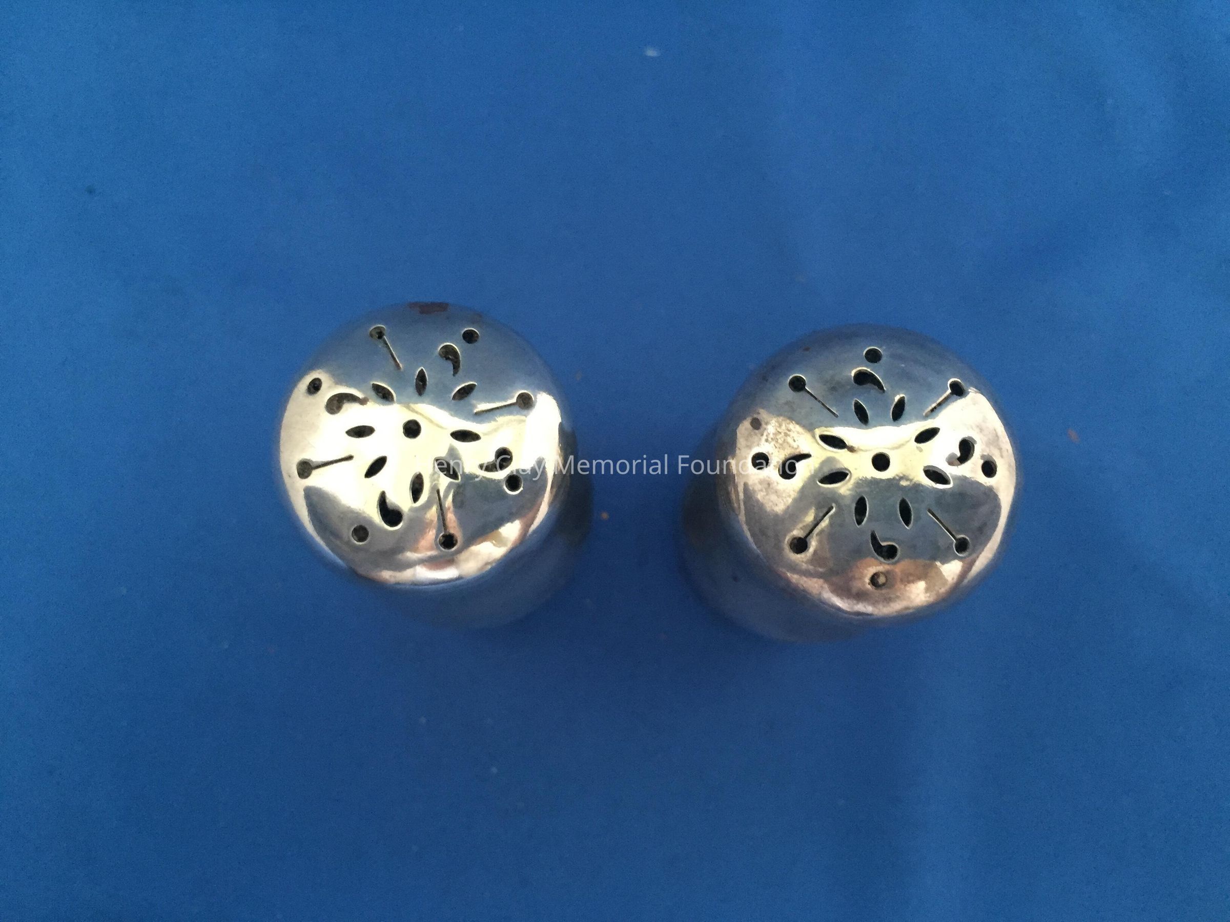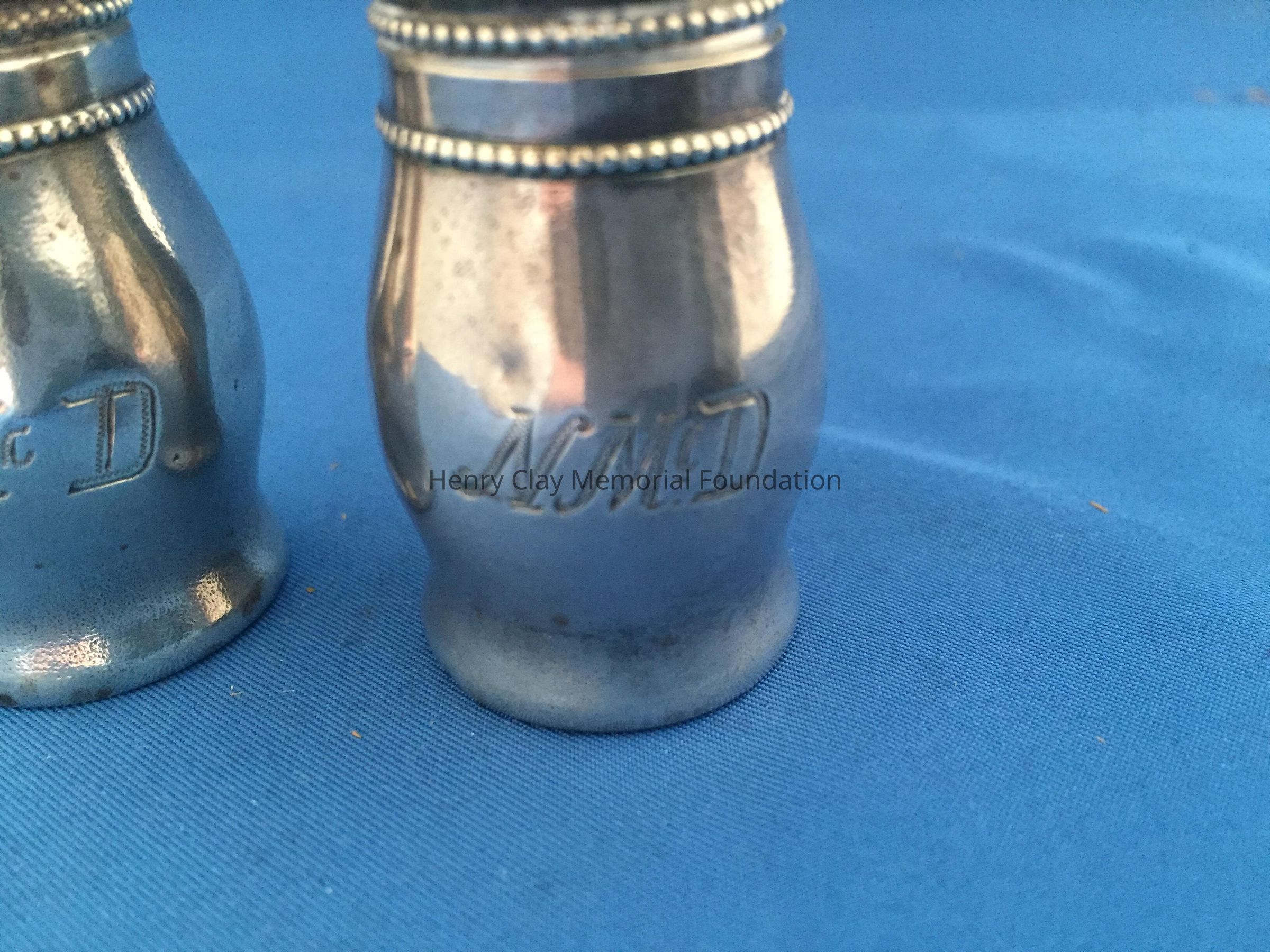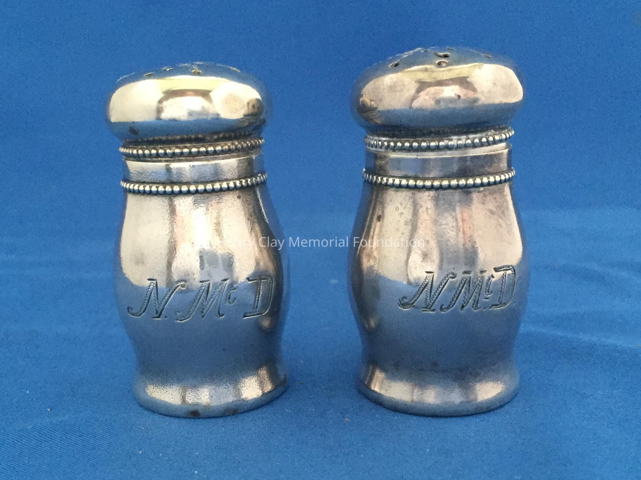 Two sterling silver pepper shakers, monogrammed "NMcD."