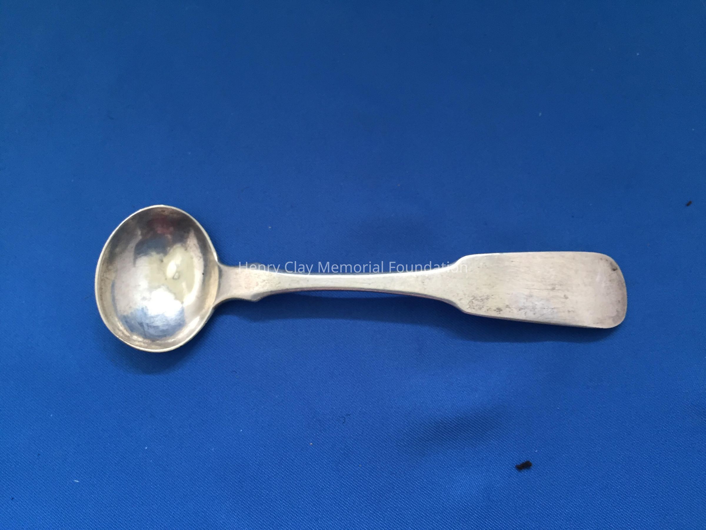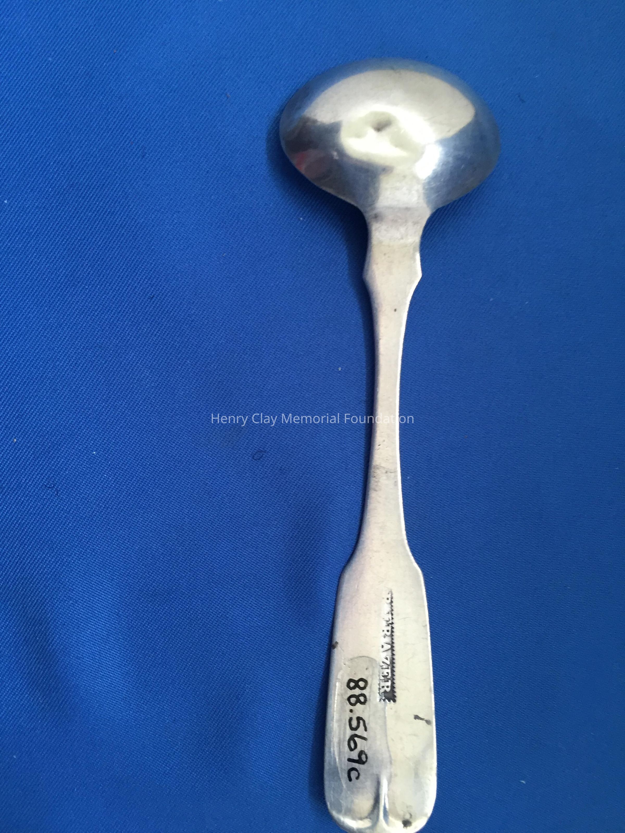 Four master salt spoons and small plain silver with wide bowls. Each has "R. Frazer" on back.