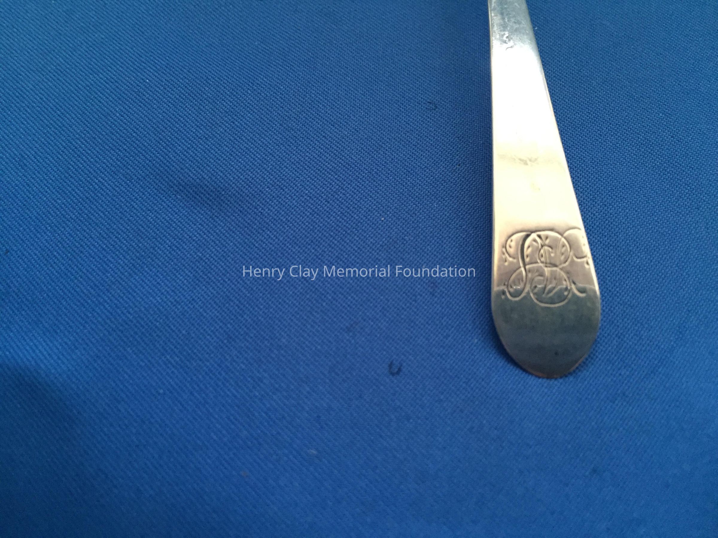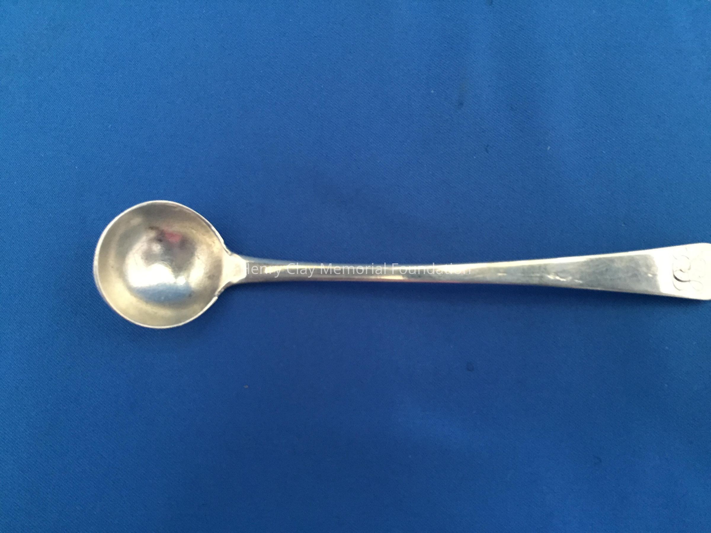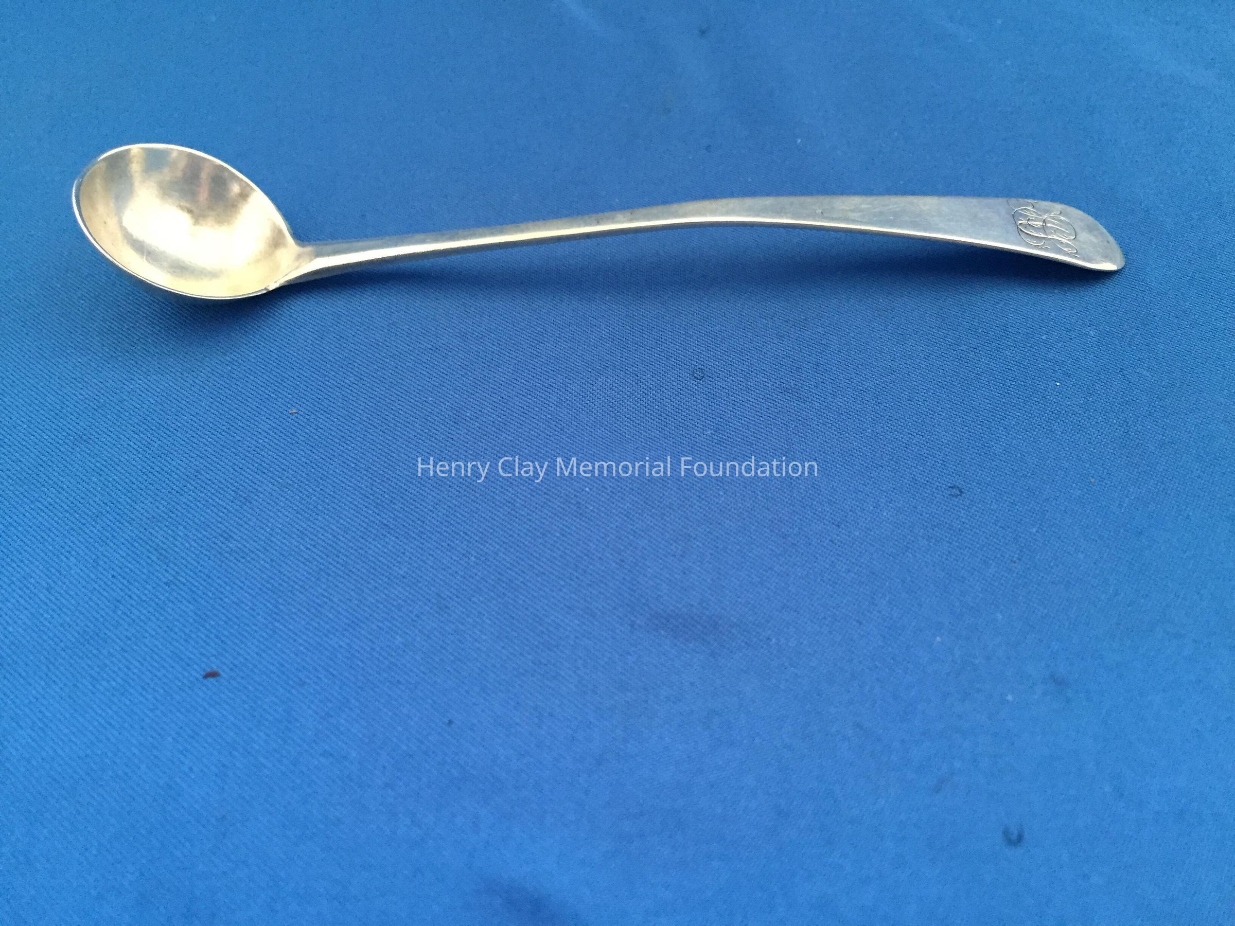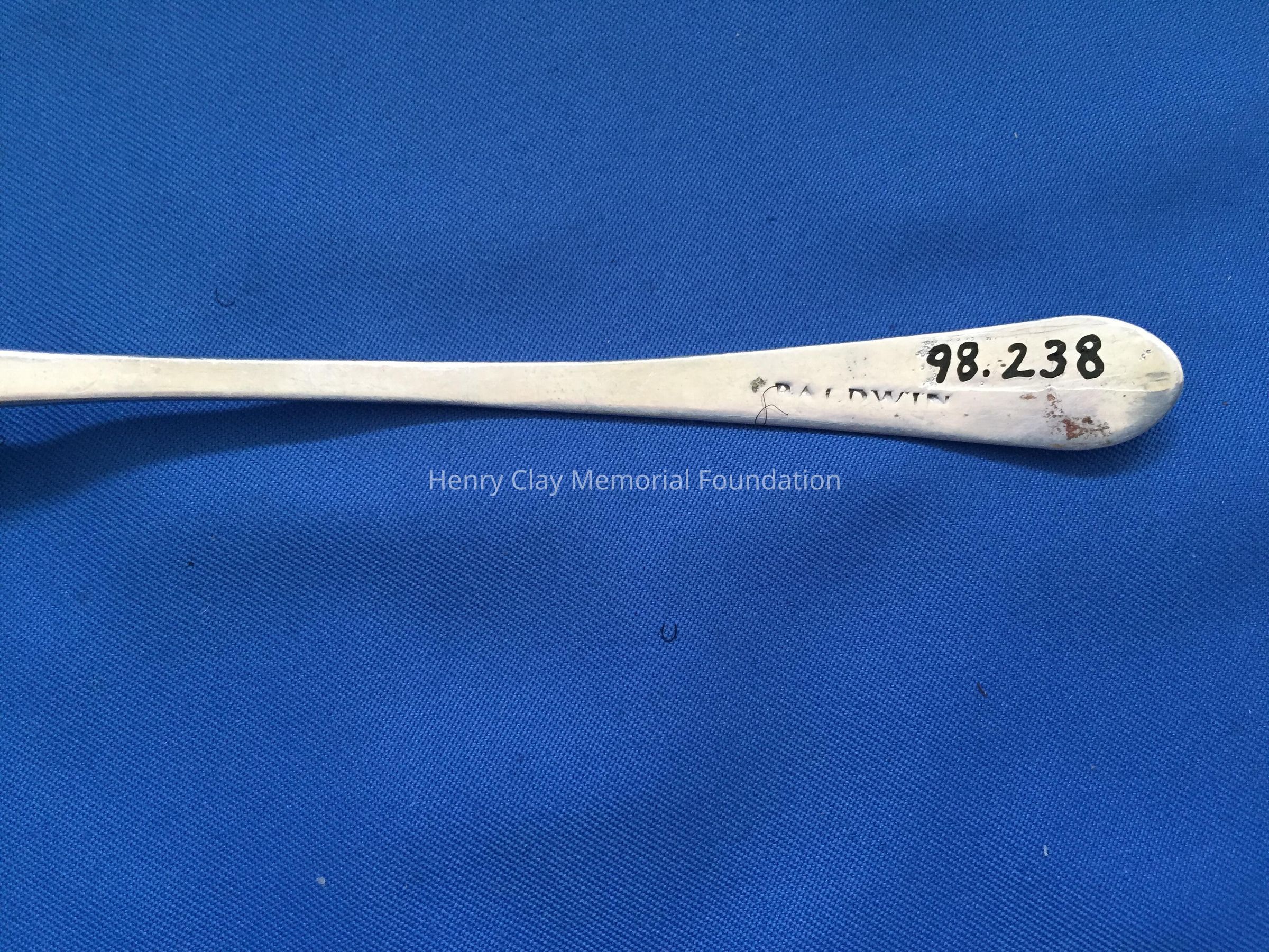 Long slender spoon with deep bowl. Engraved "AS" on top front of handle. Stamped "Baldwin" on back.