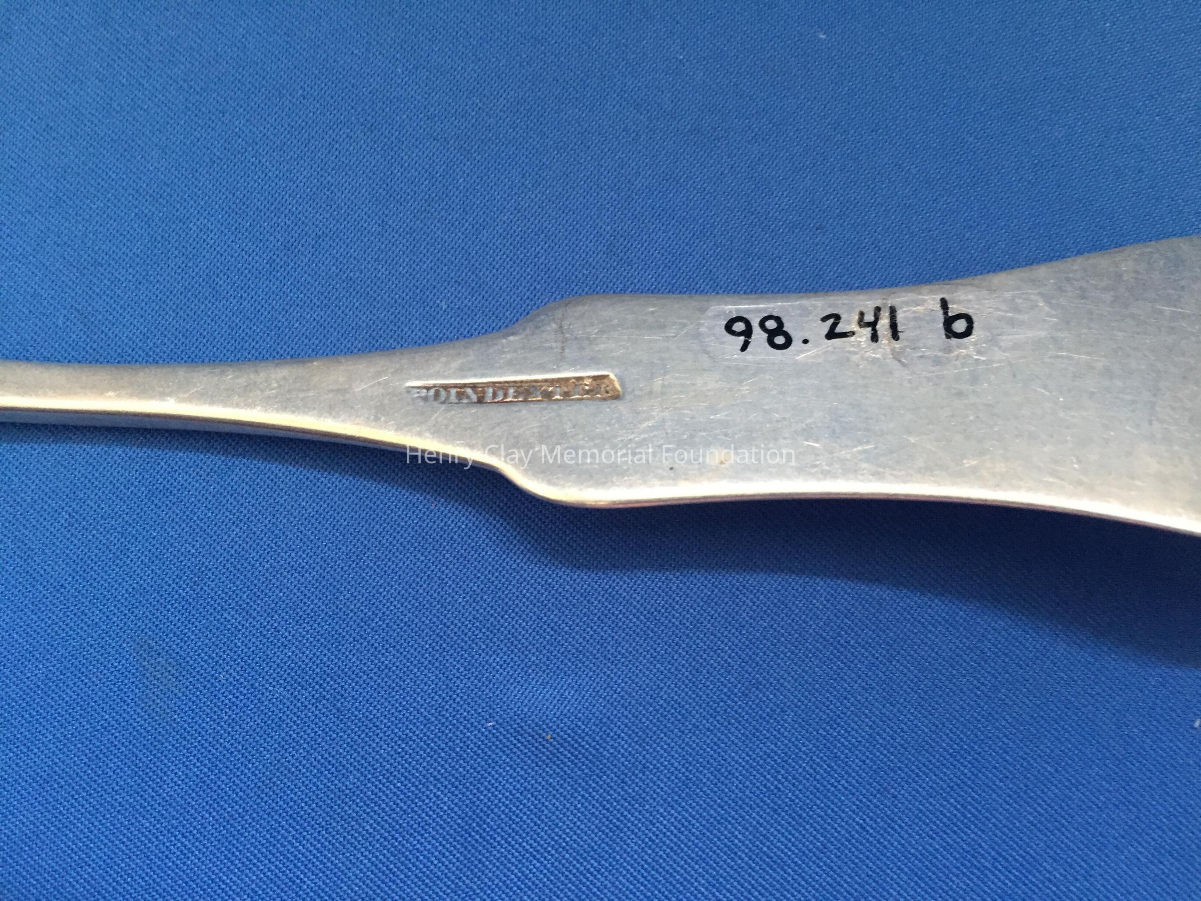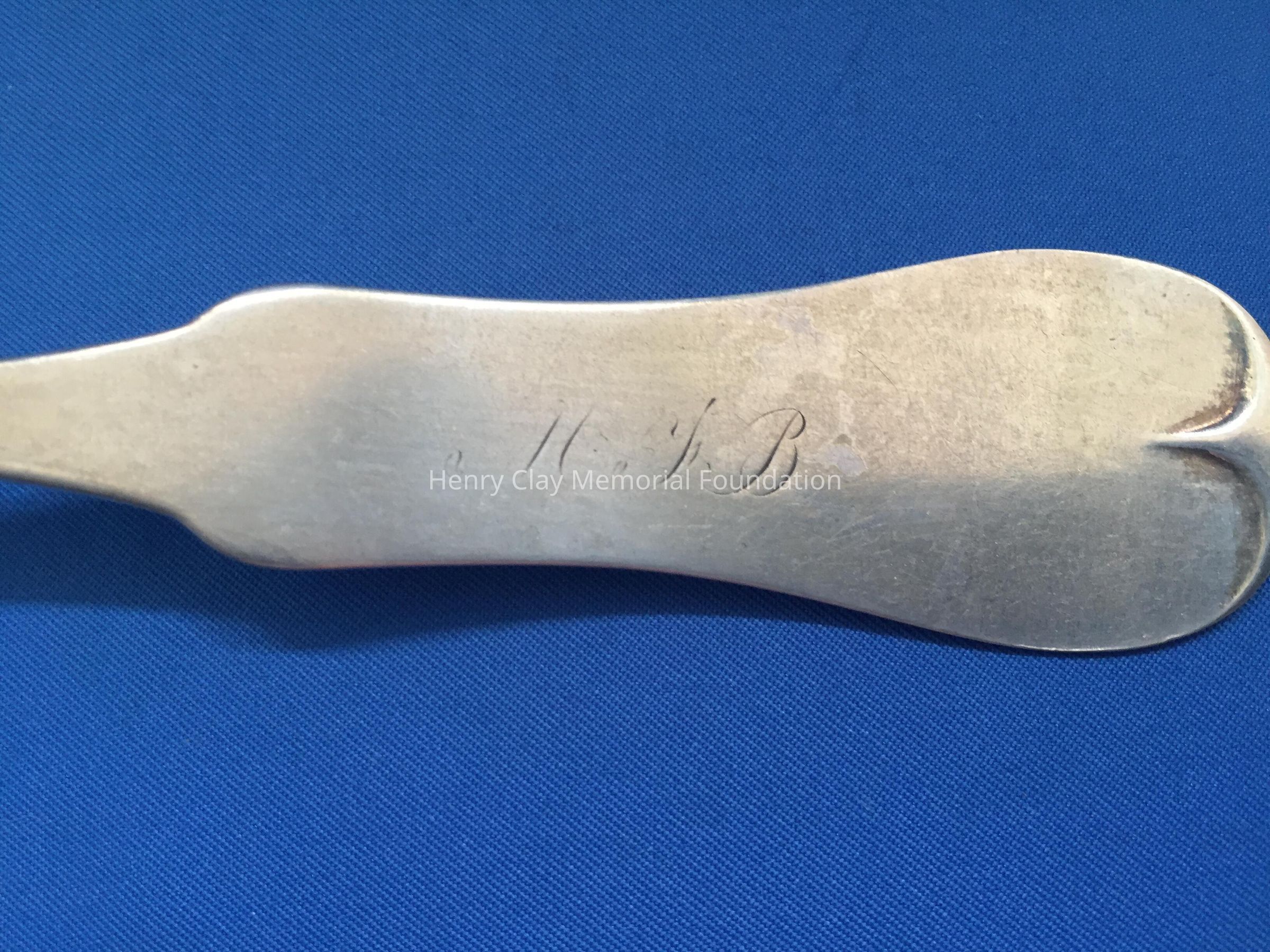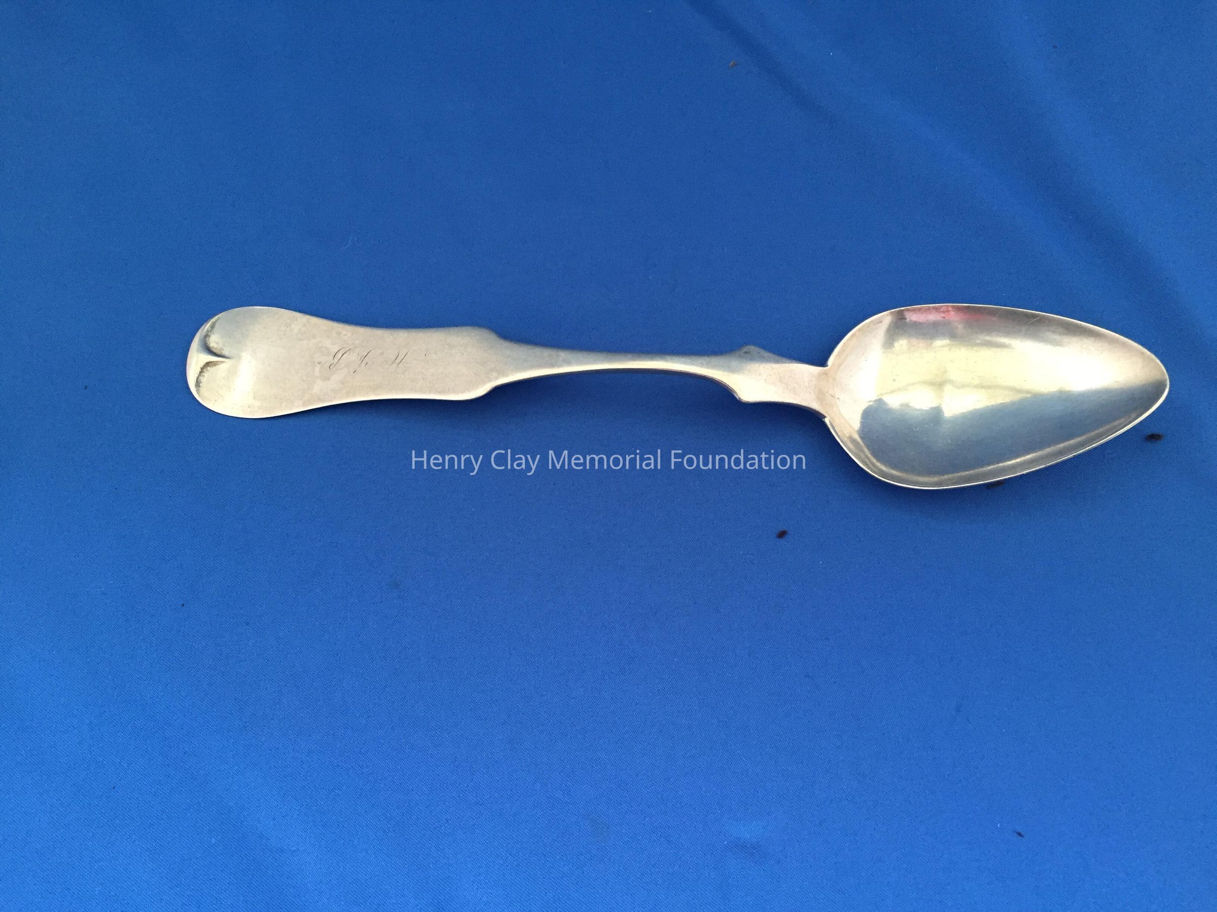 Two medium coin (?) silver spoons engraved "MFB" at top front handle. Stamped on back with "Poindexter."