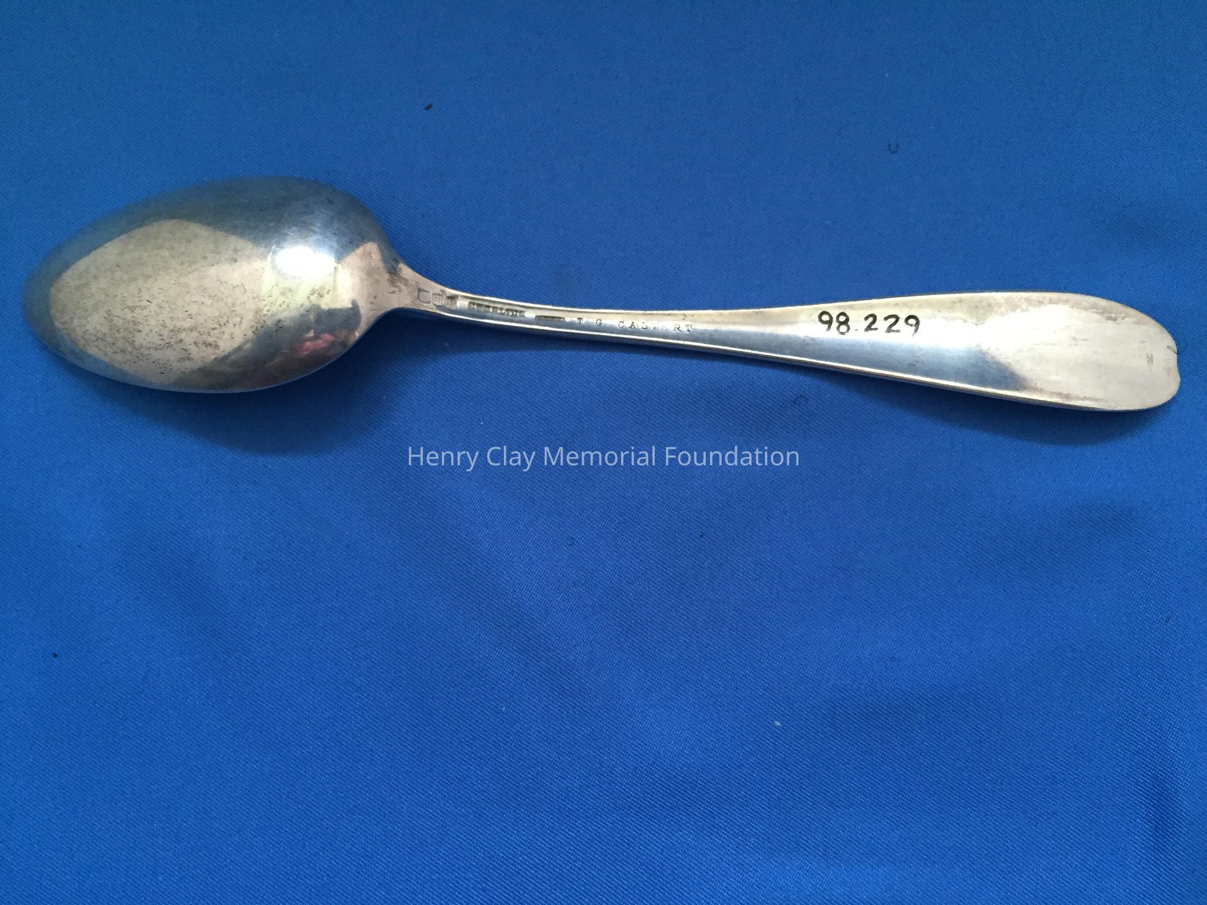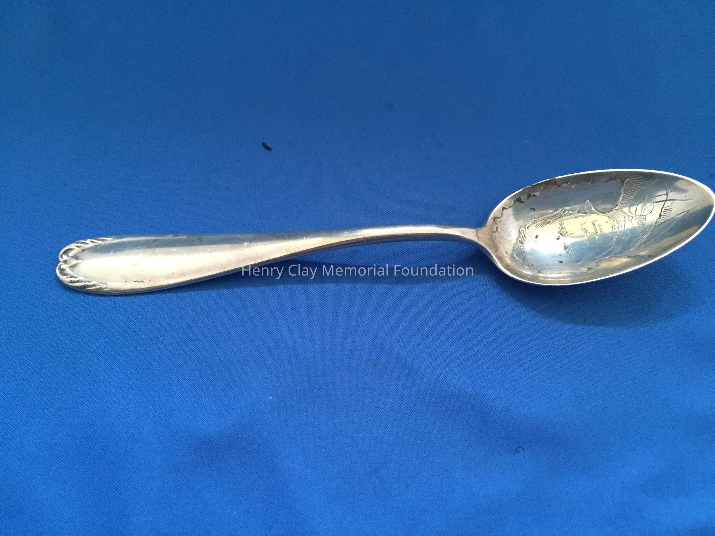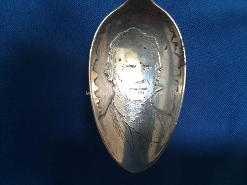 Teaspoon depicting bust of Henry Clay in the bowl. Hallmark on the back of the handle and stamped "TG Calvert."