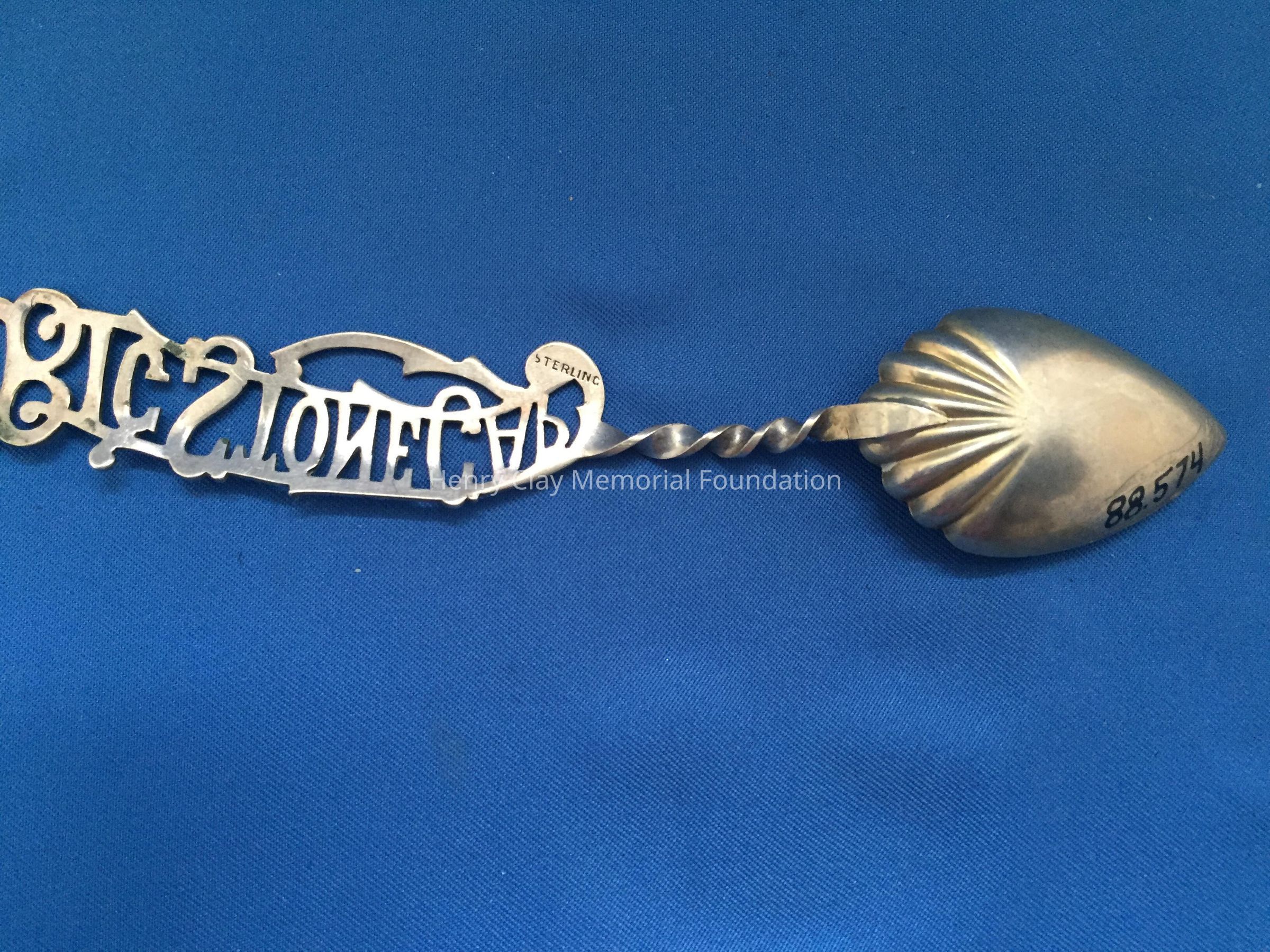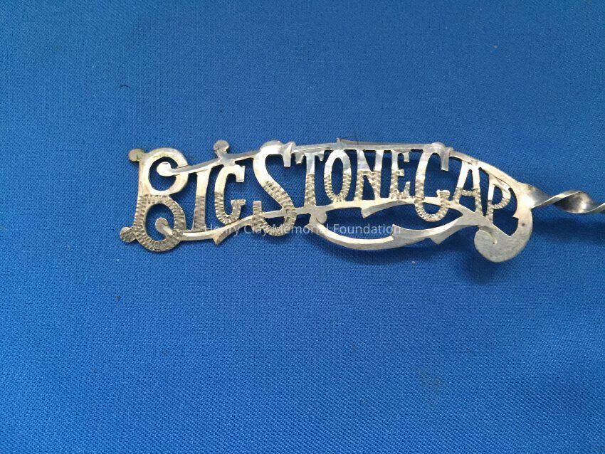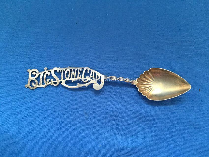 Small spoon with spade-shaped gold-wash bowl. "Big Stone Gap" cut in handle. Stamped "Sterling" on back.