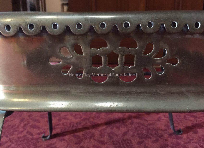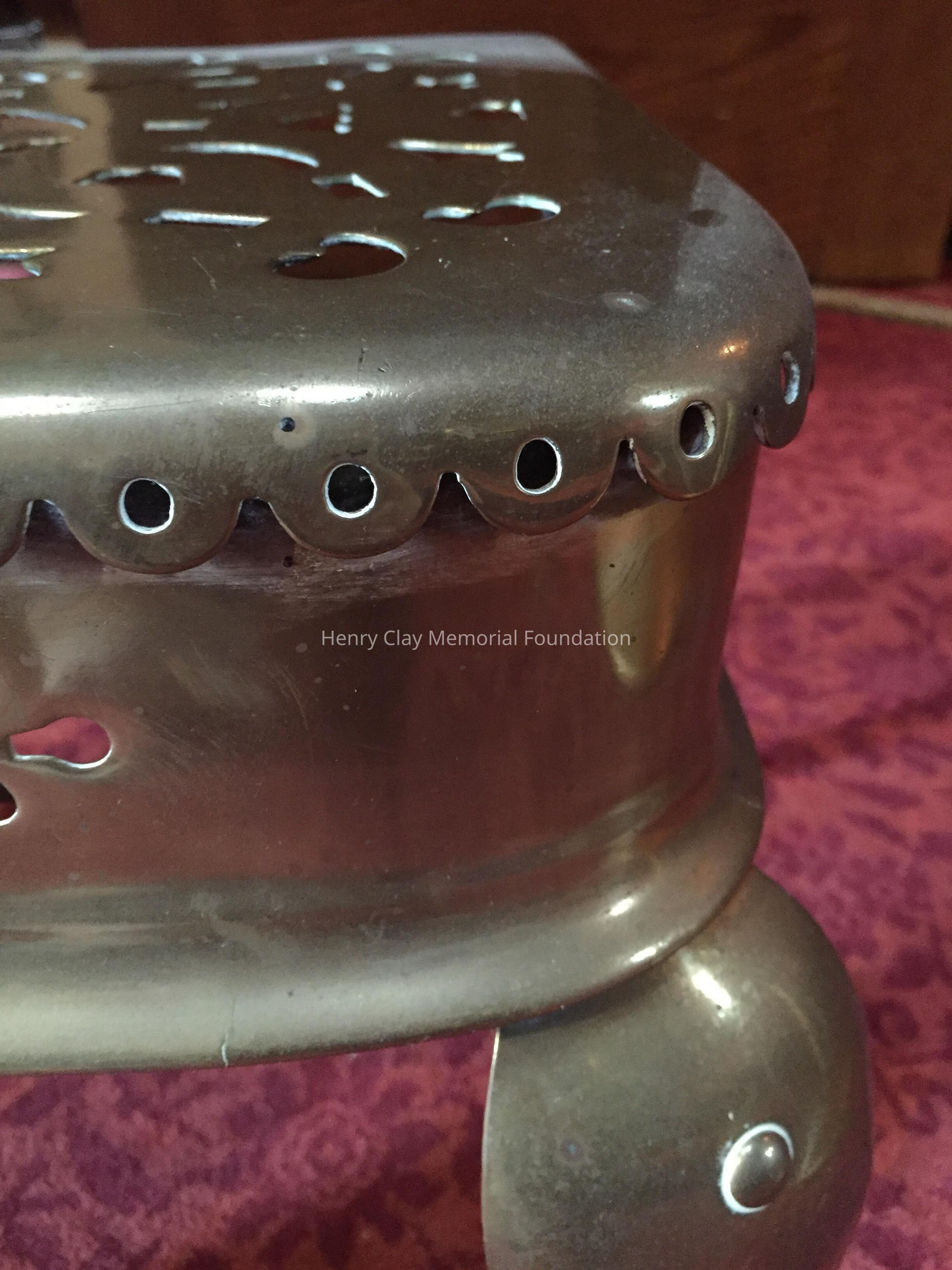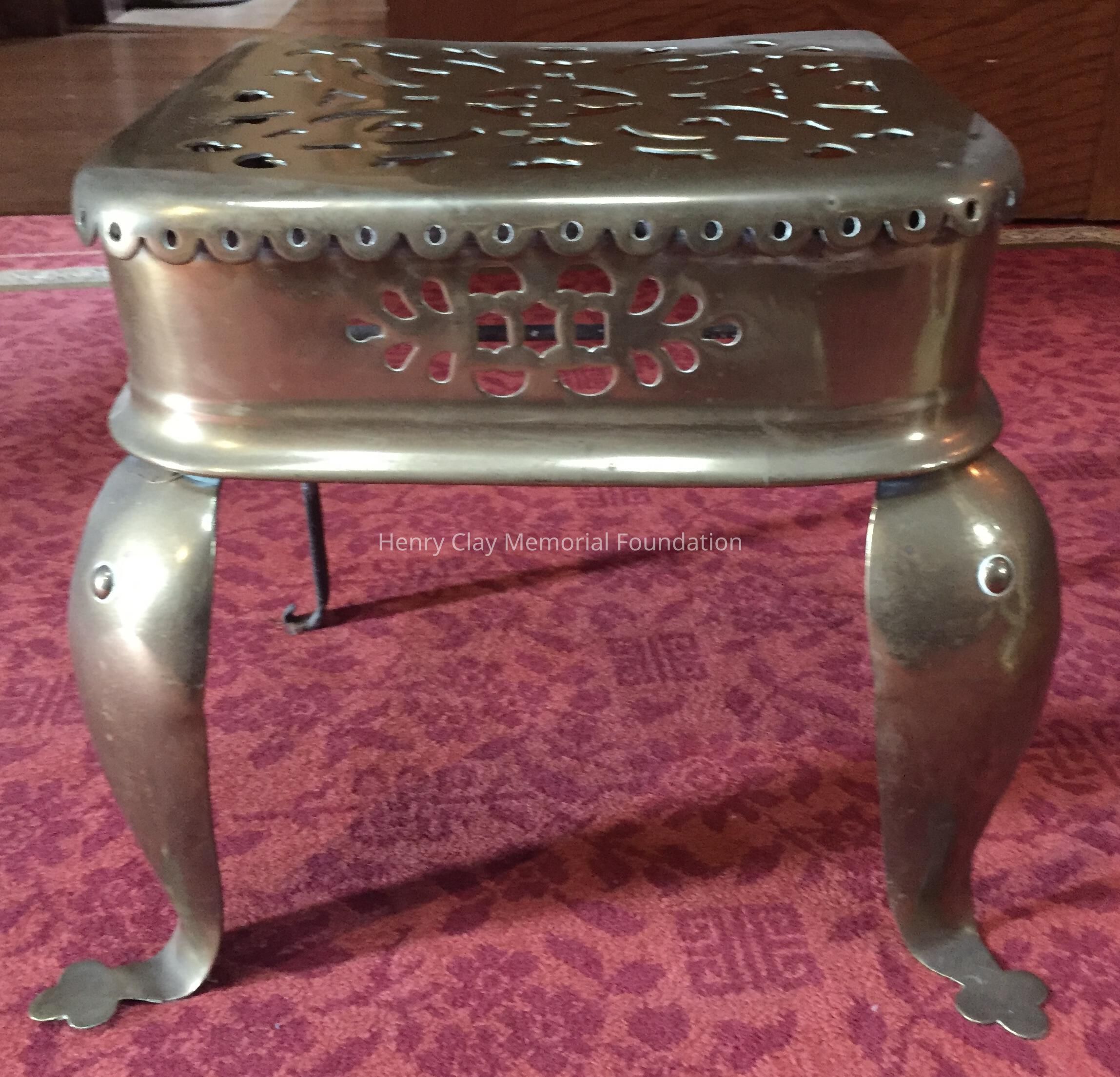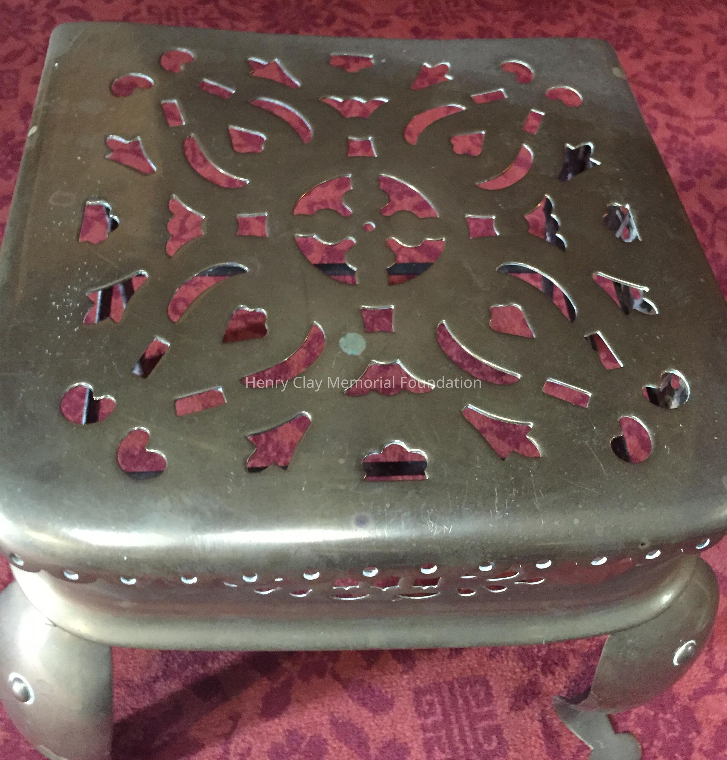 Brass stand, 4 legs, pierced square top.