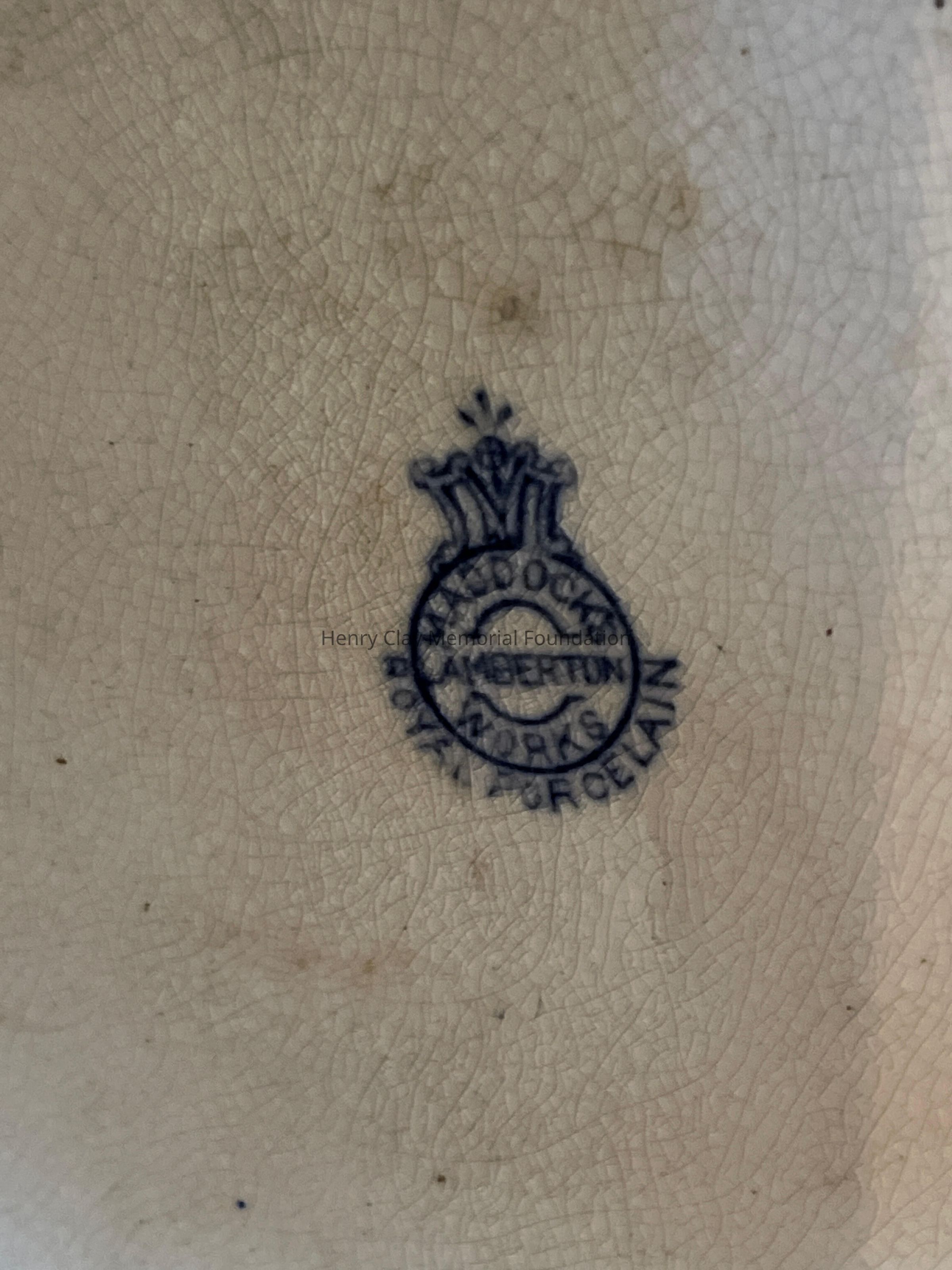 China, Stafforshire, blue and white with scalloped, fluted edge at top. China mark in blue on bottom says "Lamberton, Maddocks Works, Royal Porcelain." See catalog sheet for diagram.Dimensions