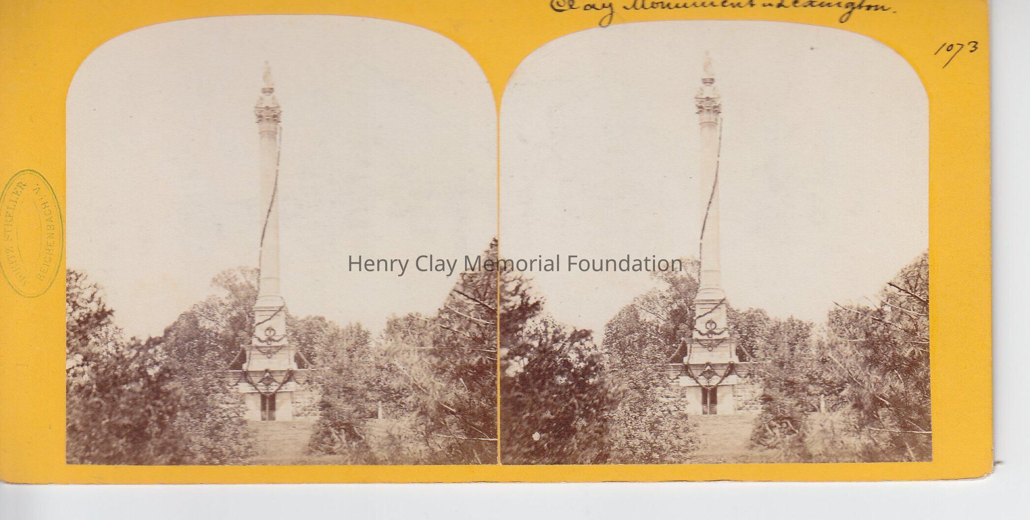 This is a photograph of the Henry Clay Monument in Lexington, Ky with holiday decorations wrapped around it.
