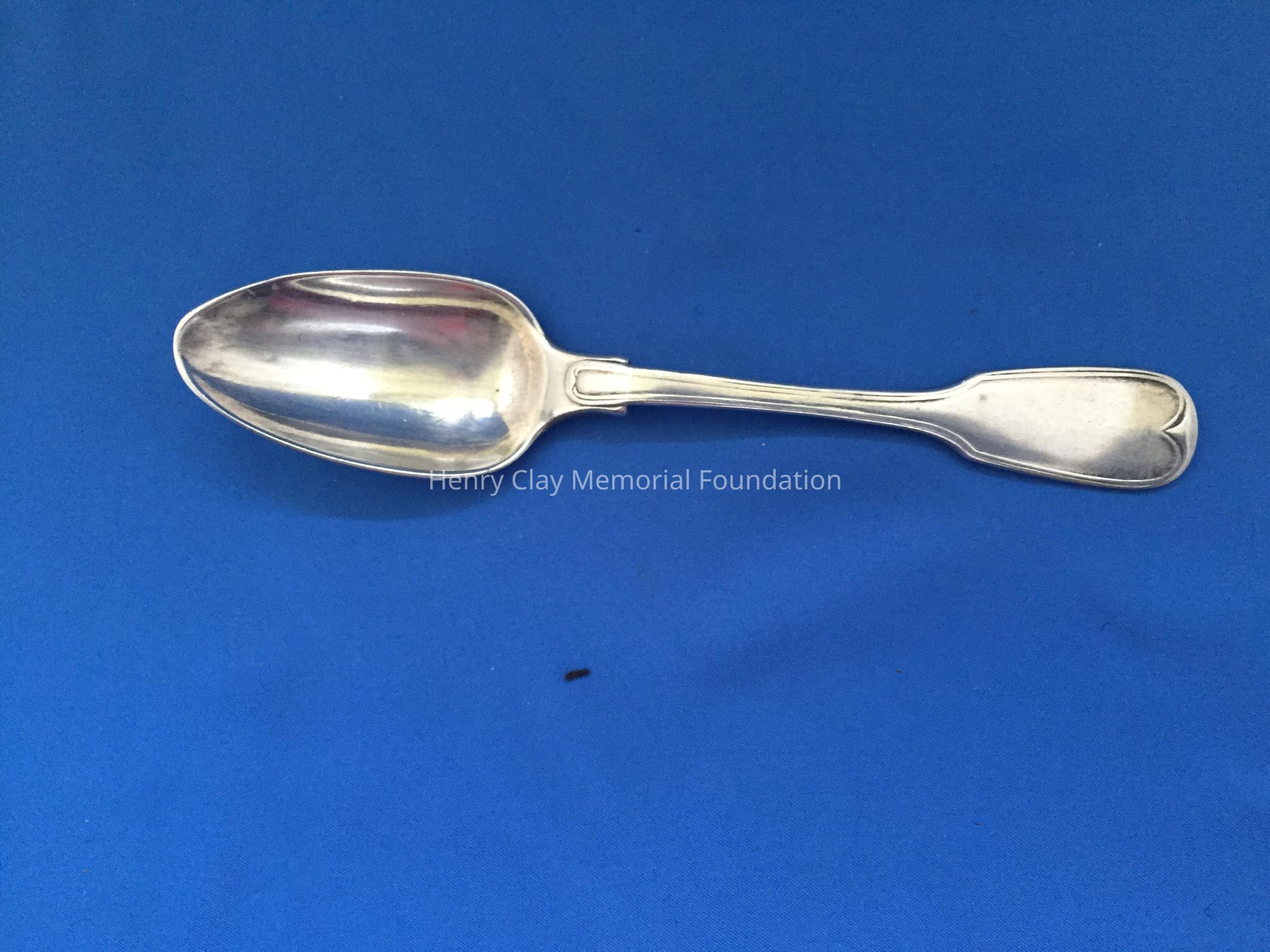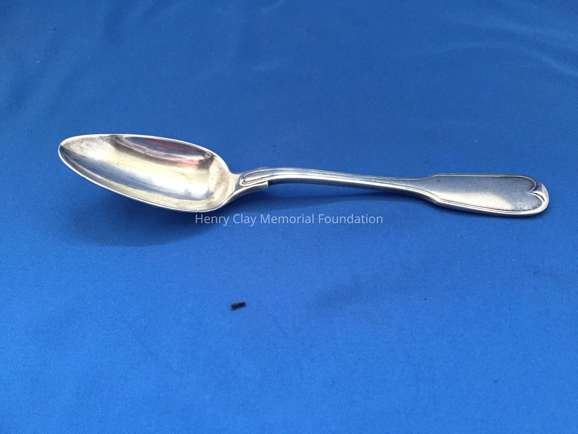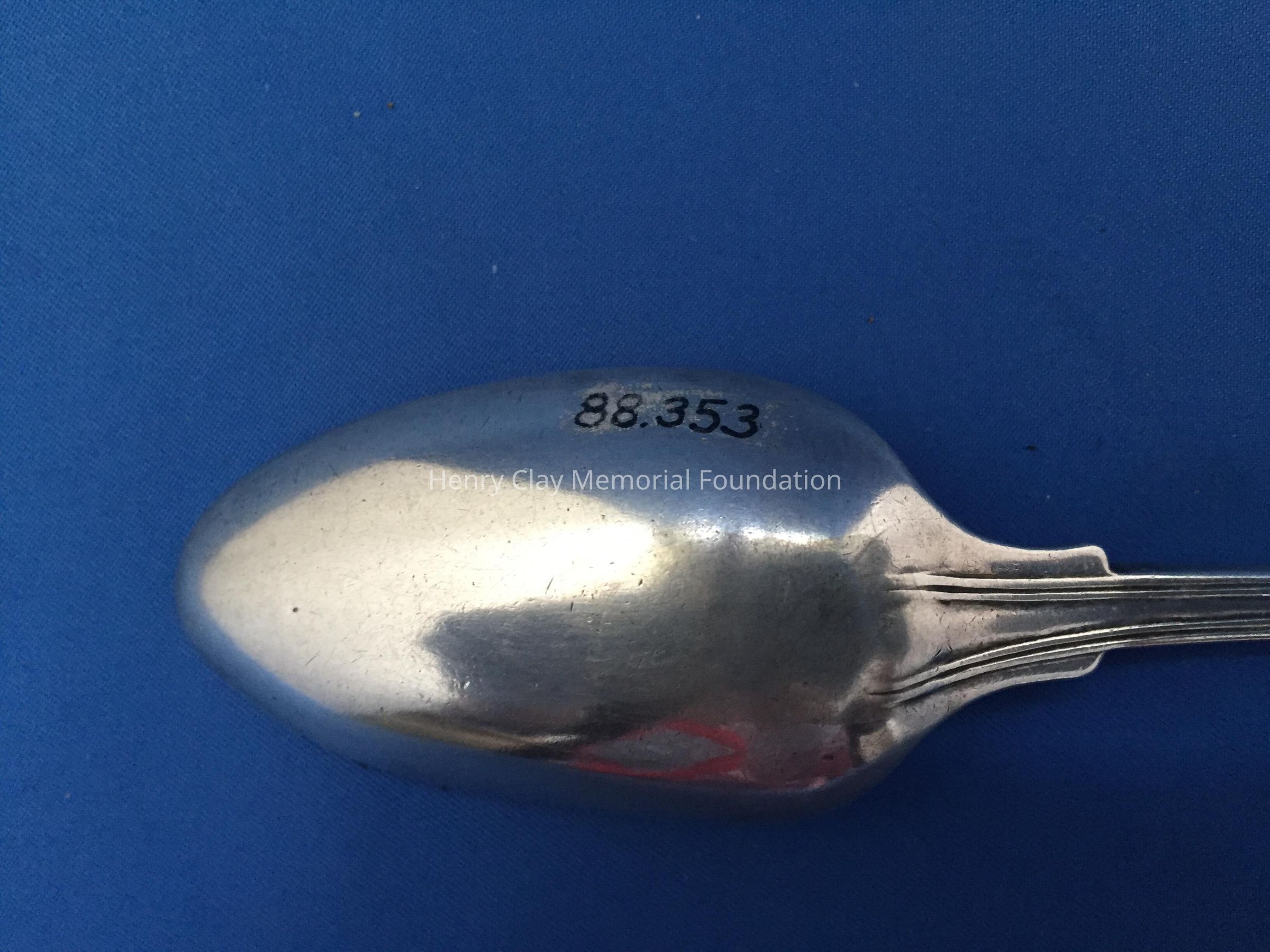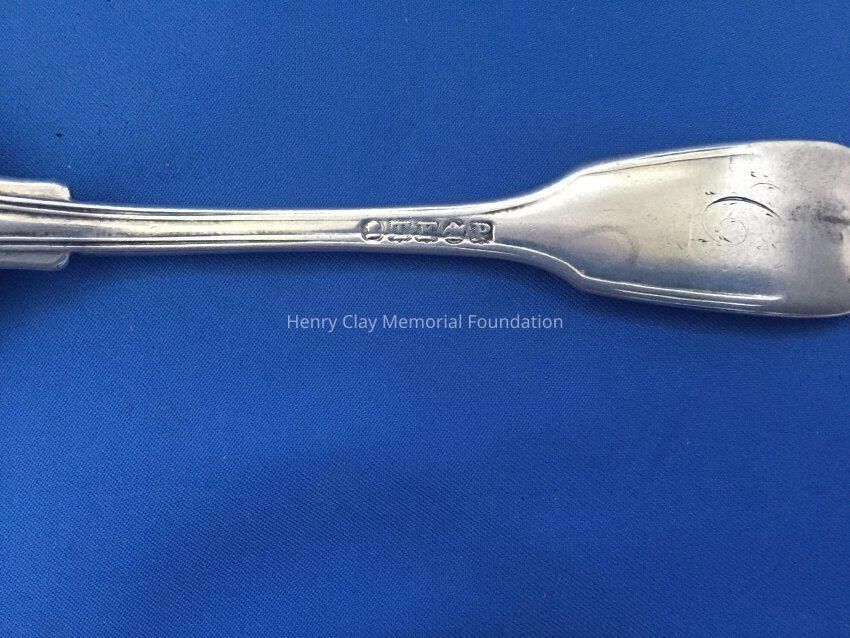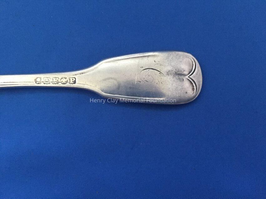 Medium spoon with "C" engraved on top back of handle. Also on back are several hallmarks--bust facing left, "T', "F", an eagle, and "P"