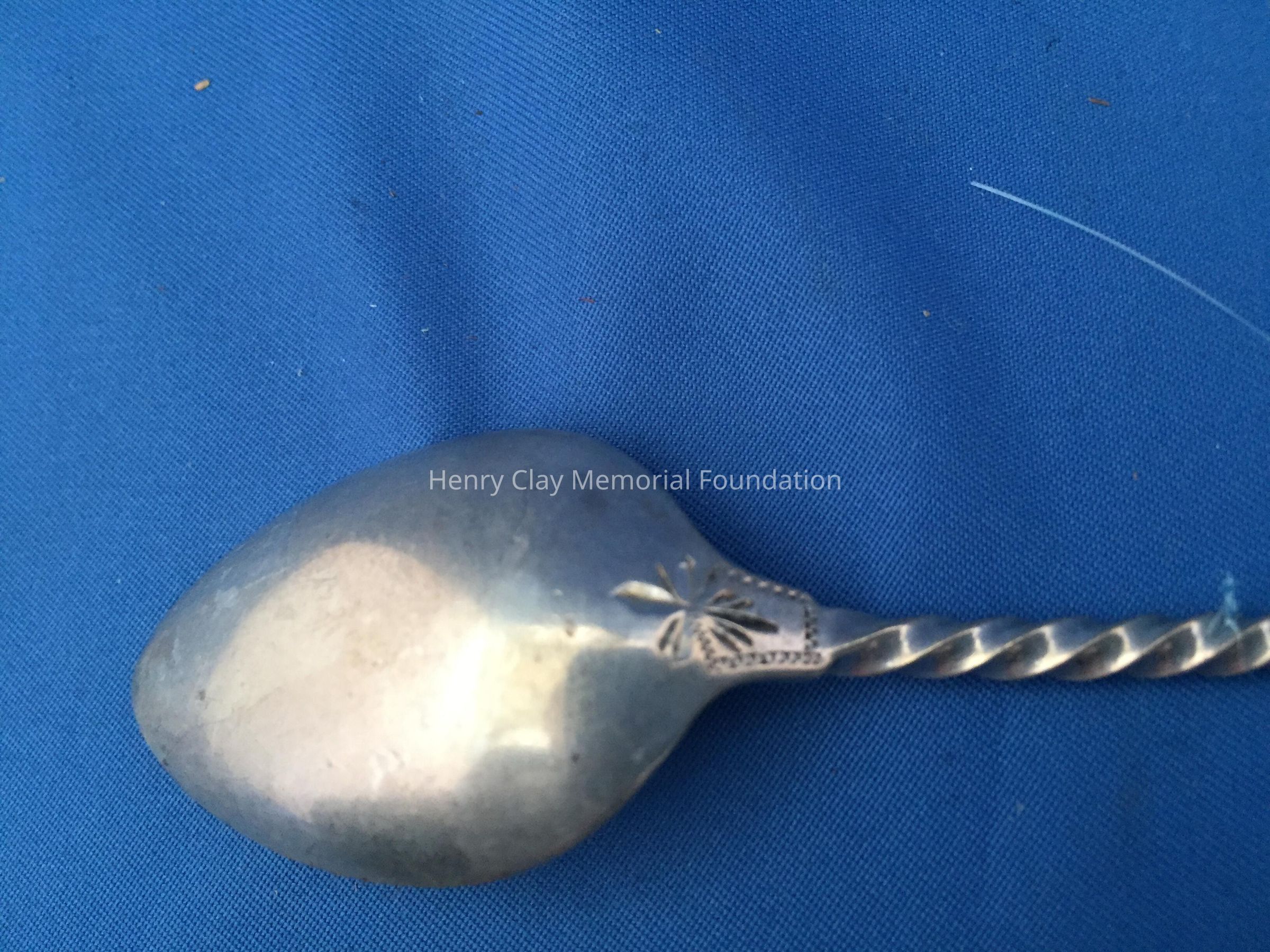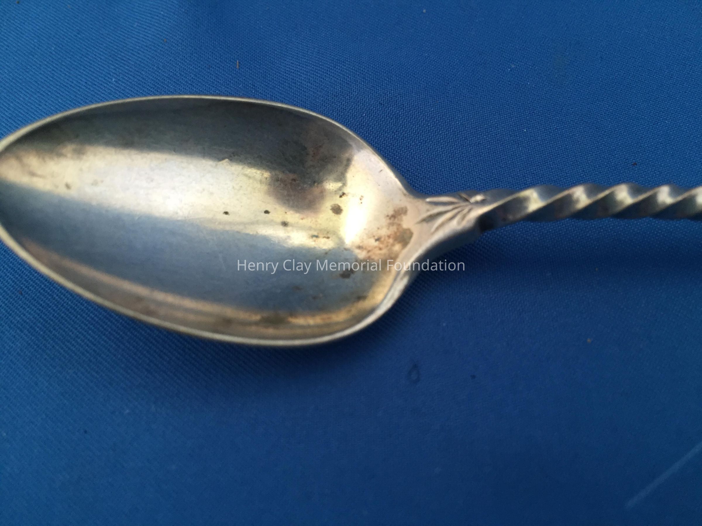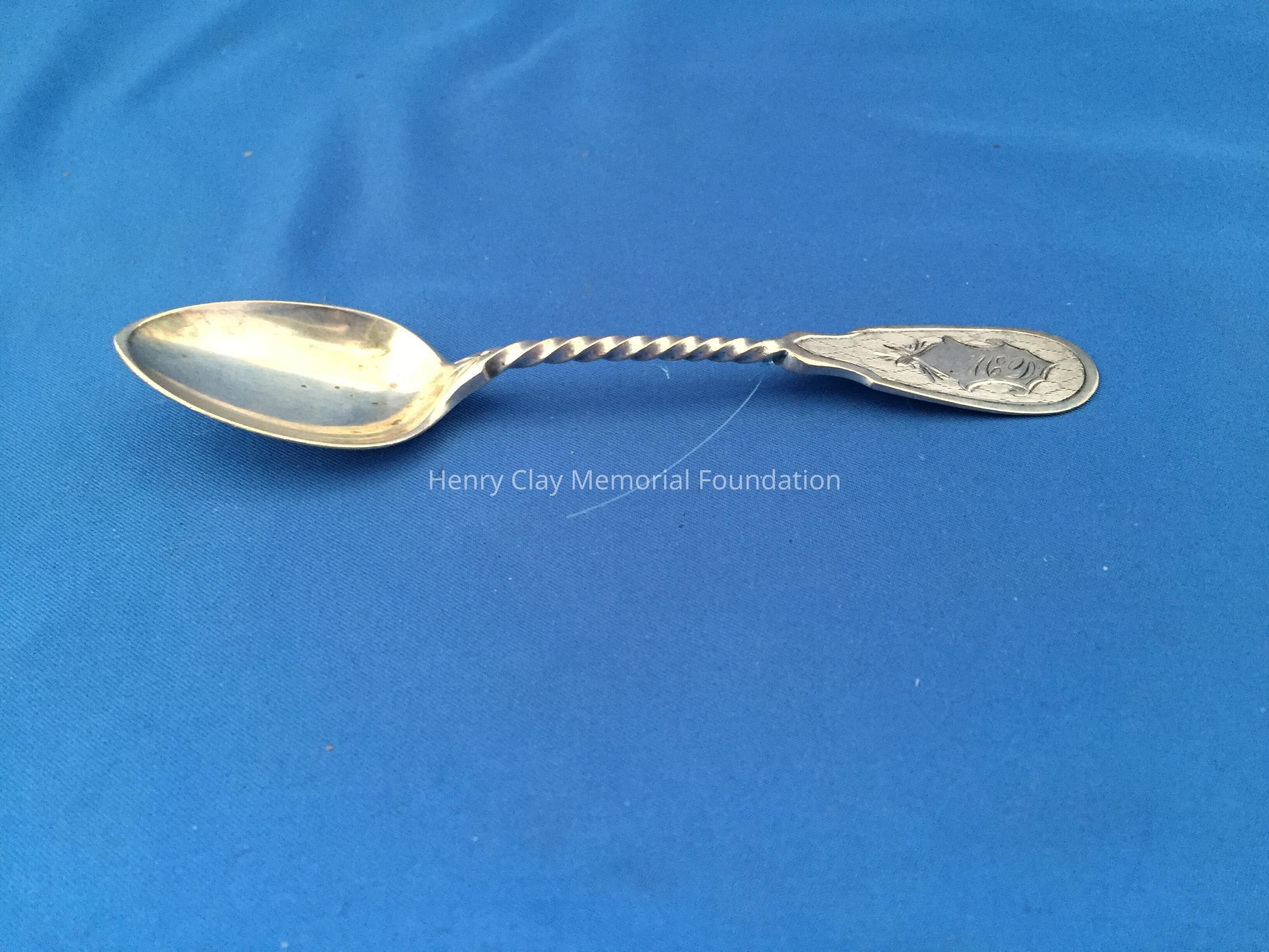 11 silver with twisted handles, engraved "McD" at front top with engraved design and back of handle and at top back of bowl. 3 individuals marks on back - an Asterisk, "S", and "[illegible]". Bowls have faint gold tone.