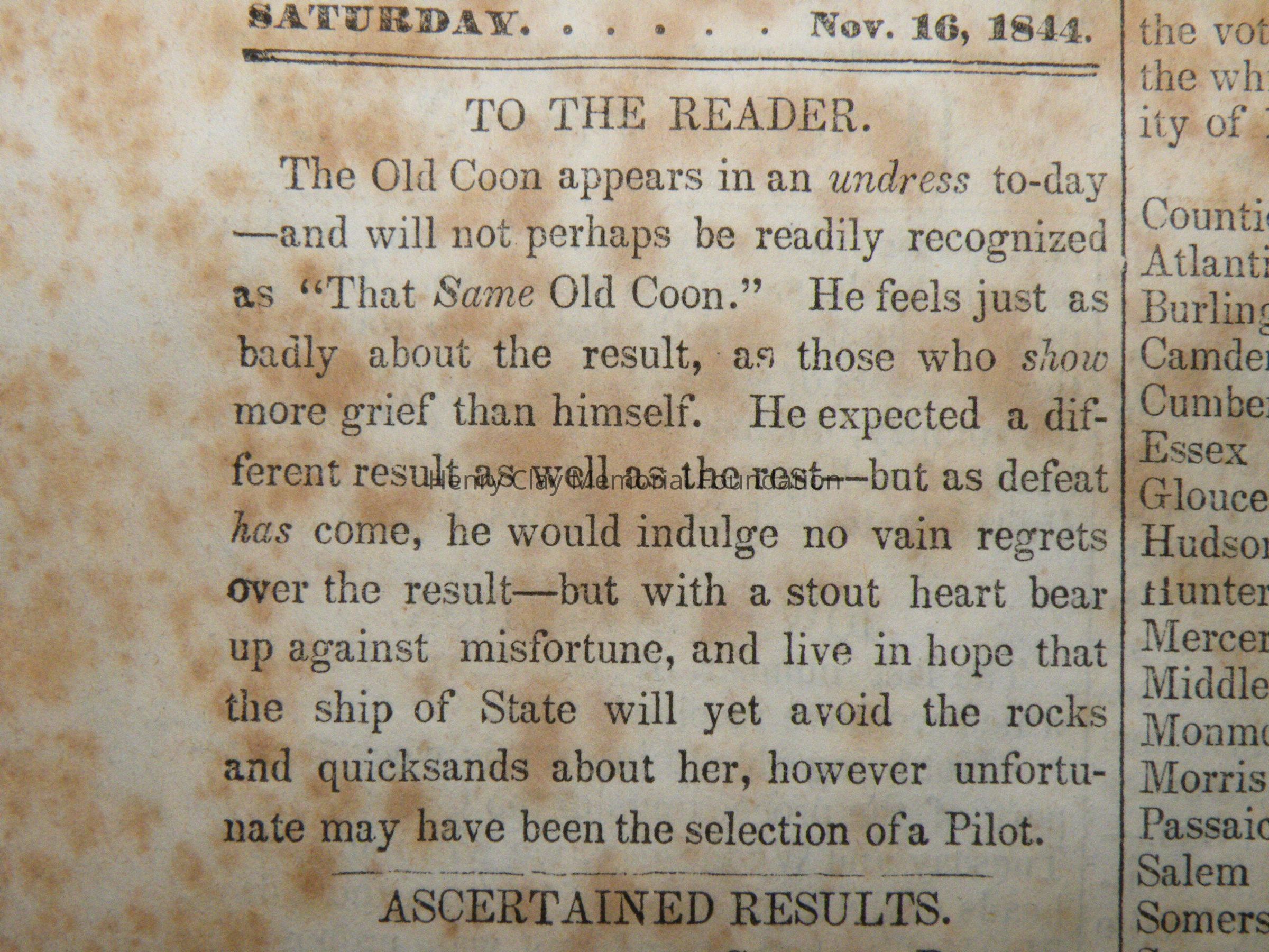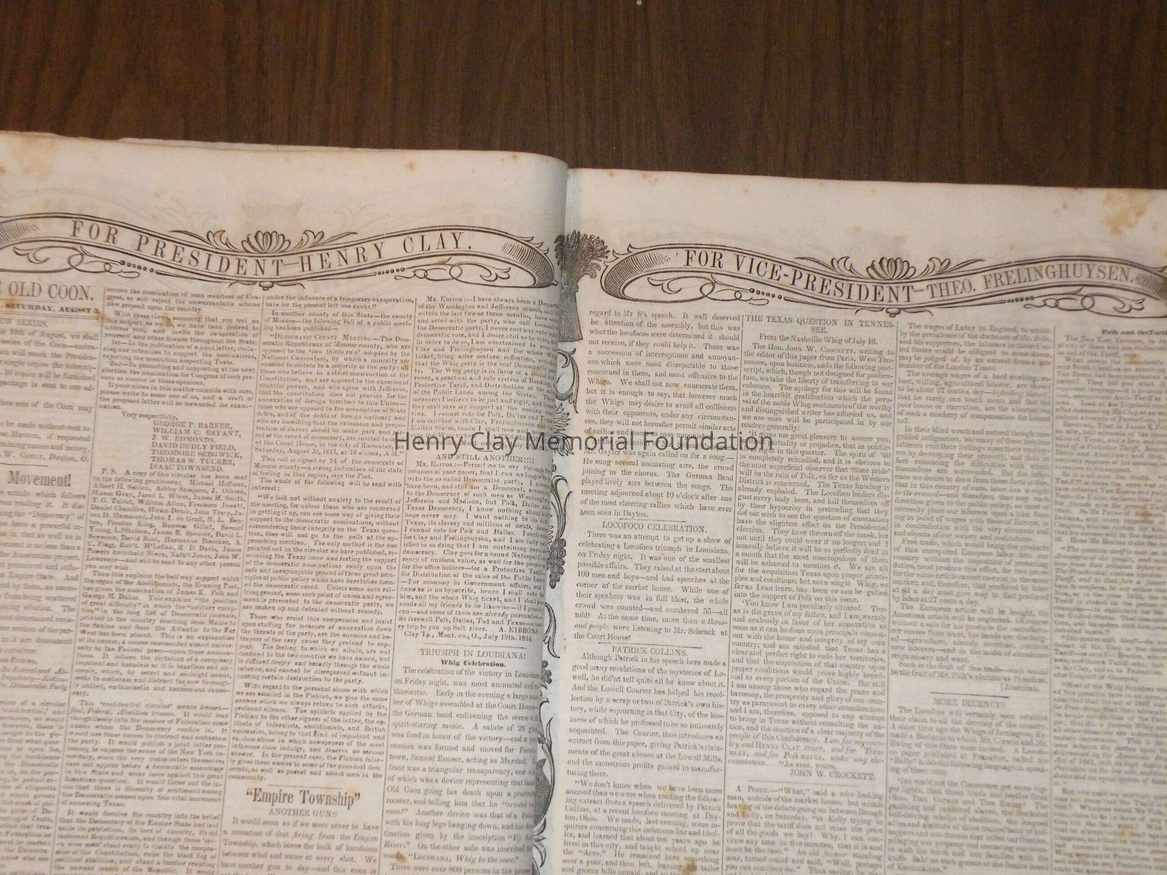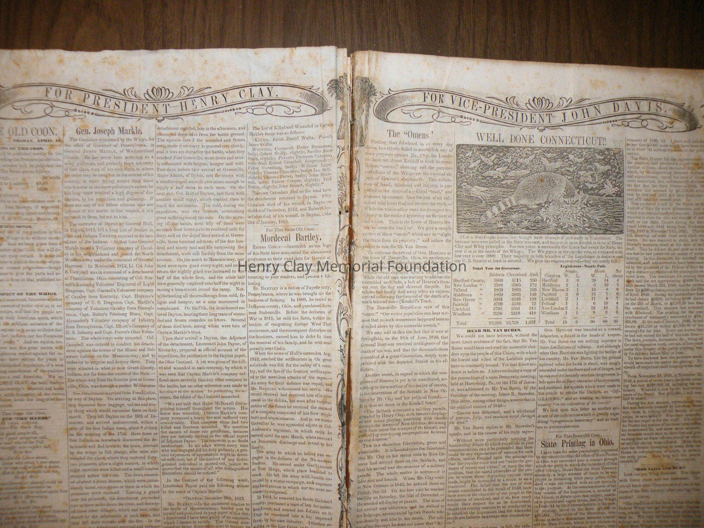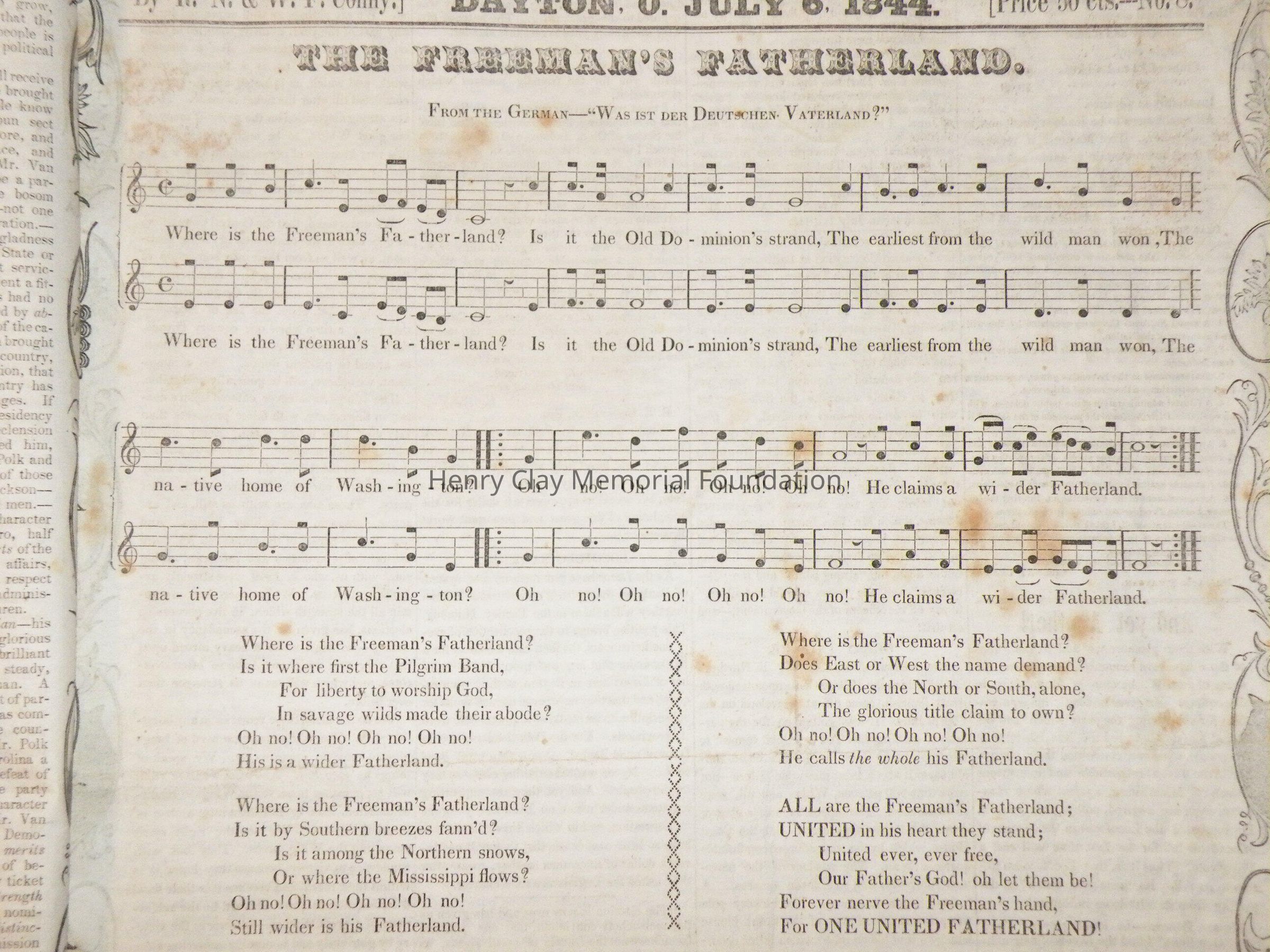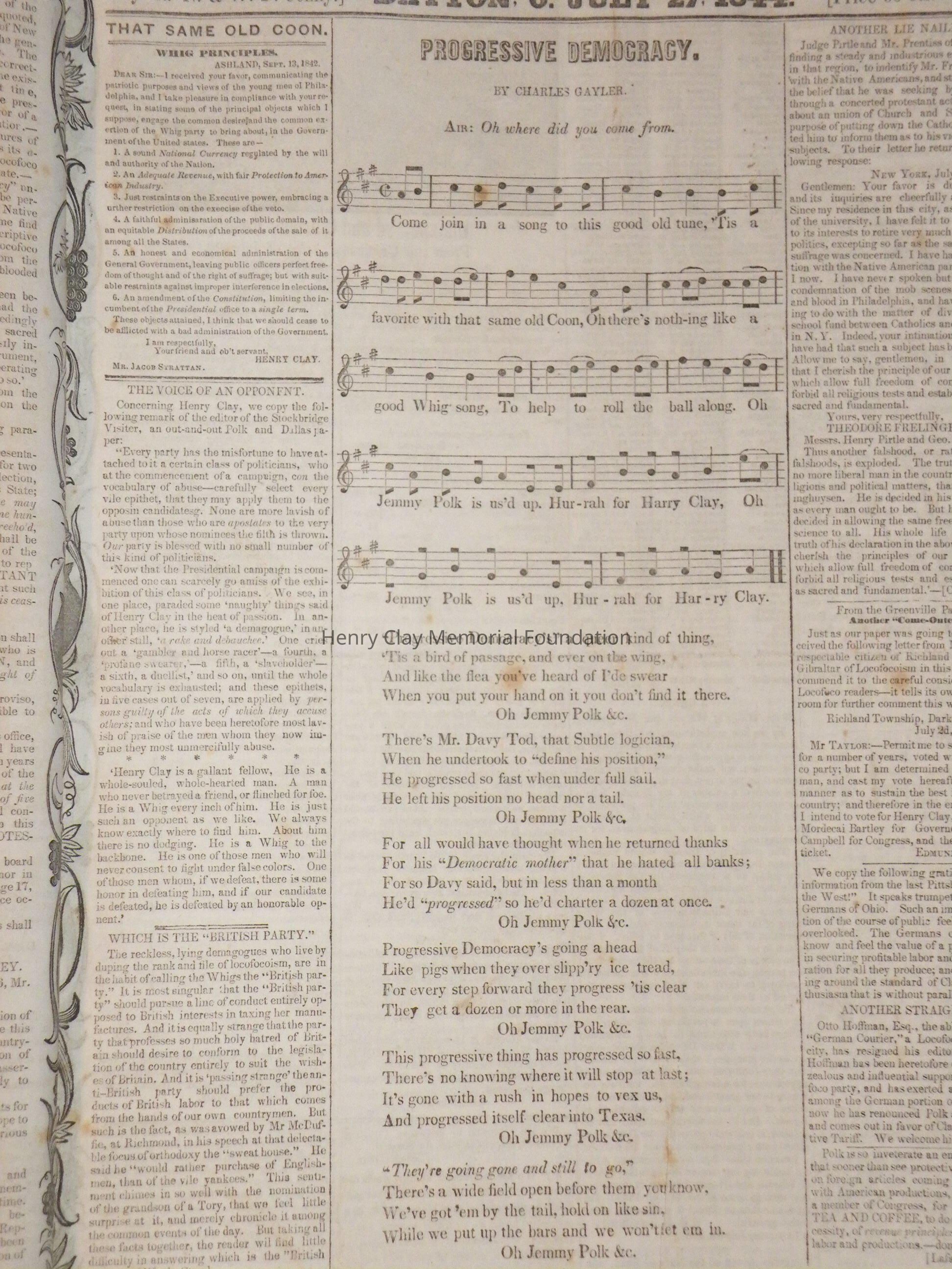 A run of newspapers published in Dayton, Ohio in support of Henry Clay's presidential bid in 1844. This bound collection contains all but one issue of the paper. The first issue was printed April 12, 1844 and the last on November 16, 1852. The paper contains news of campaign events, election issues, and other matter of interest to supporters of Henry Clay. This paper was created and produced by the editors of the "Dayton Journal."