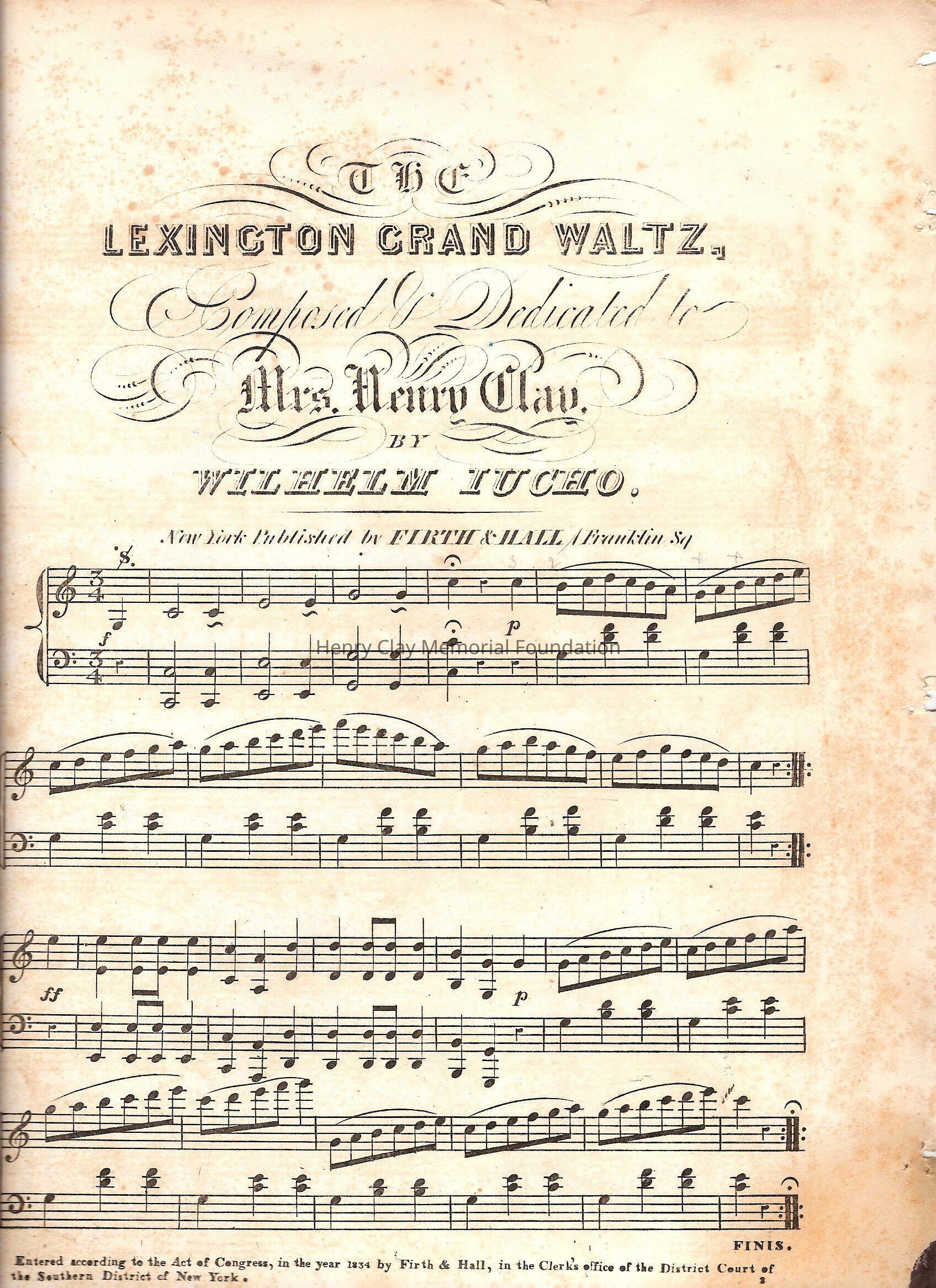 A piece of sheet music for the Lexington Grand Waltz by Wilhelm Iucho.