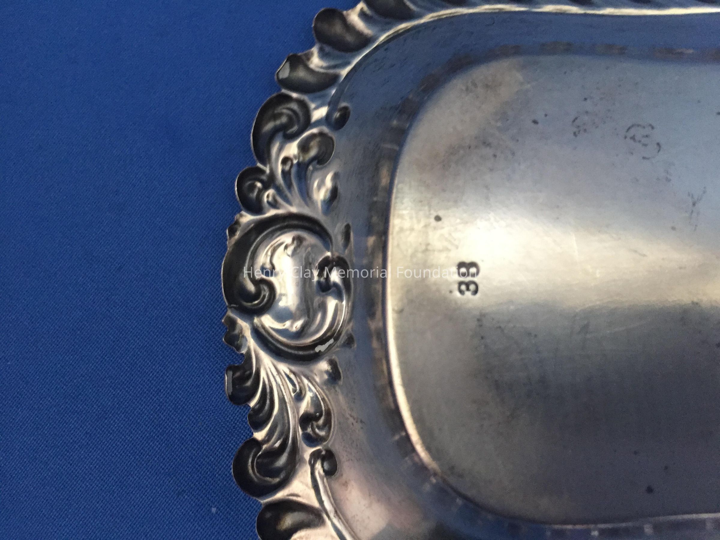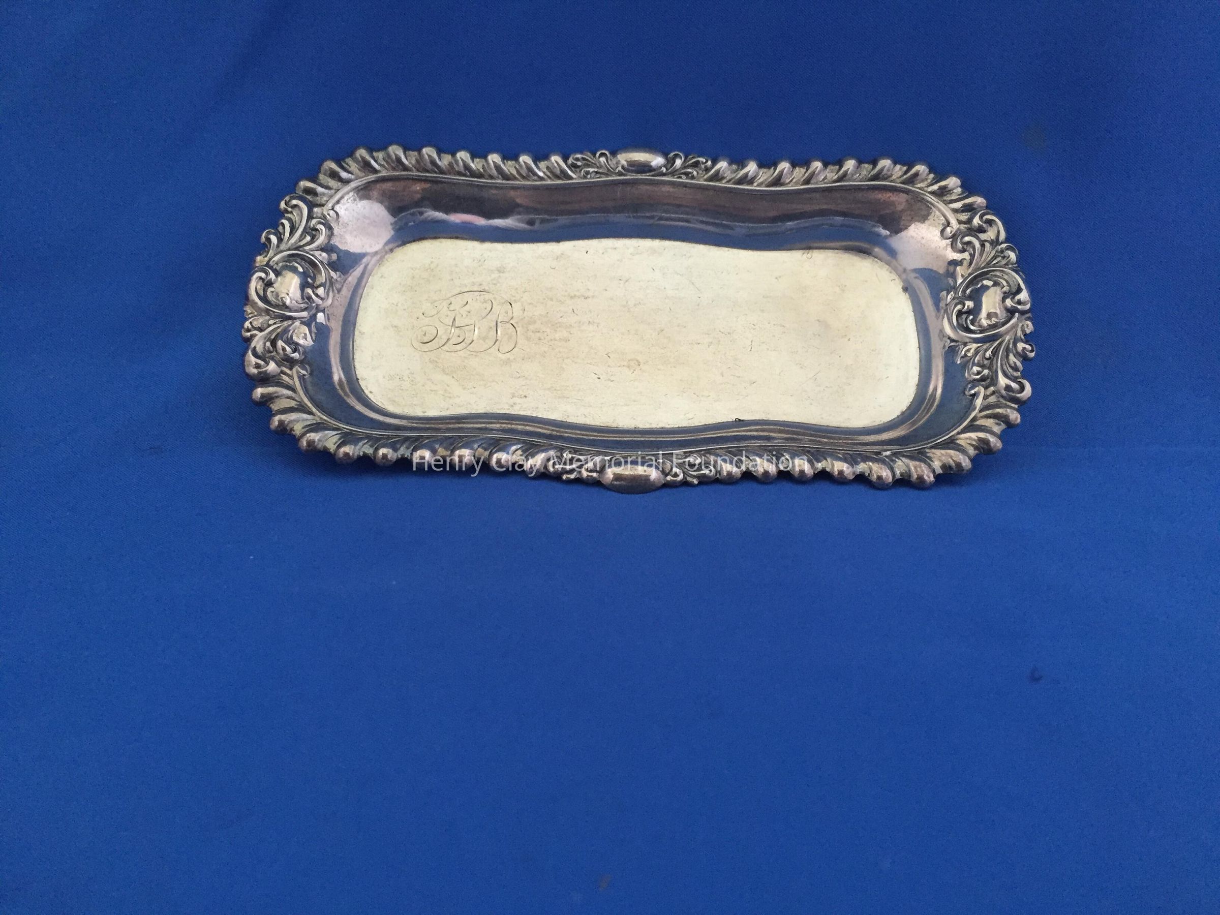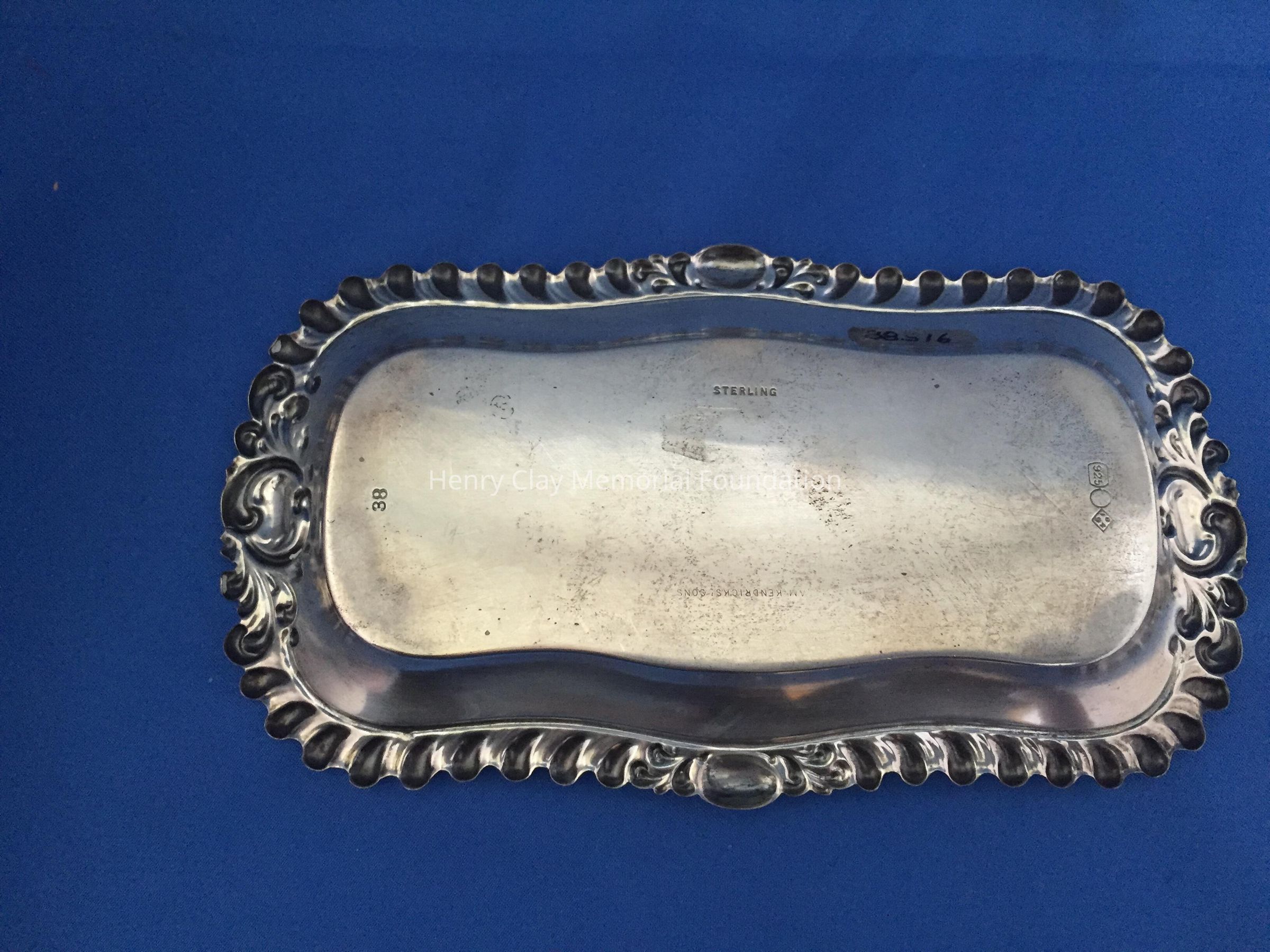 Sterling, rectangular with scalloped edge. Engraved "75B." Stamped "Wm. Kendricks' Sons."