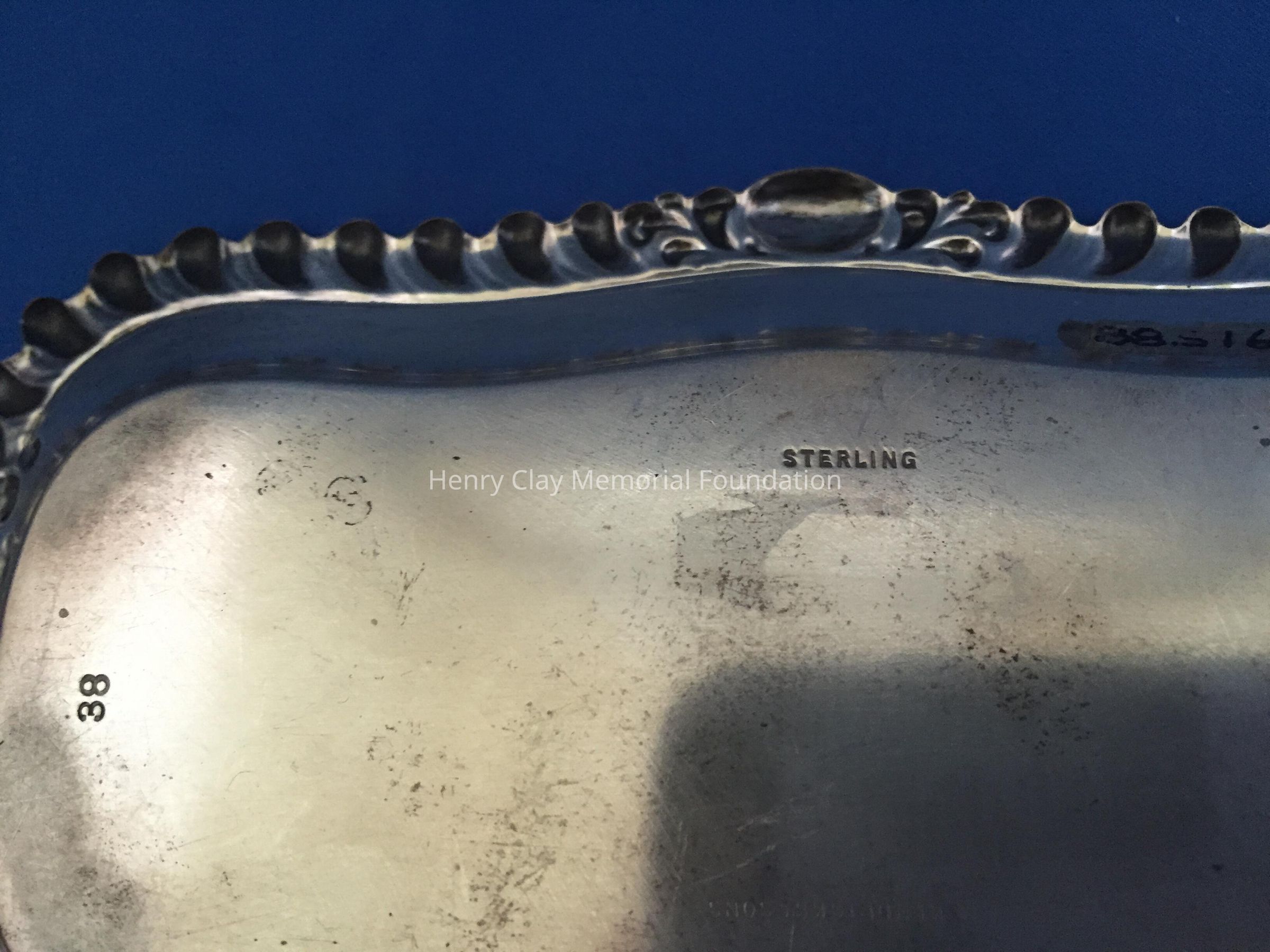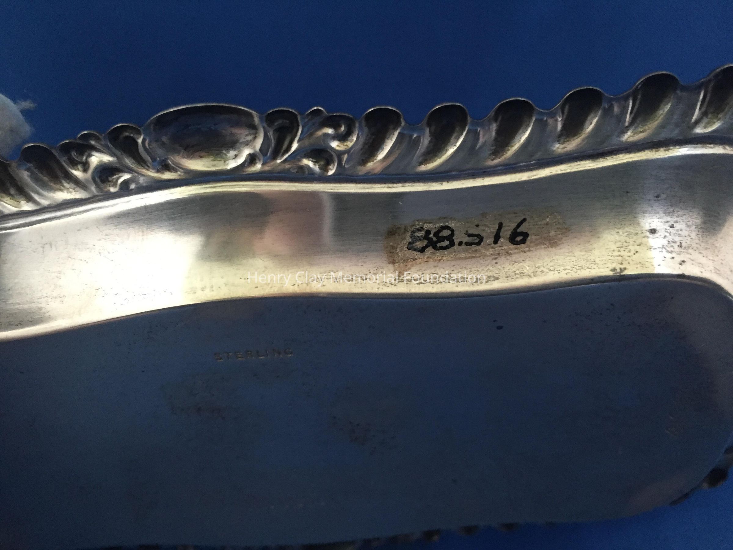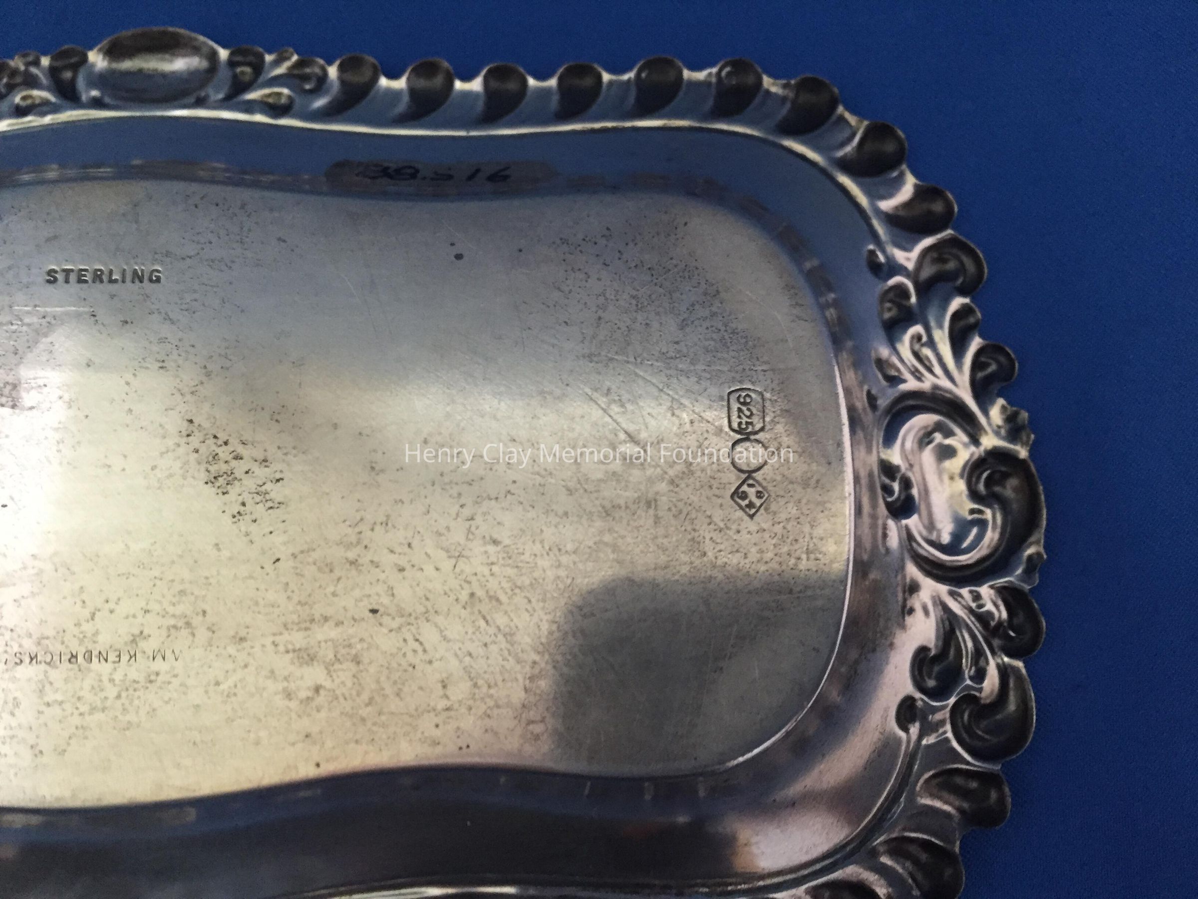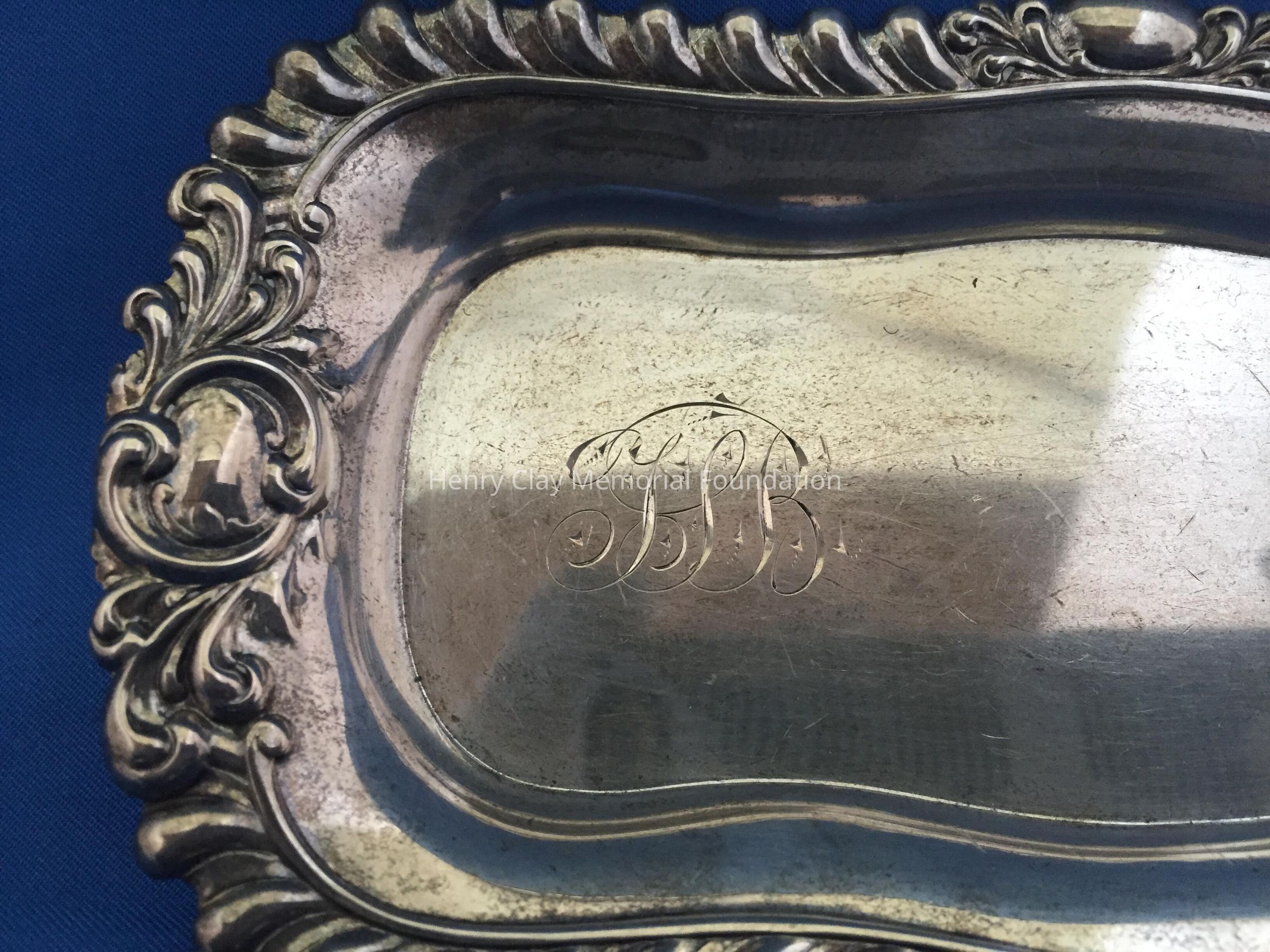 Sterling, rectangular with scalloped edge. Engraved "75B." Stamped "Wm. Kendricks' Sons."