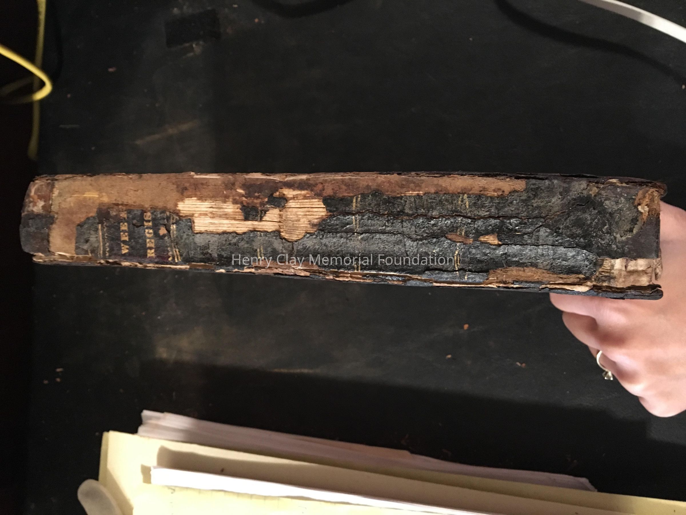 Collection of newspapers. Pg.. 806 Jan. 2 1836 obituary from Mrs. Ann B.Erwin "last surviving daughter of the Hon. Henry Clay, in the 29th year of her age". Pg. 389 Feb. 6, 1836 article about an imported Cattle Brought to Ashland. Pg. 210 Nov.28th 1835 letters published between senators H.Clay and JJ.Crittenden. Pg. 283 Dec. 26 1835 Clay will not run for the presidency . Leather cover, Broken spine.