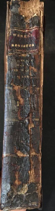 Collection of newspapers. Pg. 332 Clay is mentioned in a letter Leather bounded. Spine is black, cracked several missing pieces. Fire damage.