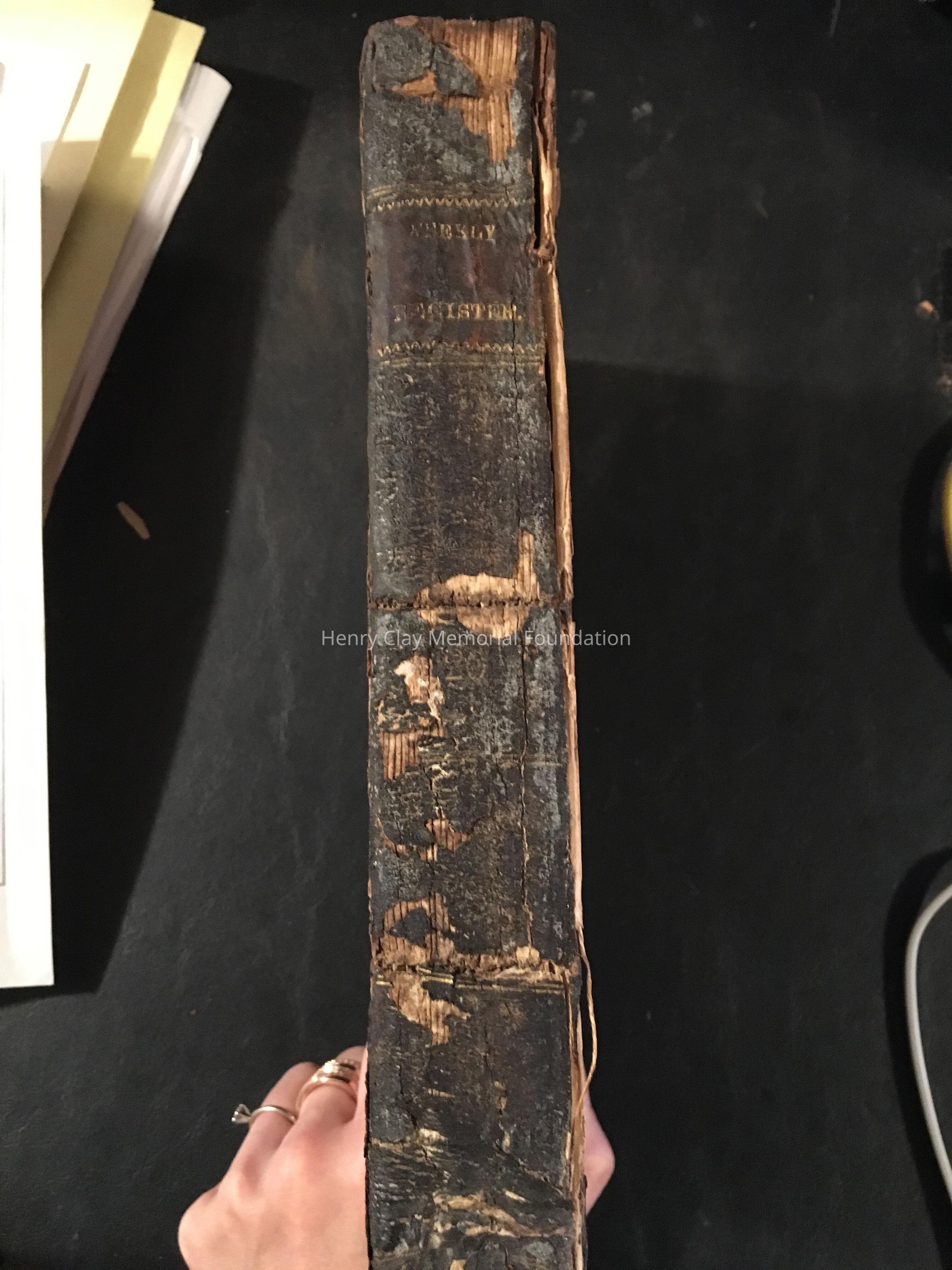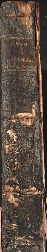 Collection of newspapers. Page 301 july 4 1821 Mr. Clay speech at Lexington (continues to 302) Brown hardcover, is cracking. spine is also cracking. very friable.