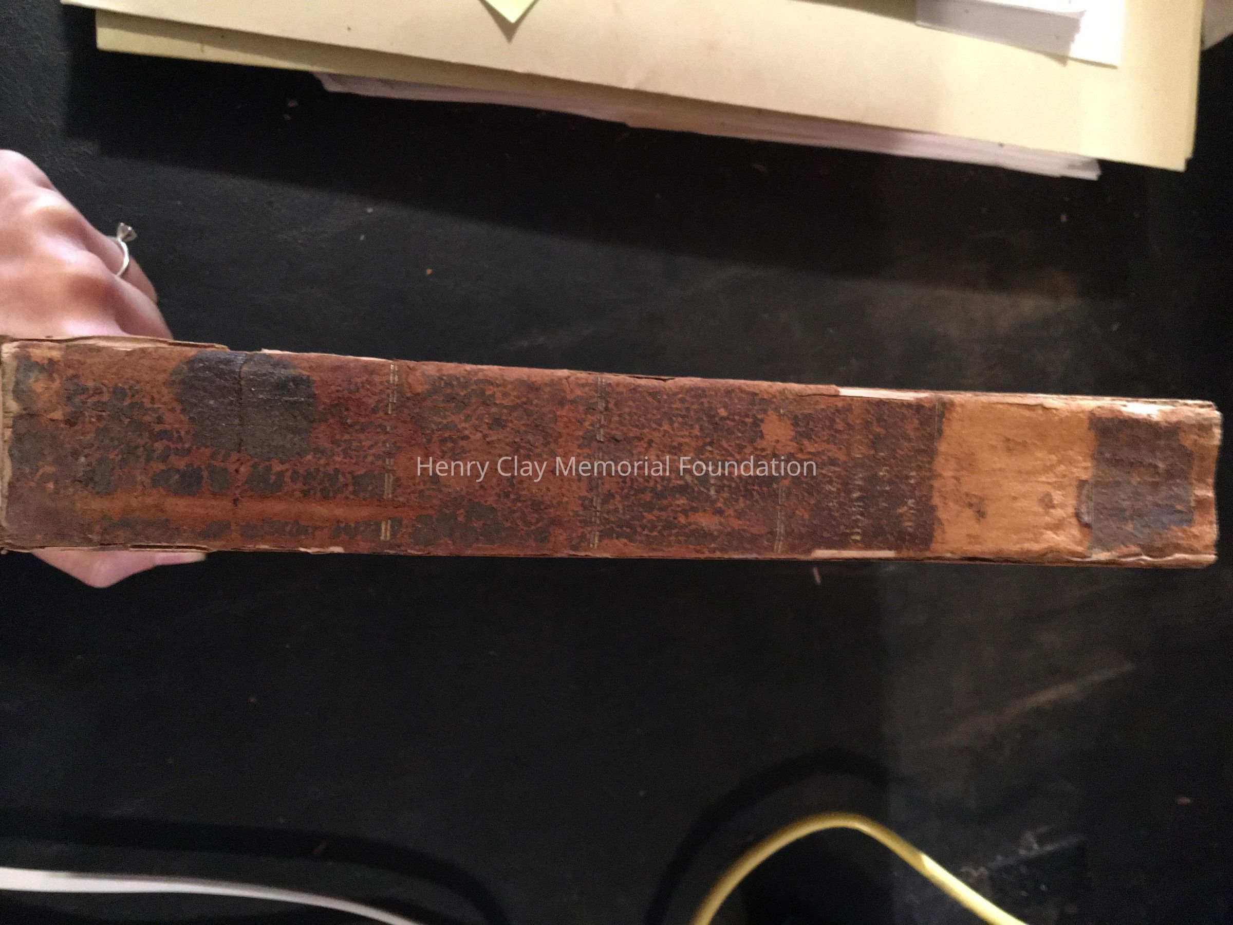 Collection of newspapers. Pg. 61 Sept. 25 1824 H.Clay presidential nomination in Philadelphia, adress is included. Pg. 113 Oct. 23 1824 Letter about H.Clay, Pg. 353 Feb. 5. 1825 Henry Clay card, Pg. 385-386 Feb.19 1825 H. Clay dress to press. Leather bounded. Spine is cracking.