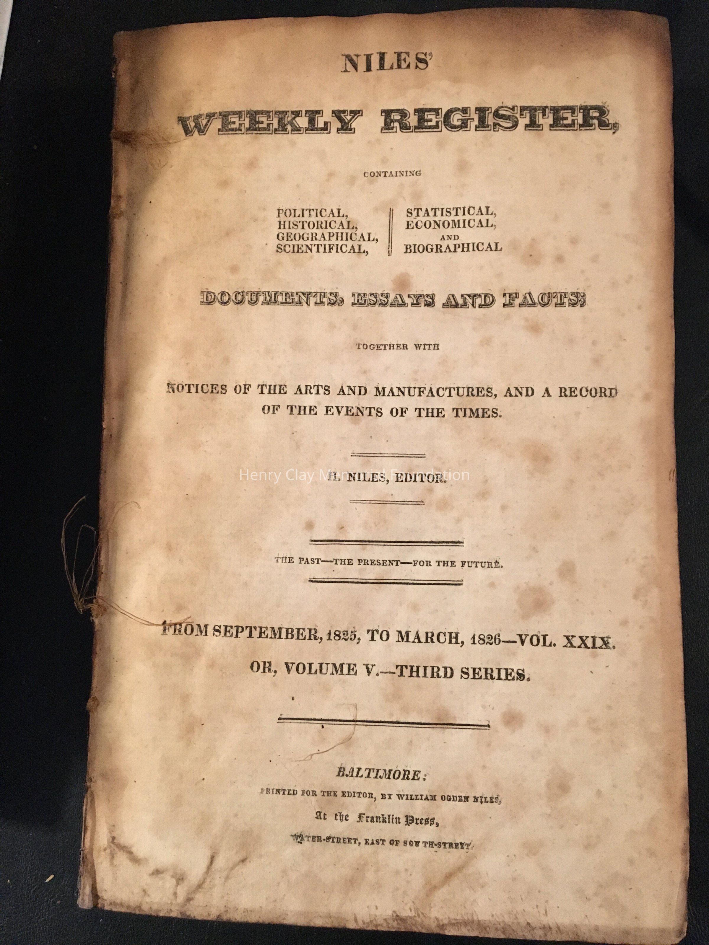 Weekly Register Sept. 1825-March 1826
