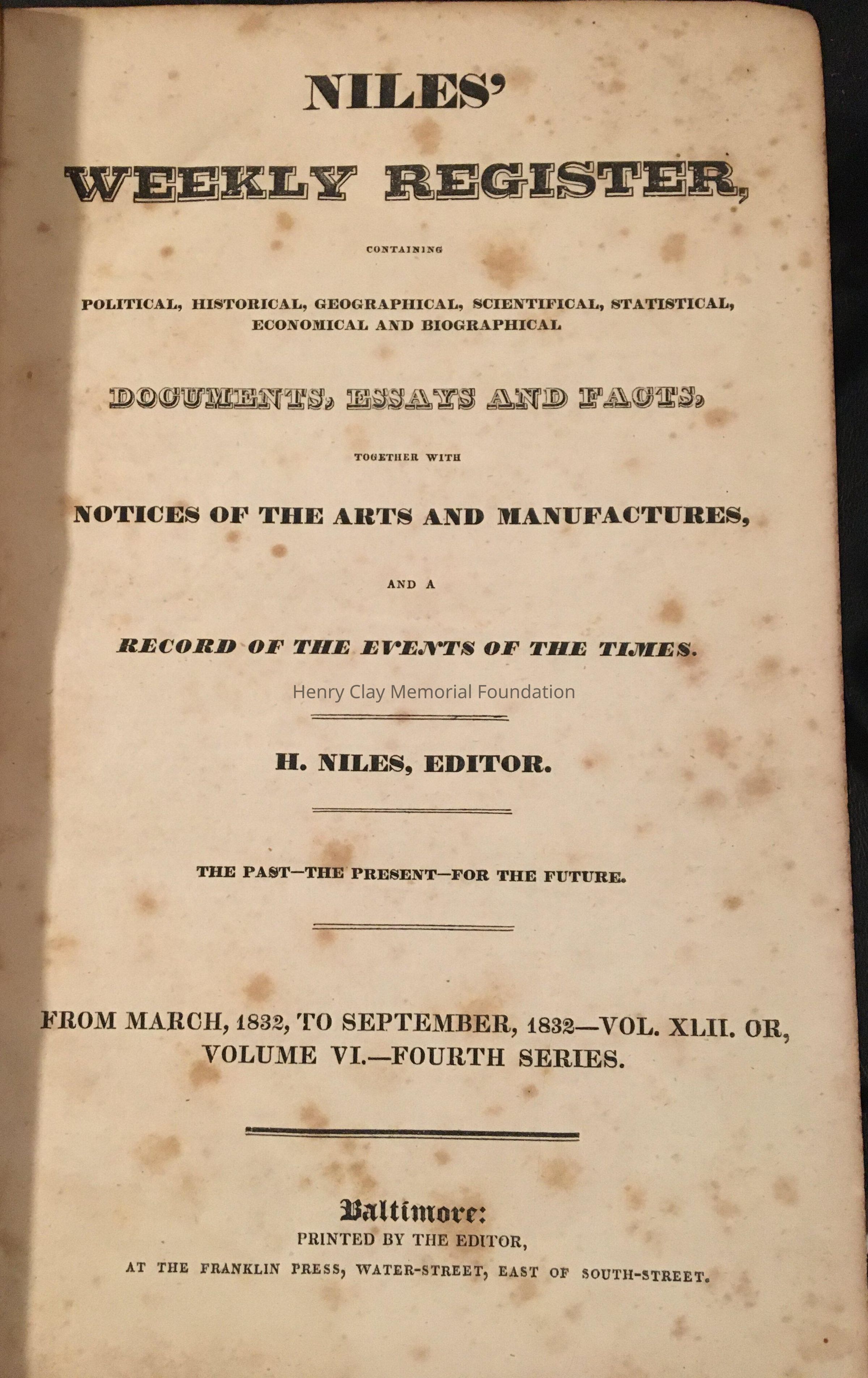page 2-6 march 1832 Speech of H.Clay defending the american system; given on february 2,3,6 1832 in Senate