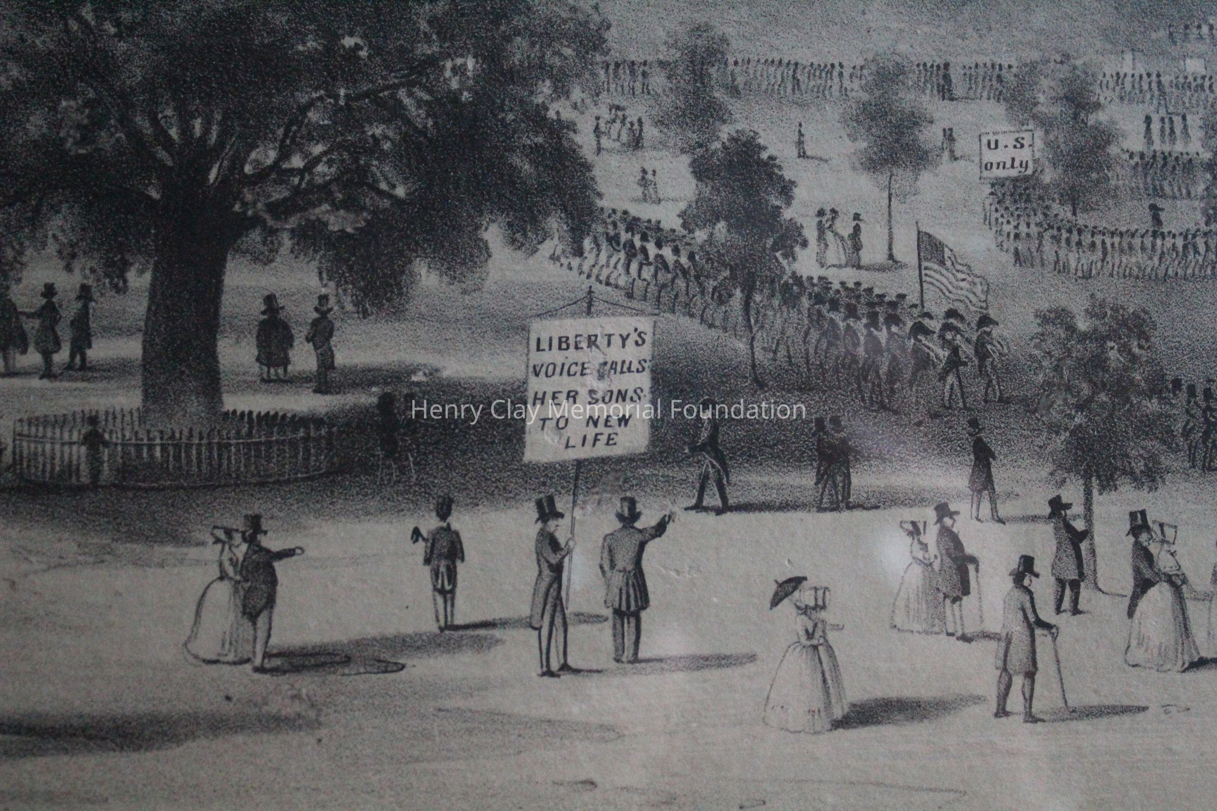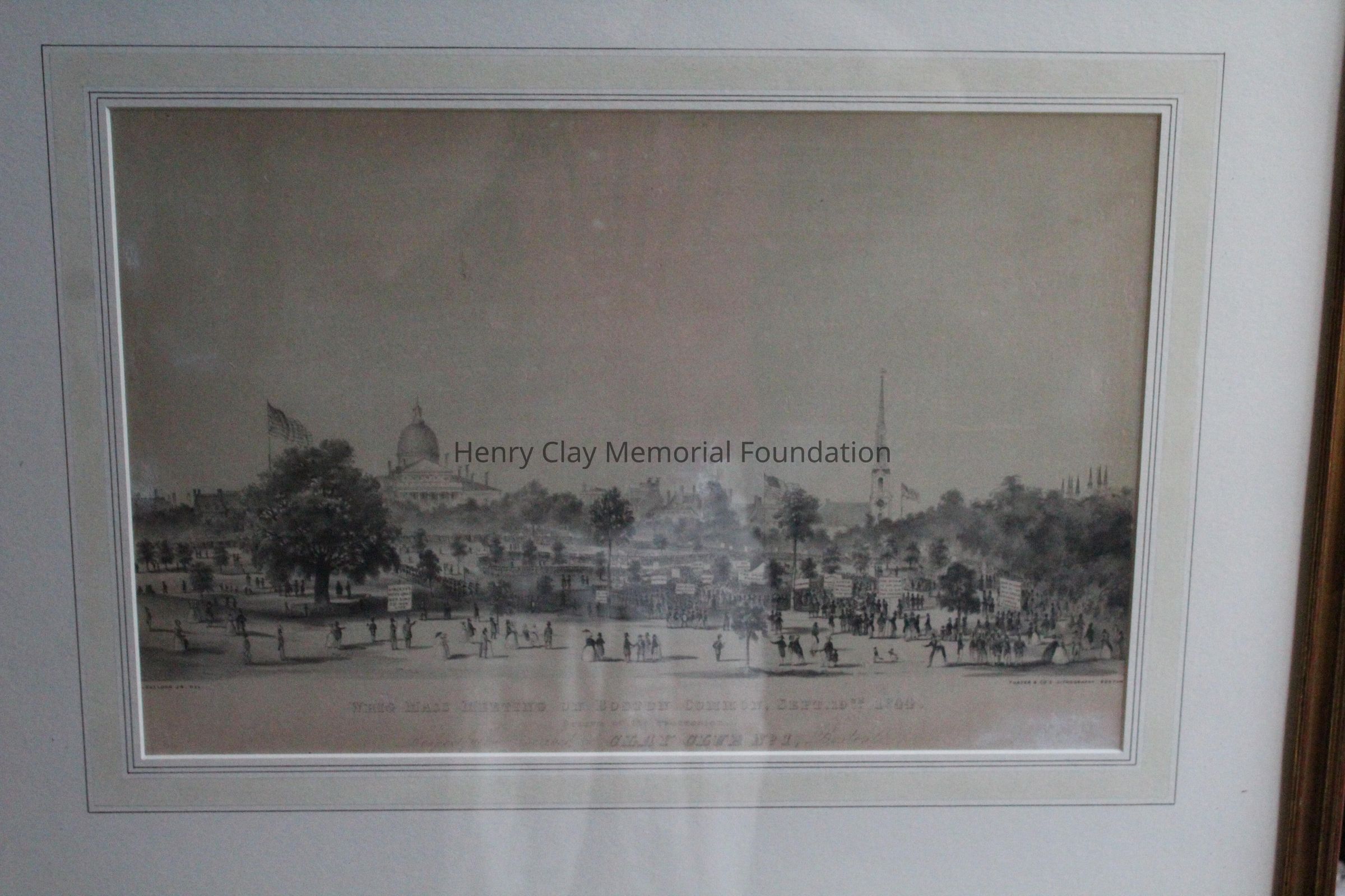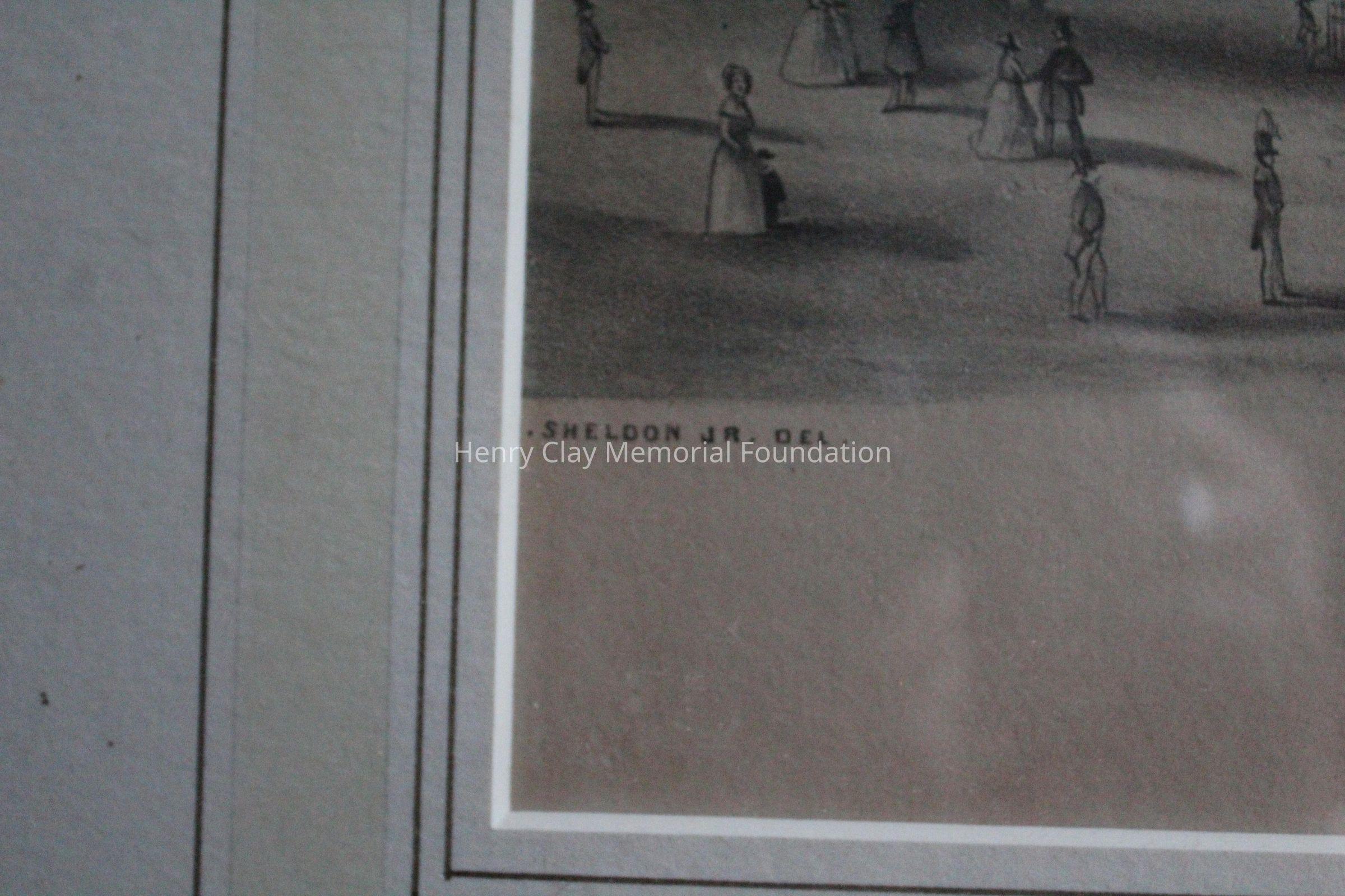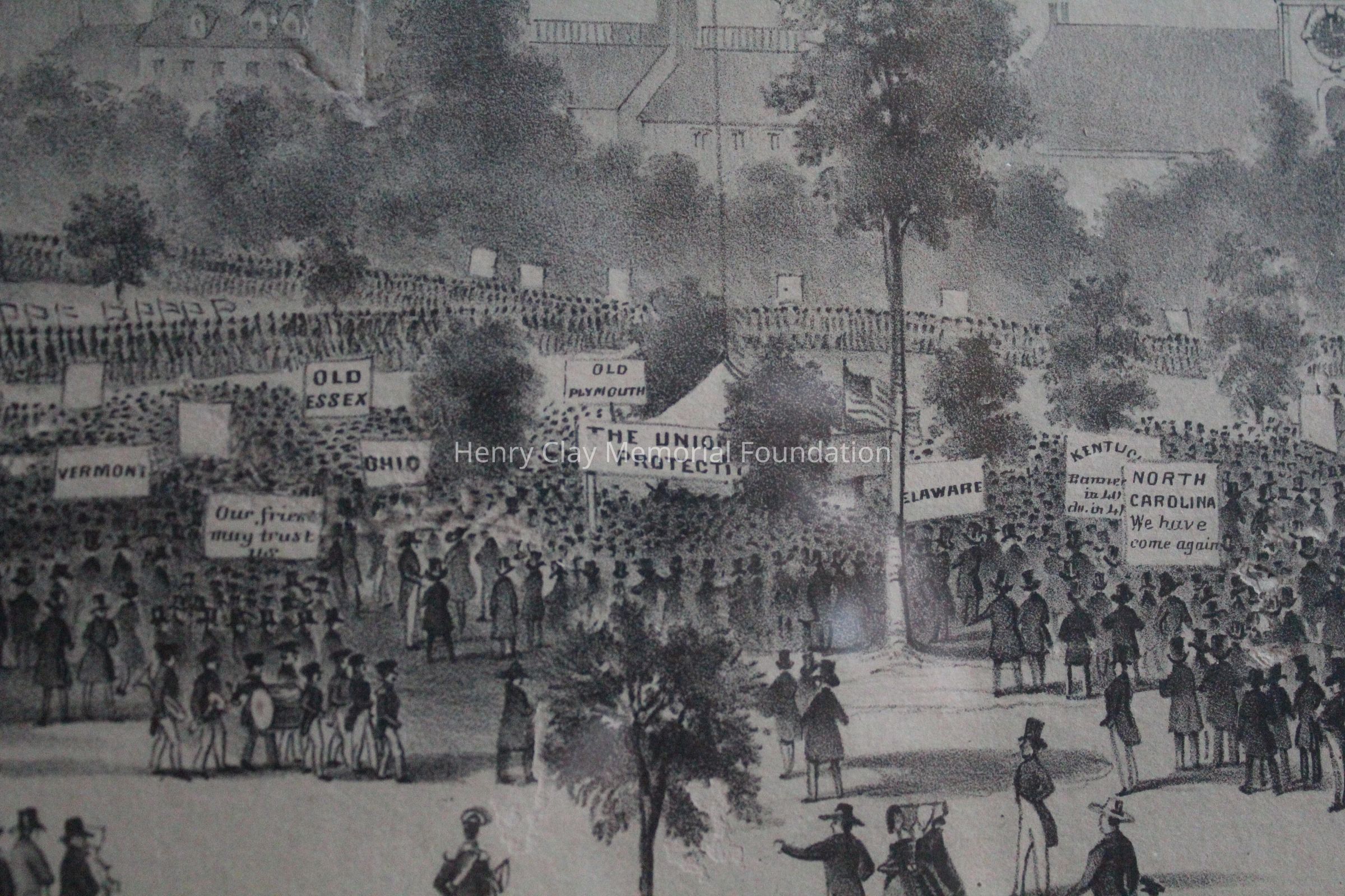 This image depicts a rally organized by the Whig Party leaders to promote Henry Clay and Theodore Frelinghuysen as President and Vice President. The Massachusetts State House and the Old North Church are in the background along with thousands of Clay supporters. It was drawn by J. Sheldon and Lithographed on Stone by Thayer & Co.'s Lithography, Boston.Dimensions