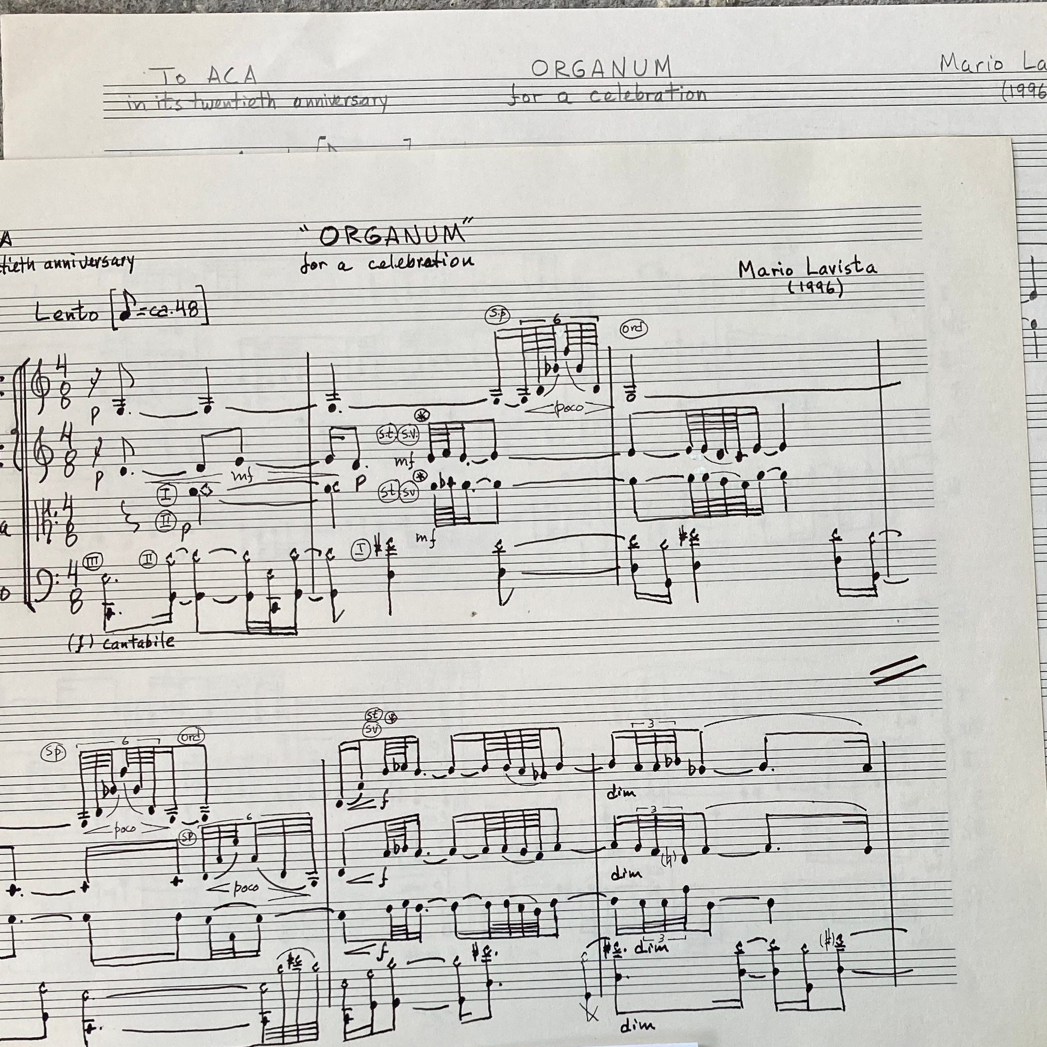 Residency # 64, Created 1996, 3/3-3/23, 1996, composer Organum for Celebration String Quartet Music Score Score Paper (2 sets, one in pencil, one in ink)Subject Person