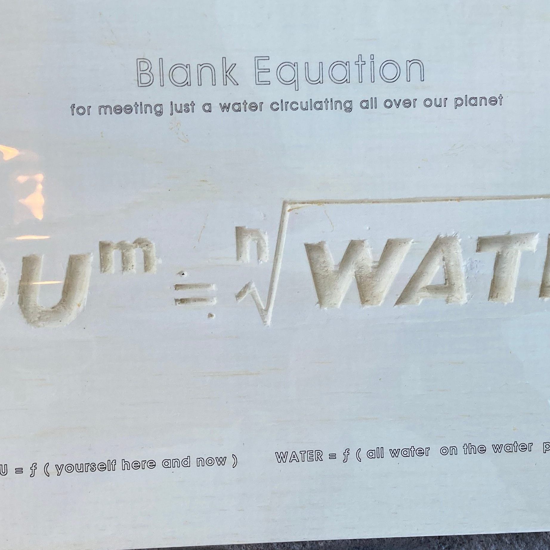 Residency#42, create d1997, 3/10-3/30, 1991, Blank Equation for you Water, Assemblage wood & plasticSubject Person