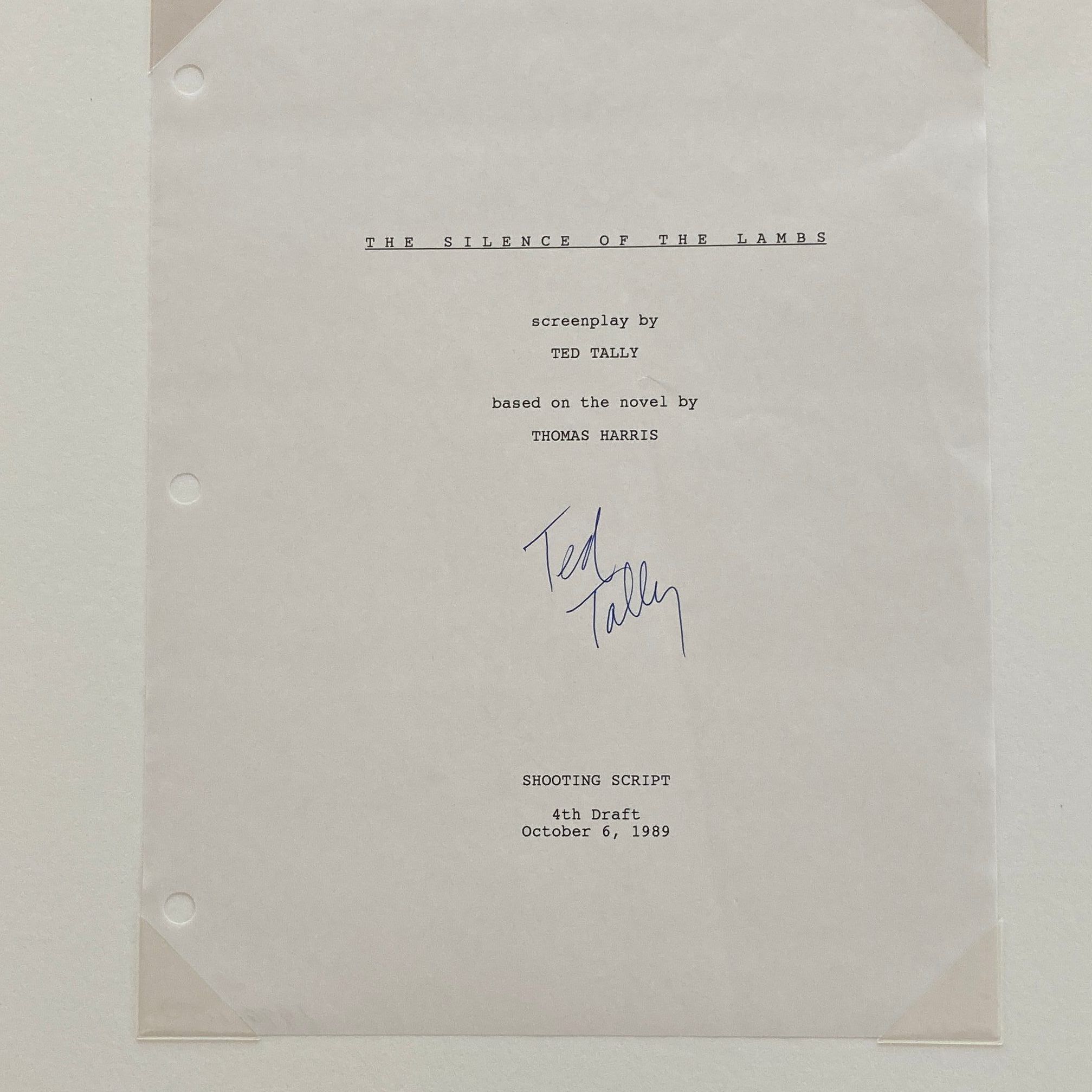 Residency #5, Created 1996, 8/1-8/19, 1983, Playwright The Silence of the Lambs Shooting script Typed Title PageSubject Person