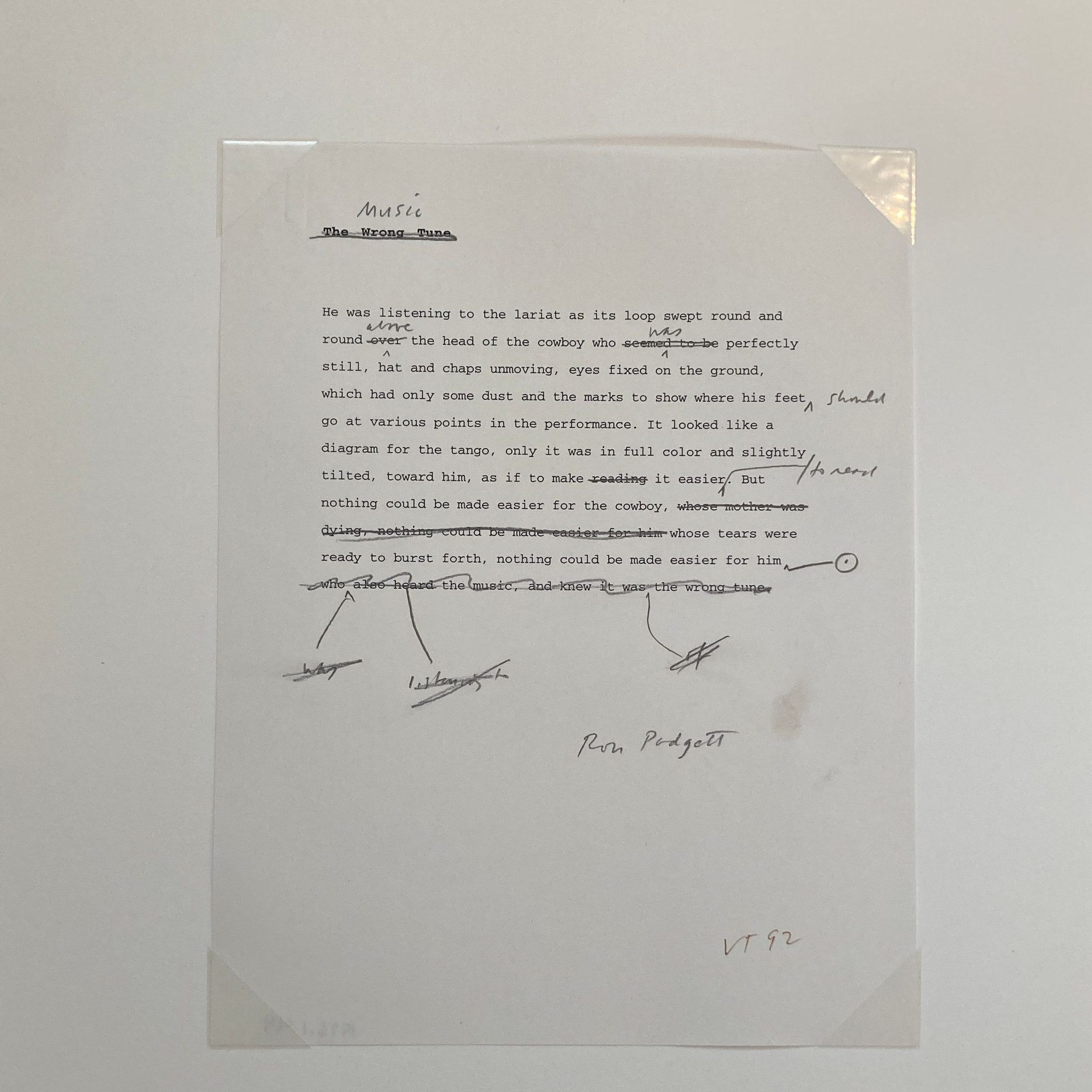 Residency # 36, Created 1996, 3/19-4/6, 1990, Poet Music - A Prose Poem typing paper typed on a typewriterSubject Person