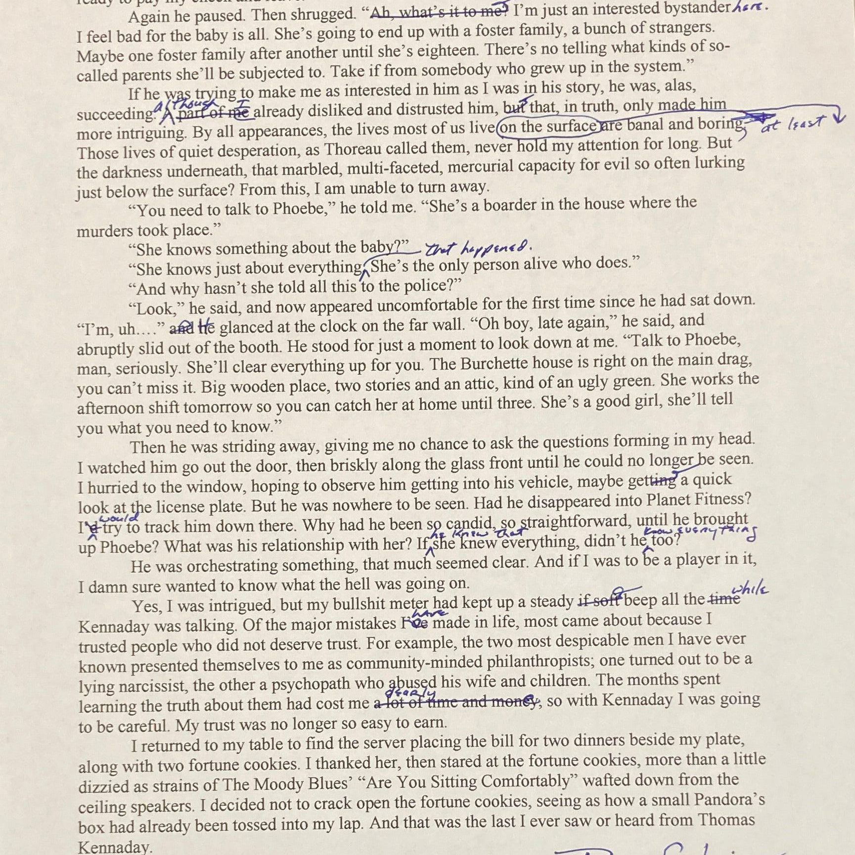 Residency # 180, Created 2021, 2/21-3/13, 2021fiction writer The Deepest Black, p. 11 corrections on a page computer printer paper