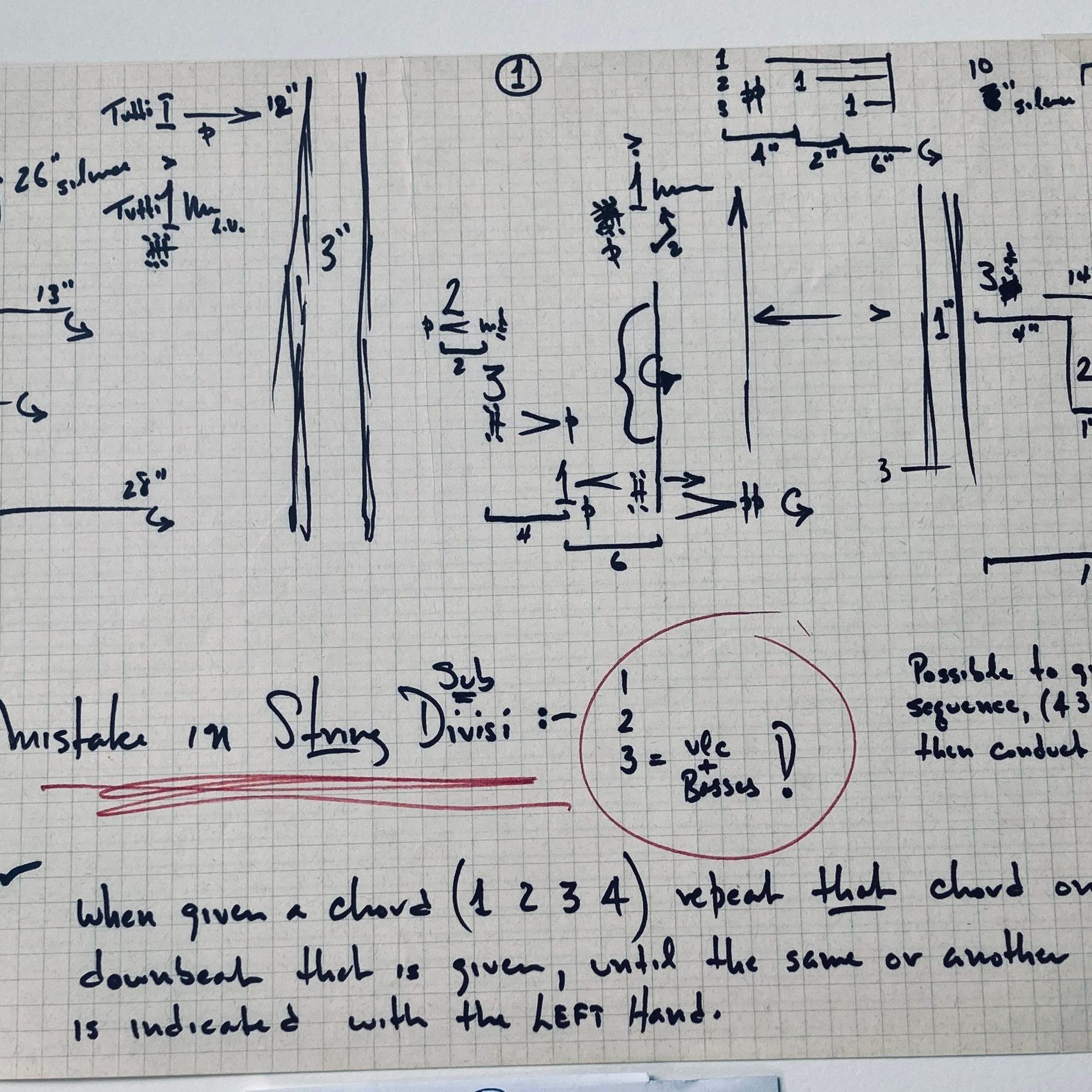 Residency #30, Created 1971-72, Apr 4-Apr 22, 1989, Composer Loops, 1971-1972 composition for chorus and Orchestra commissioned by the Venice Biennale graph paper with black & red felt penSubject Person