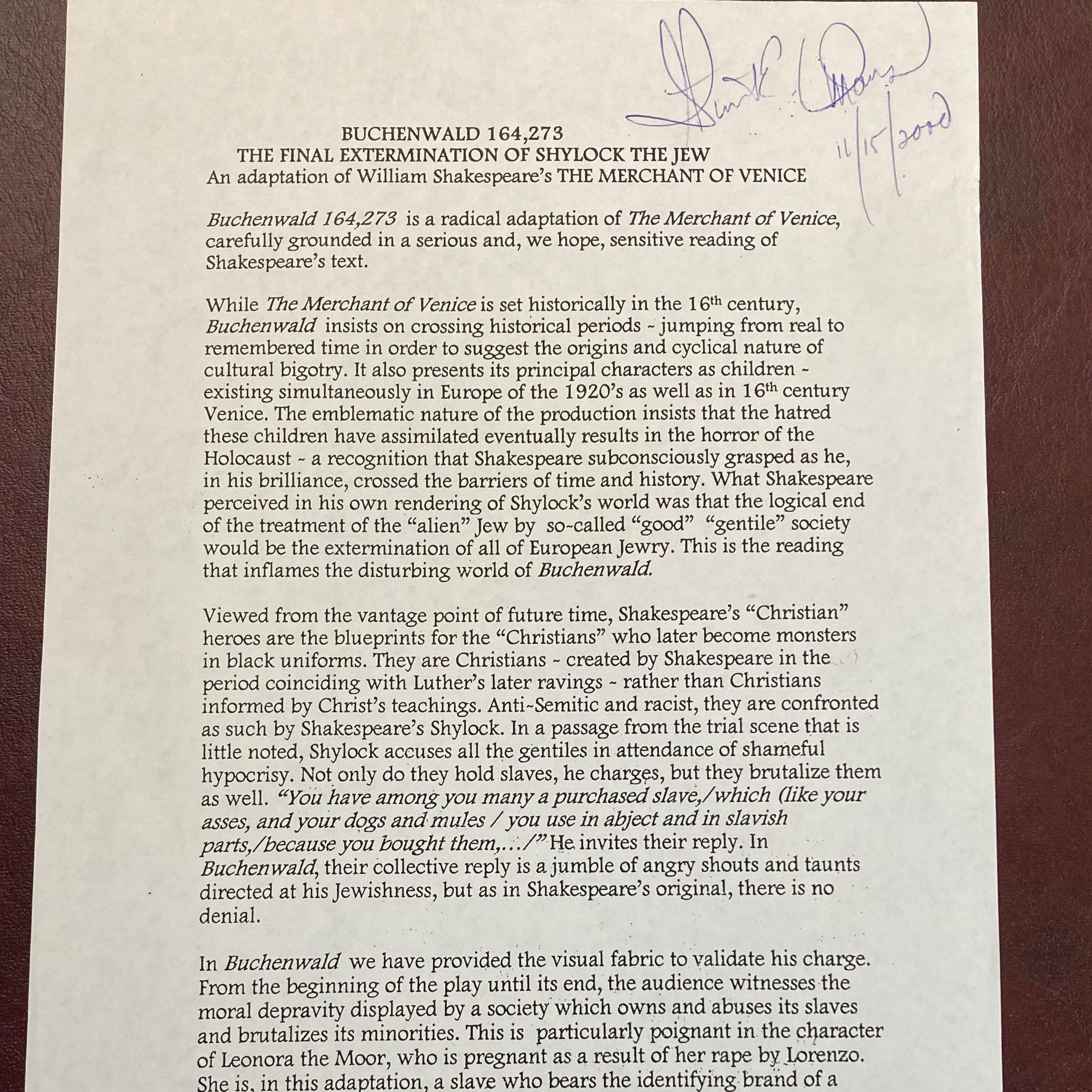 Residency #23, Created 1998, 7/3-8/12, 1987Director Buchenwalk, 164, 273 play paper