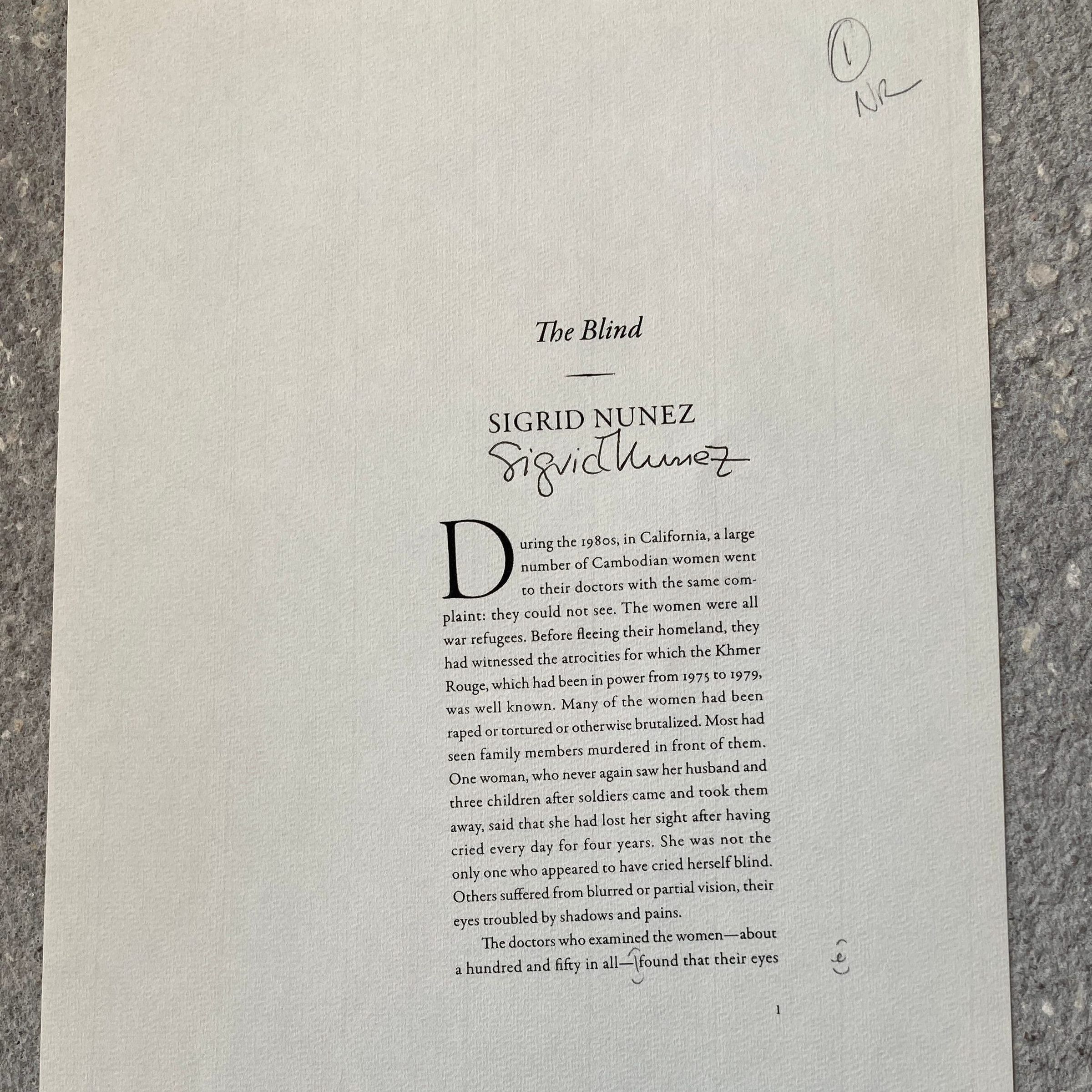 Residency # 165, Created 2017, 5/14-6/5, 2017, fiction writer The Blind Excerpt published in Paris Review 2018 printed pagesSubject Person