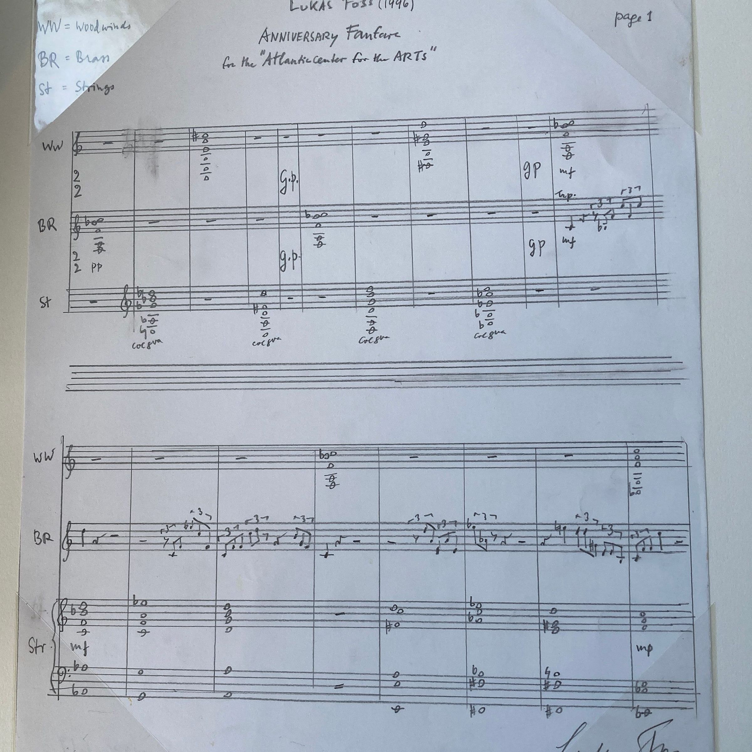 Residency# 40, Created 1996,6/2-6/22, 1991, Composer, conductor Fanfare for the ACA page from a music score music paper & pencilSubject Person