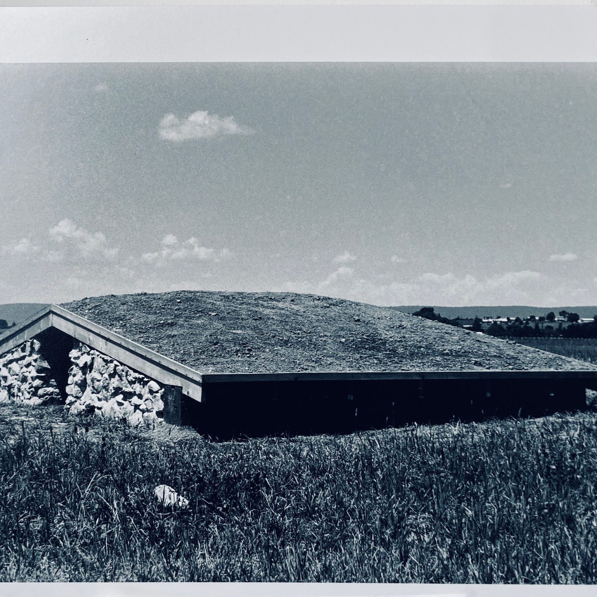Photo on Paper, Residency 32, Jun 4-June 24, 1989, Created 1990, Sculptor Low Building with Dirt Roof, B/W Photograph paperSubject Person or Organization
