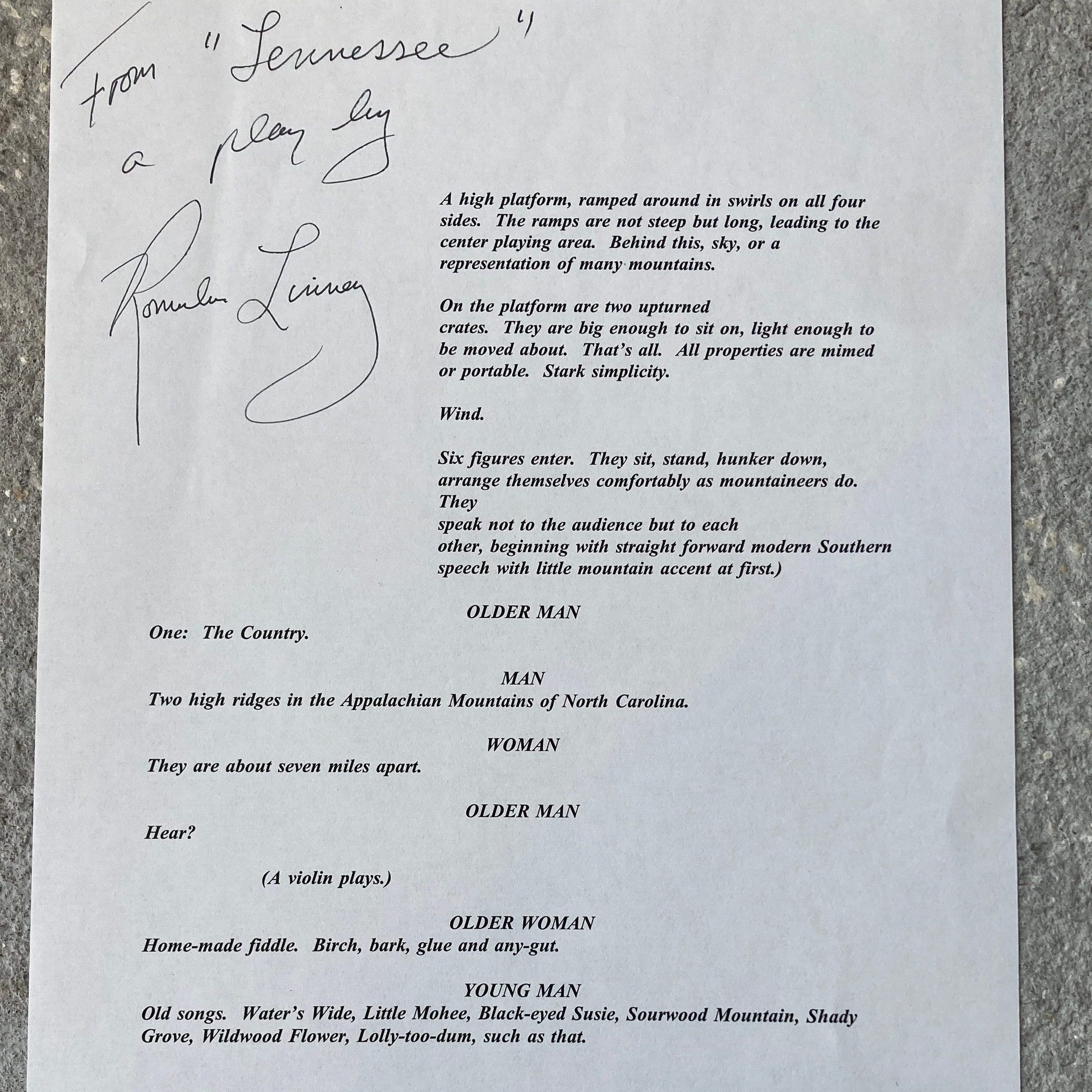 Residency # 51, Created 1996, 8/5-8/23, 1985 Playwright Tennessee 1 page manuscript & typeSubject Person