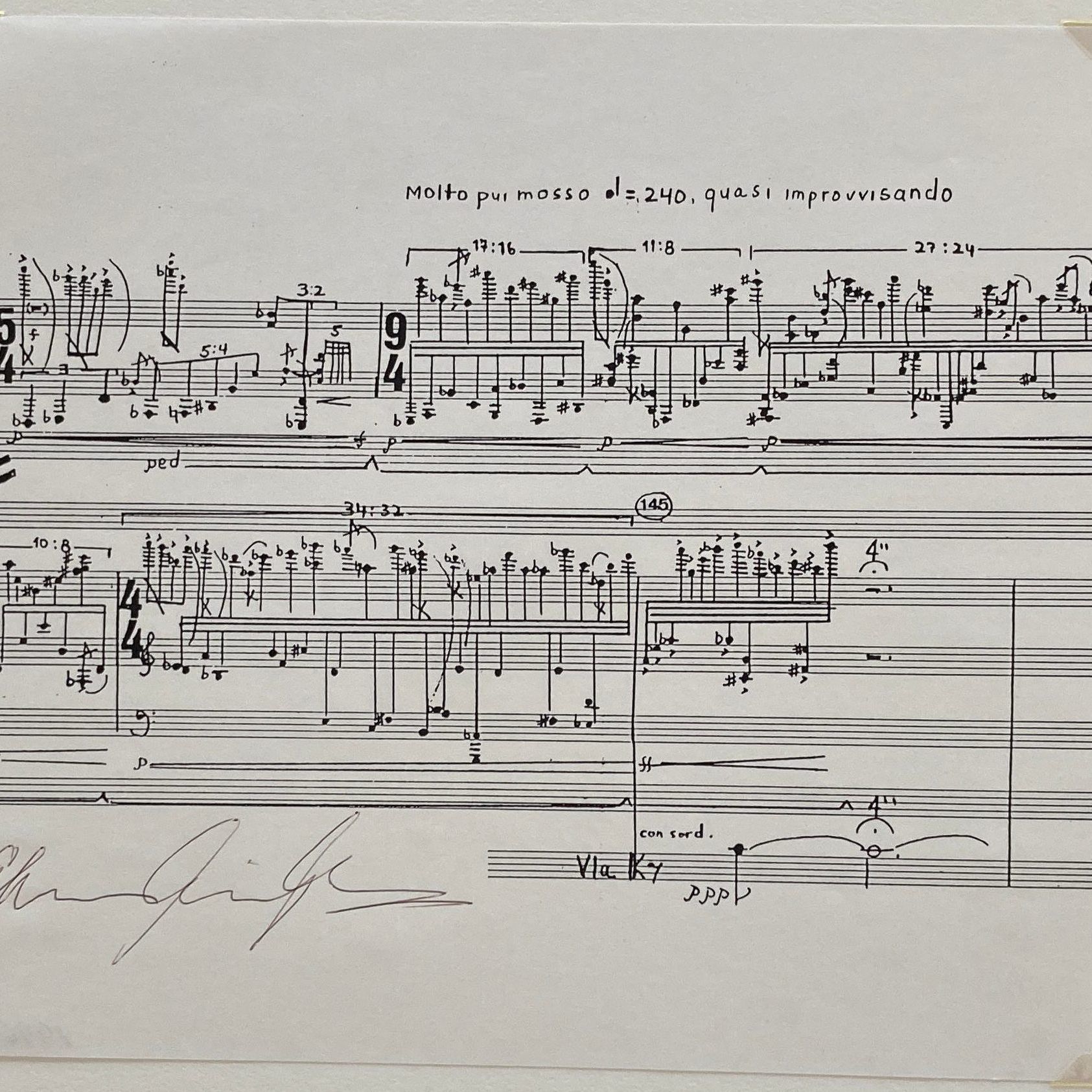 Residency #47, Created 1996, 3/15-4/4, 1992, Composer Such A Nice Lady Excerpt piano cadenza for clarinet, viola, cello & violin Ink on manuscript paperSubject Place