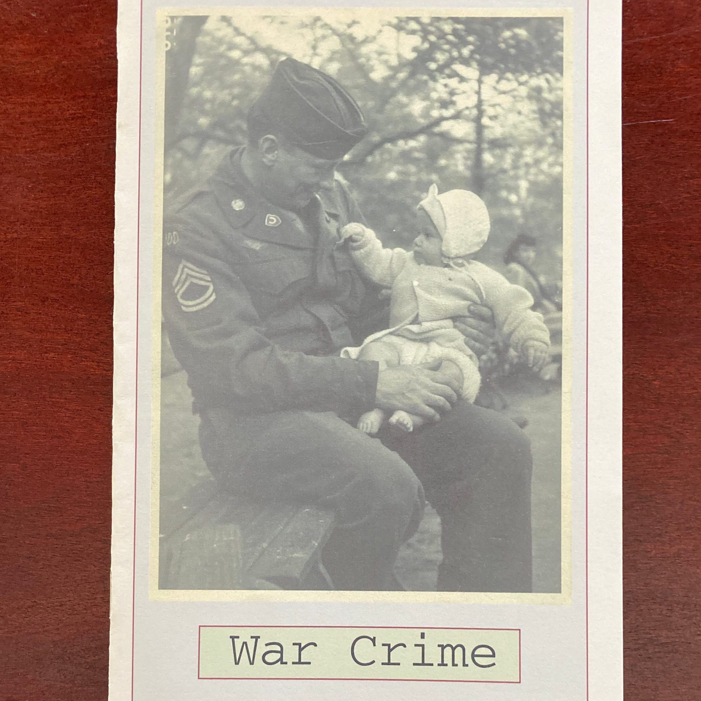 Residency # 97, Created 2002, 5/19-6/8, 2002, Writer War Crime Poems, Proses, & Essays; 3 Boards of Text & images 29-pages of a paper booklet, cardboard, & Foam BoardSubject Person