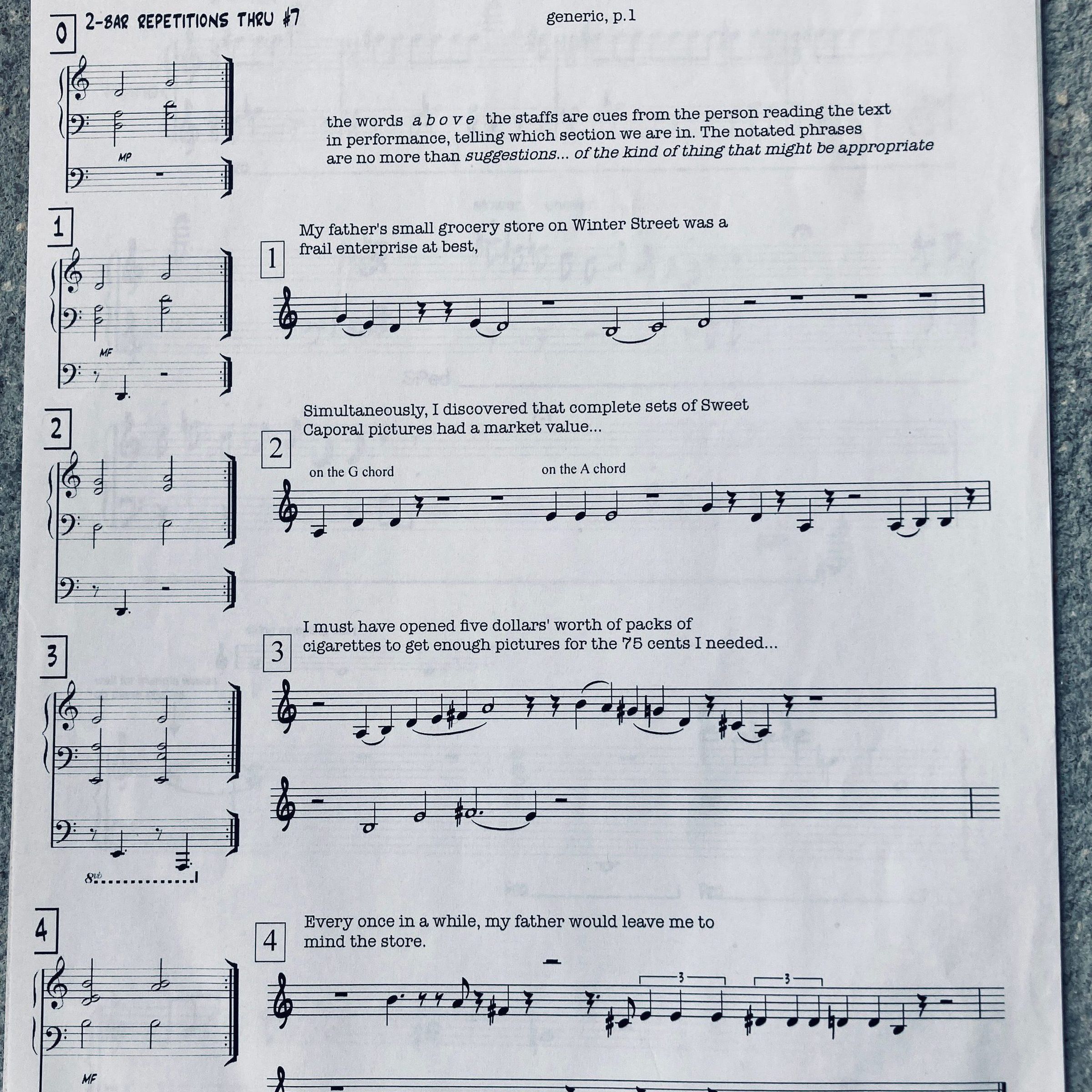 Residency # 139, Created, Feb. 21-Mar 13, 2011, Composer My Father's Grocery Store composition 4 pages on paperSubject Person
