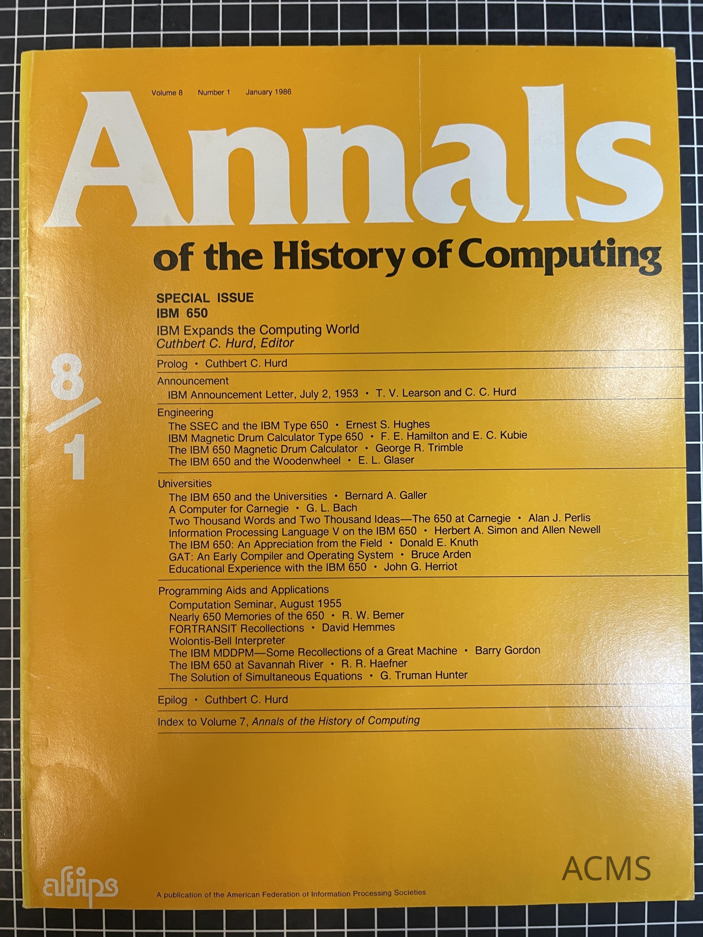 Annals of the History of Computing Volume 8 Number 1 January 1986