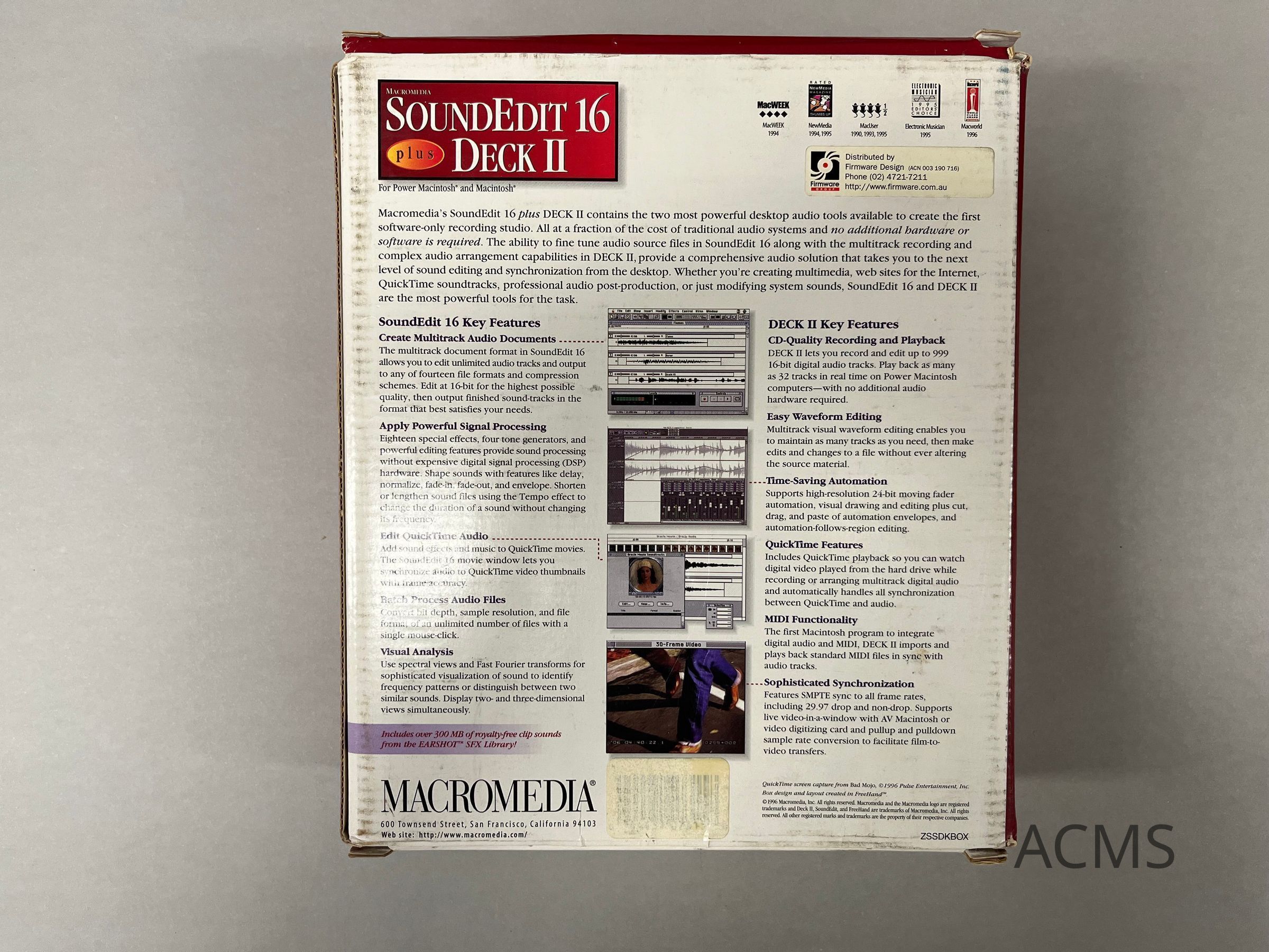 - File Format Support: SoundEdit 16, AIFF/AIFC, Windows WAVE (.WAV), Sound Designer II, QuickTime, SoundEdit, System 7 Sound (SND), Sun AU, Resource, Instrument.