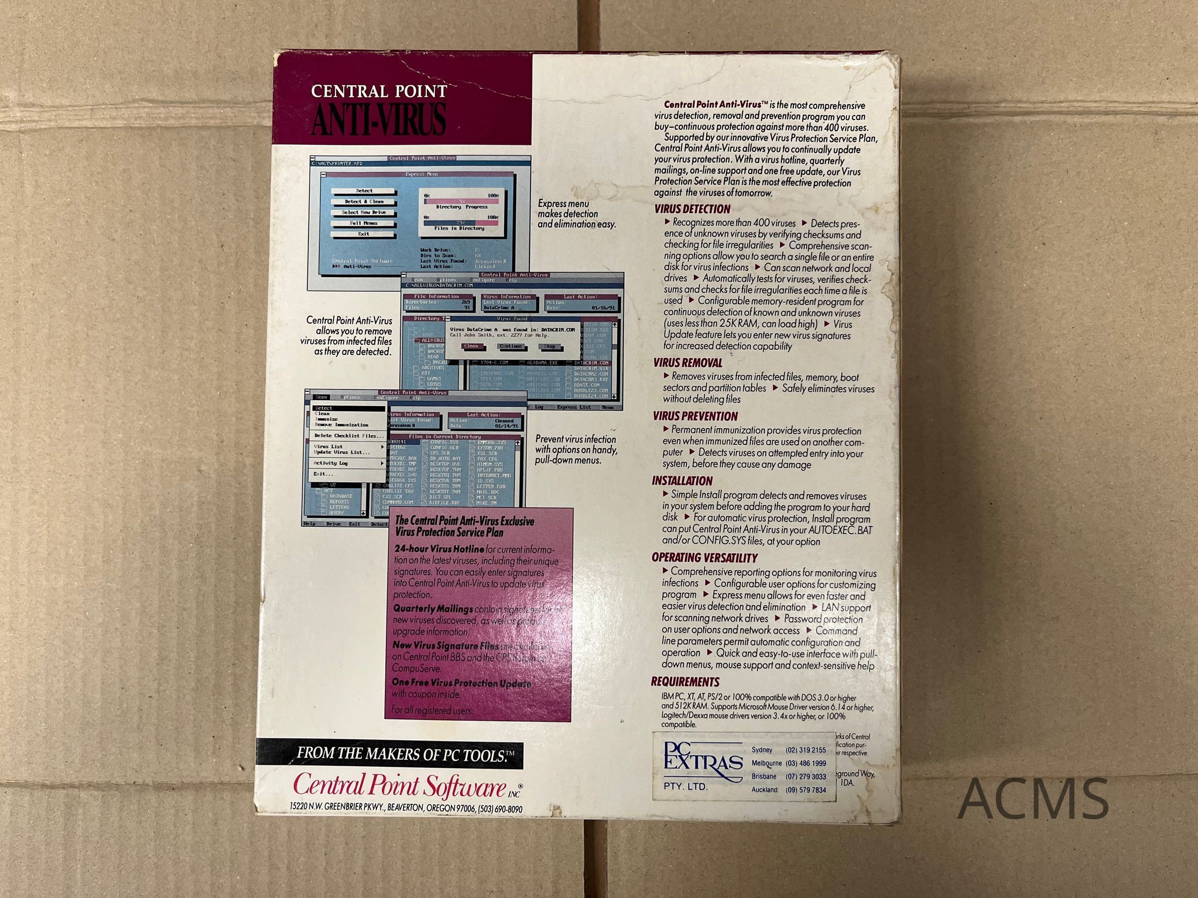 - DOS version 3.0 or higher. (We recommend that you use DOS 3.2 or higher.) Once Central Point Anti-Virus is running, it can work with disks formatted by any version of DOS.