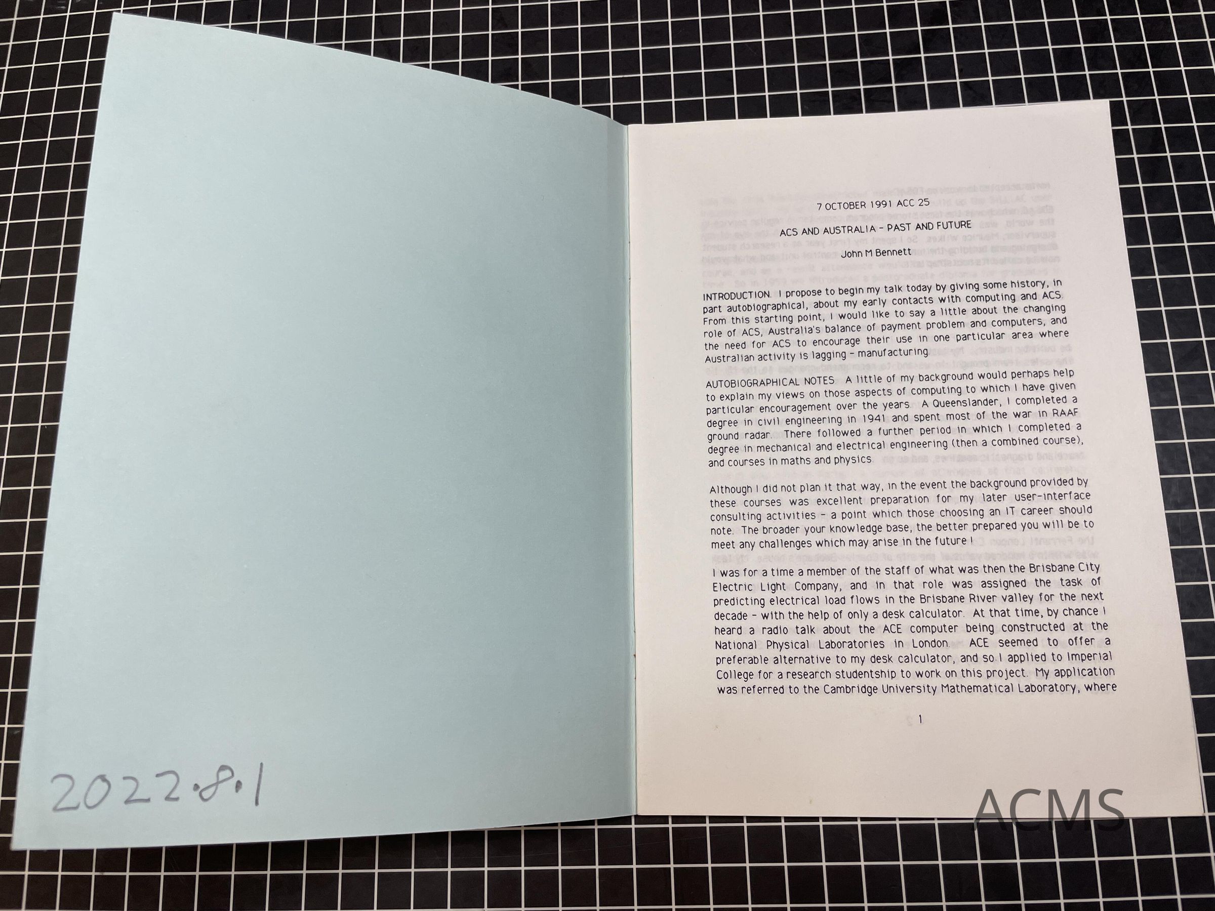 ACS and Australia - Past and Future by John BennettEntry/Object ID