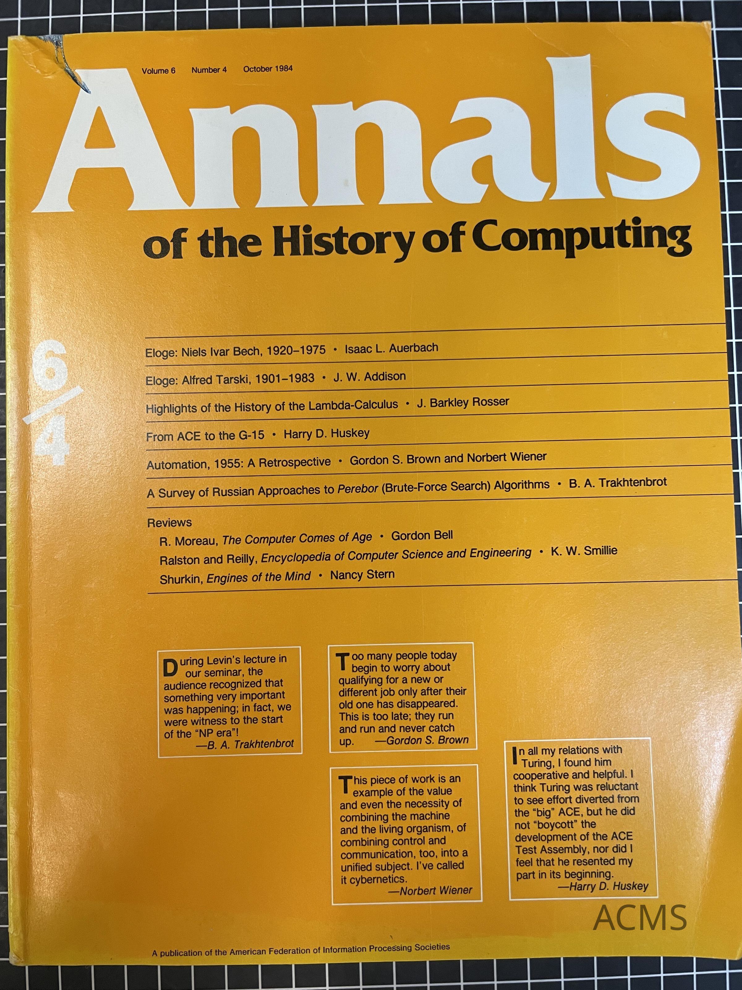 Annals of the History of Computing Volume 6 Number 4 October 1984