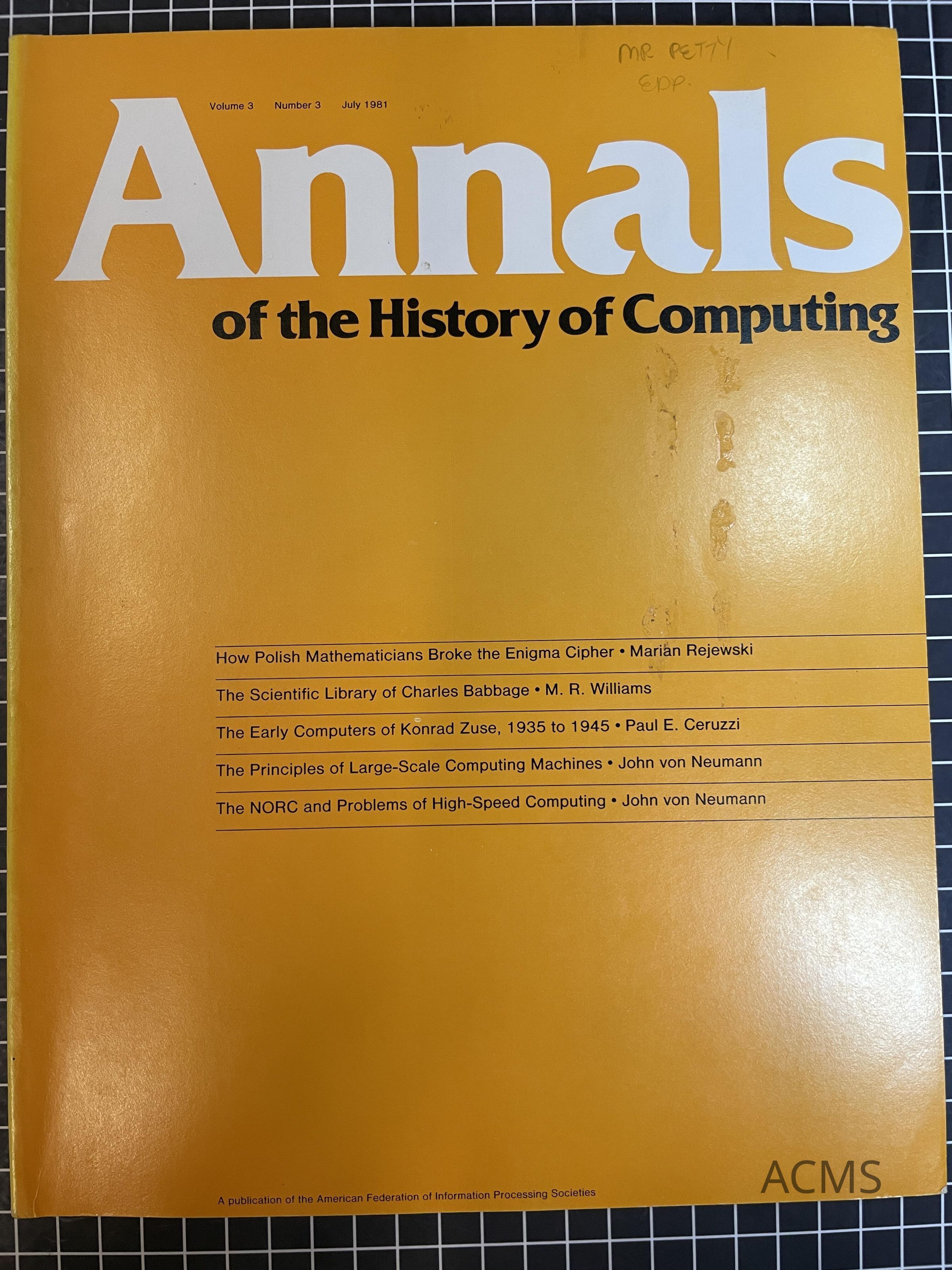 Annals of the History of Computing Volume 3 Number 3 July 1981
