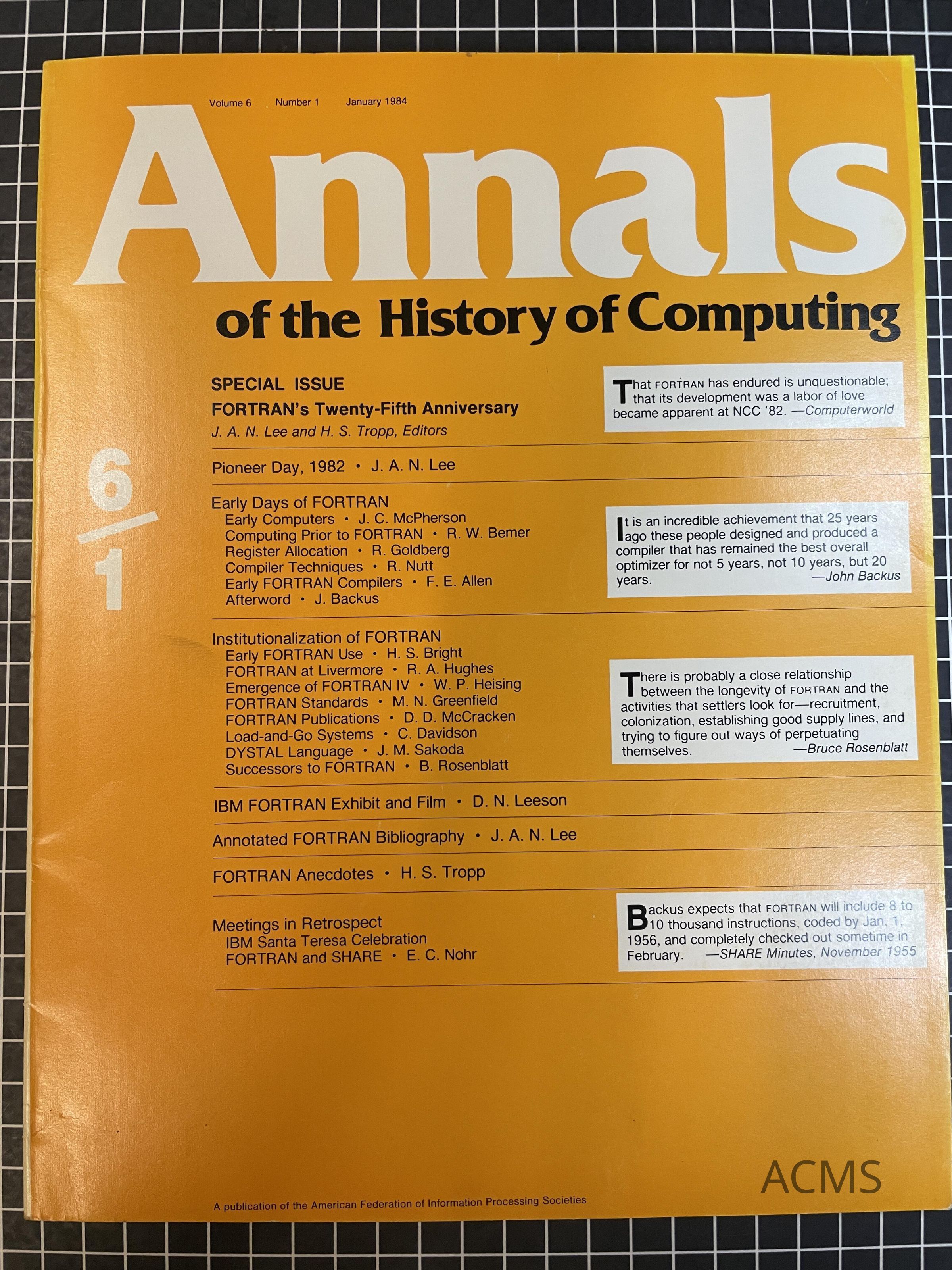 Annals of the History of Computing Volume 8 Number 1 January 1986