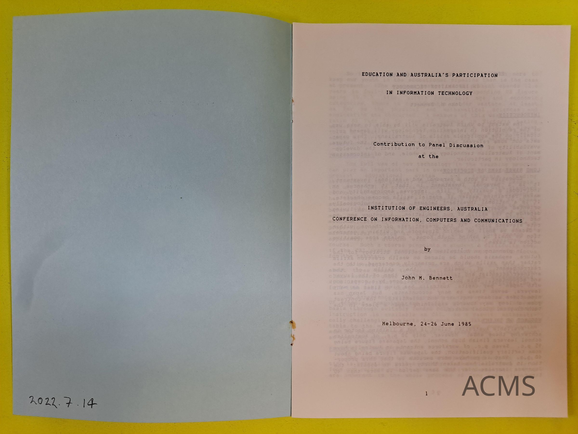 'EDUCATION AND AUSTRALIA'S PARTICIPATION IN INFORMATION TECHNOLOGY' - John M. Bennett