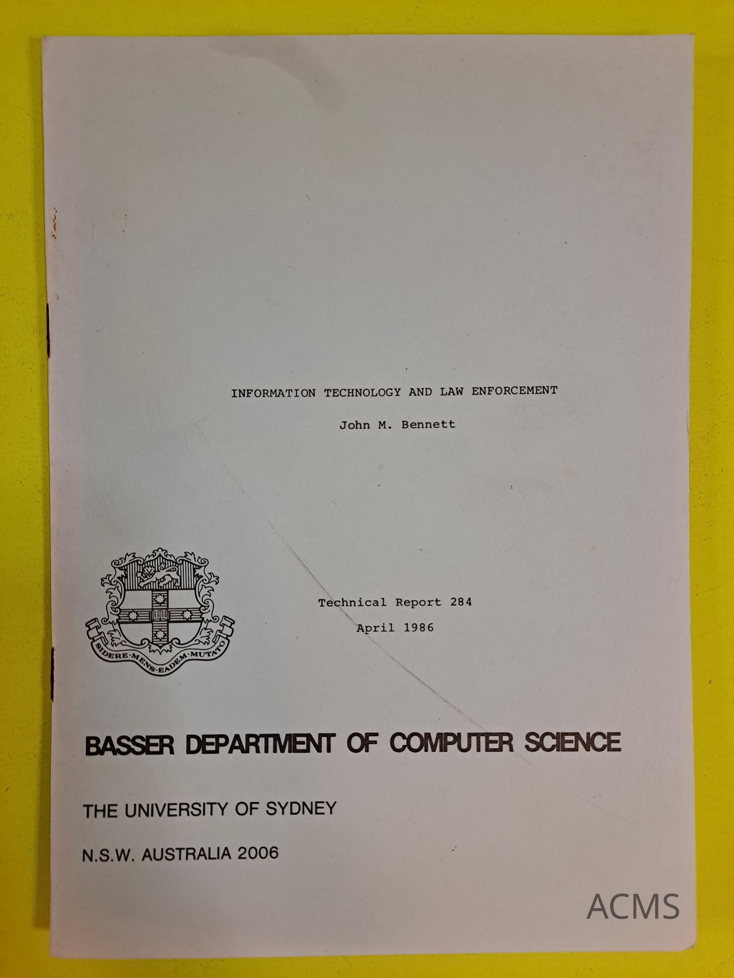 Part of a series of technical reports from the Basser Deptartment of Computer Science - University of SydneyCollection